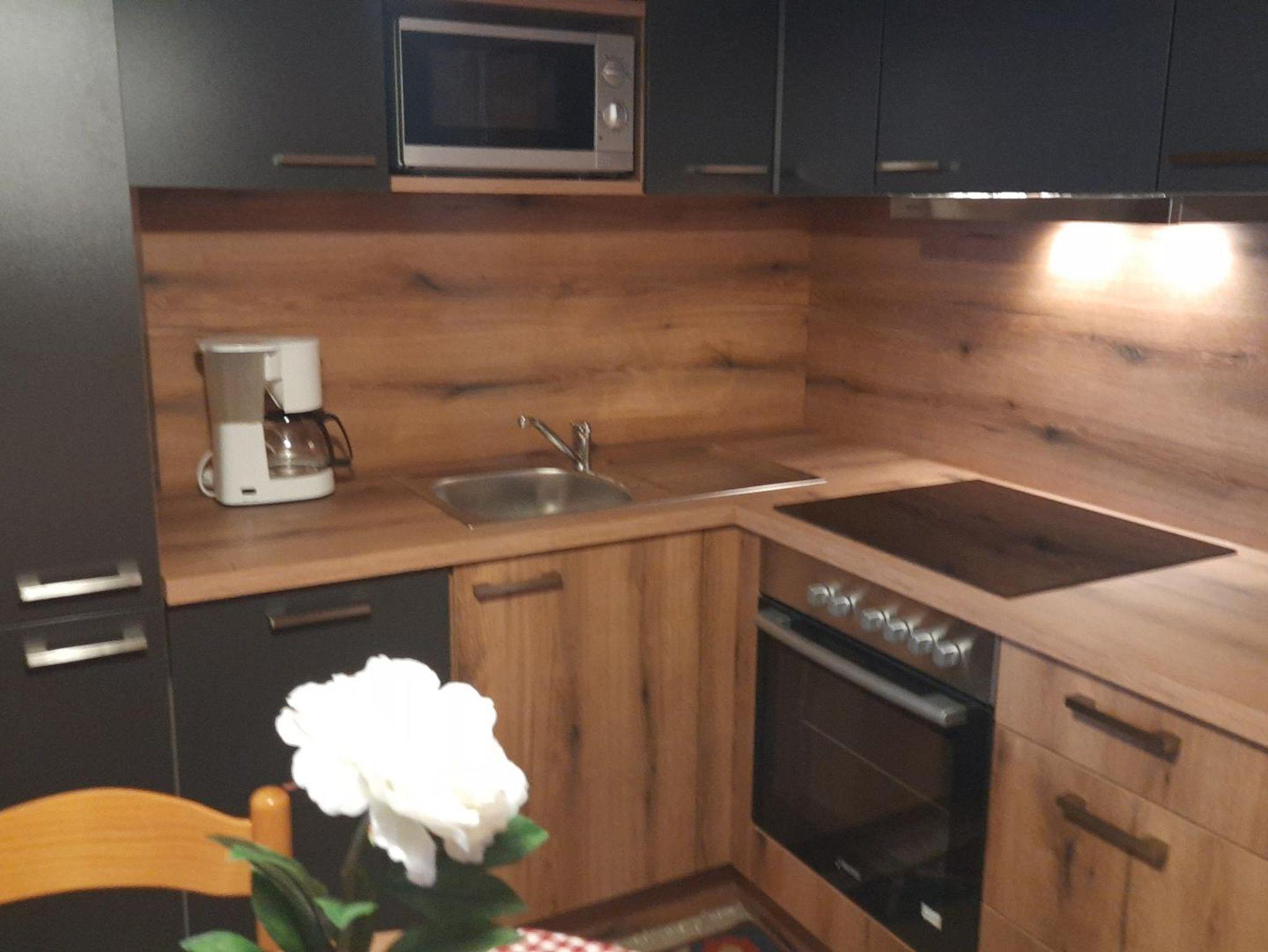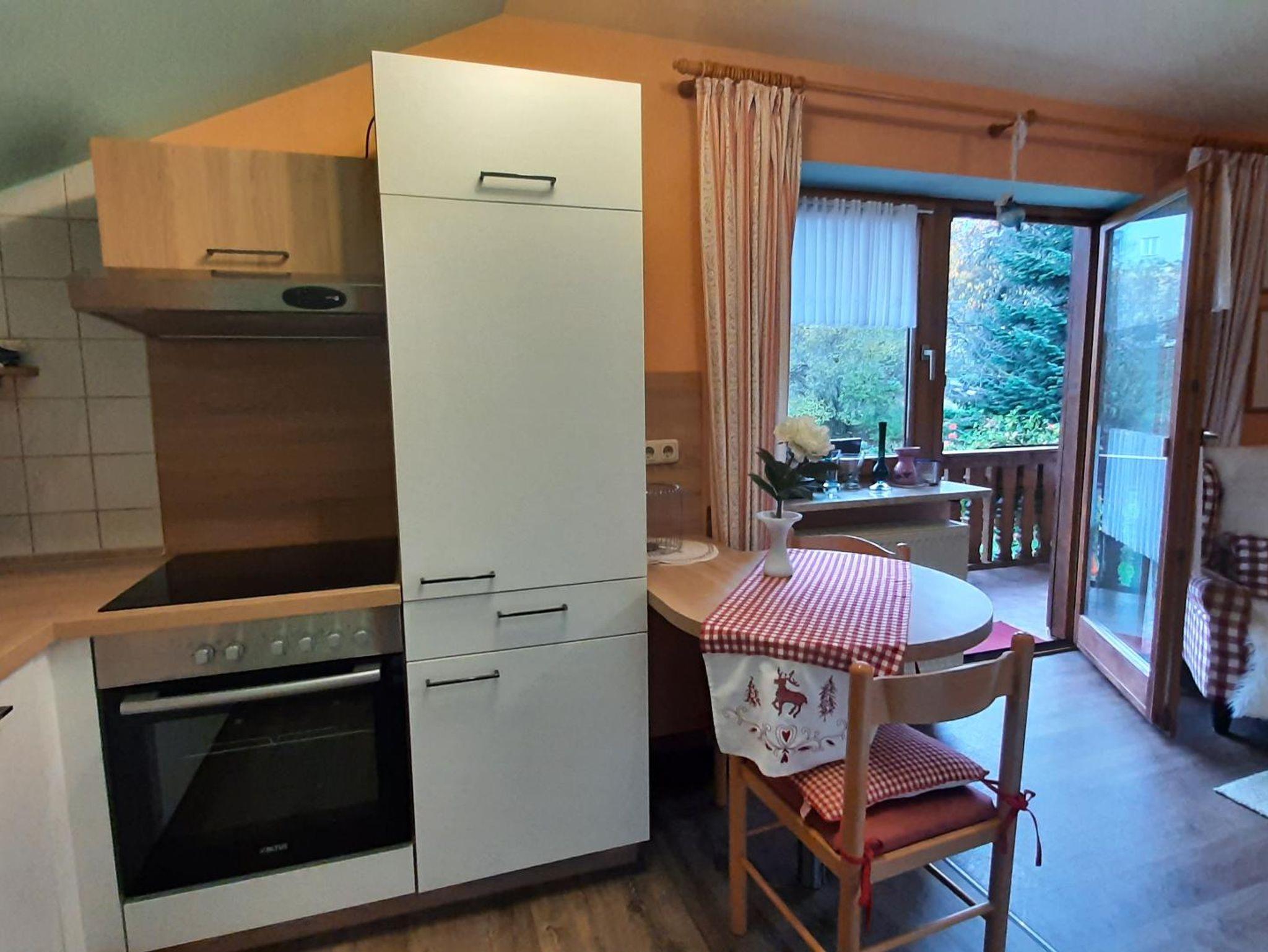 Wohnung für 2 Personen in Bayer. Eisenstein am Fuße des Gr. Arbers. Wohnzimmer mit Küche, 2 separate Schlafräume, Diele, DU/WC, großer Südbalkon, 58 qm, Sat-Flat-TV, Fön . W-Lan vorhanden.