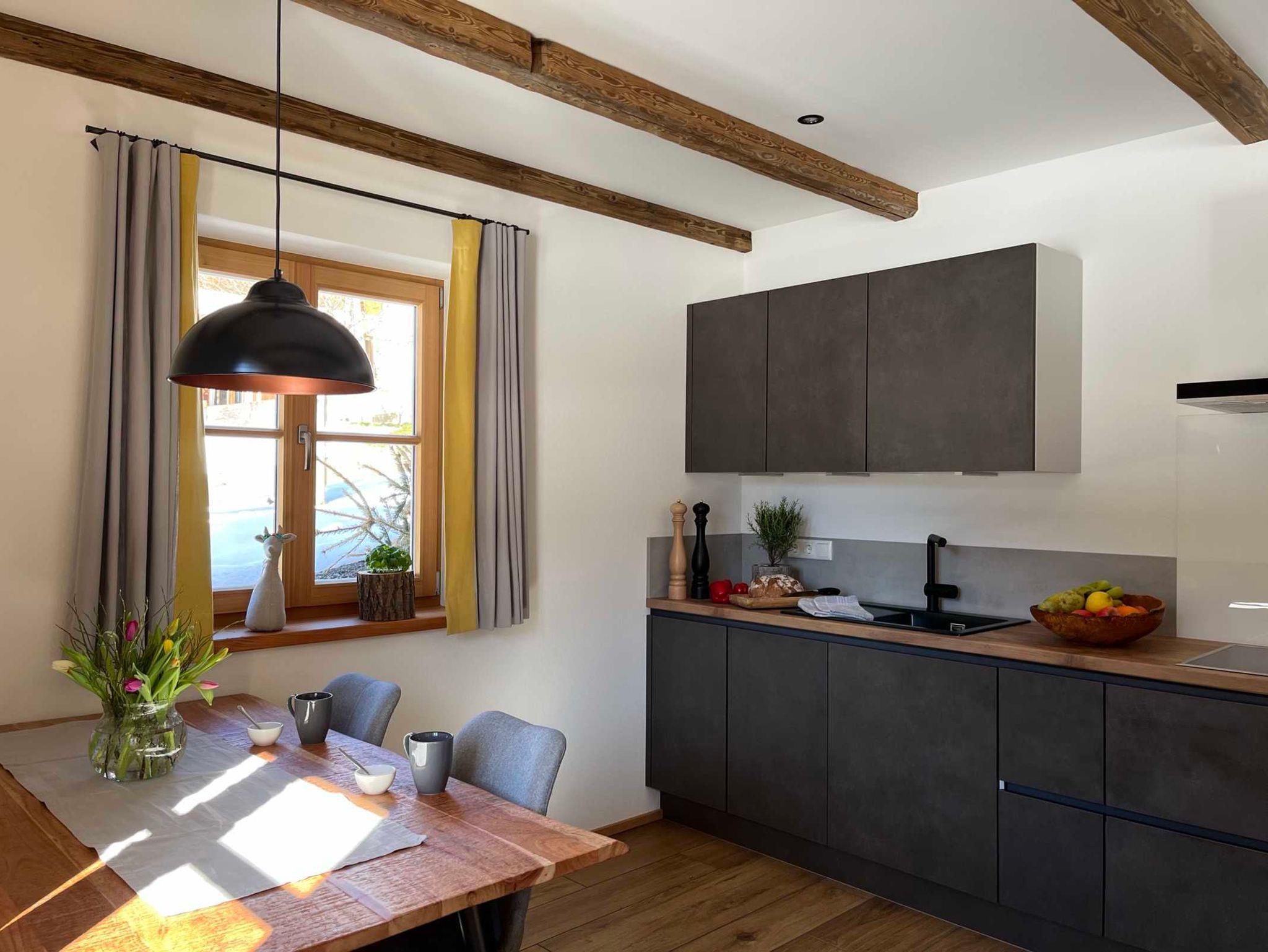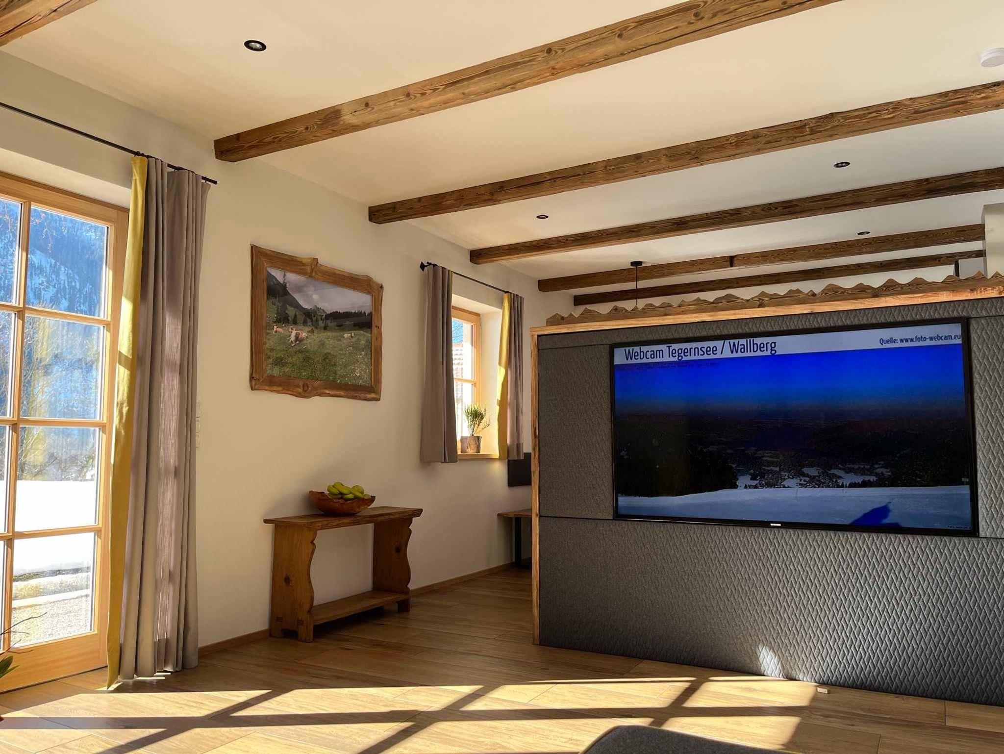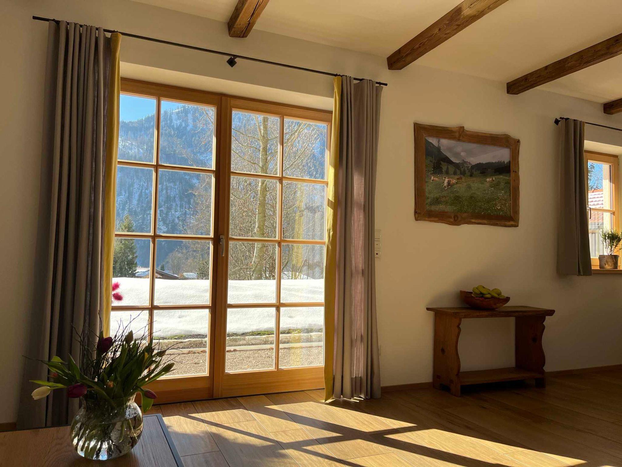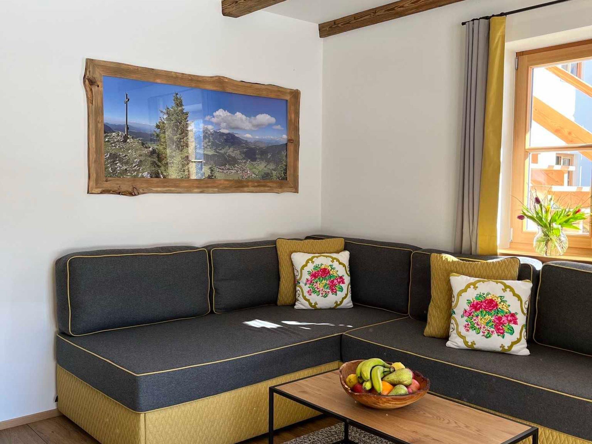 Unsere geräumige Ferienwohnung bietet Platz für 2-4 Personen. In der neugebauten Wohnung haben wir moderne Elemente mit gemütlichem alpenländischem Flair vereint, welches sich besonders im Schlafzimmer mit großem Doppelbett widerspiegelt.