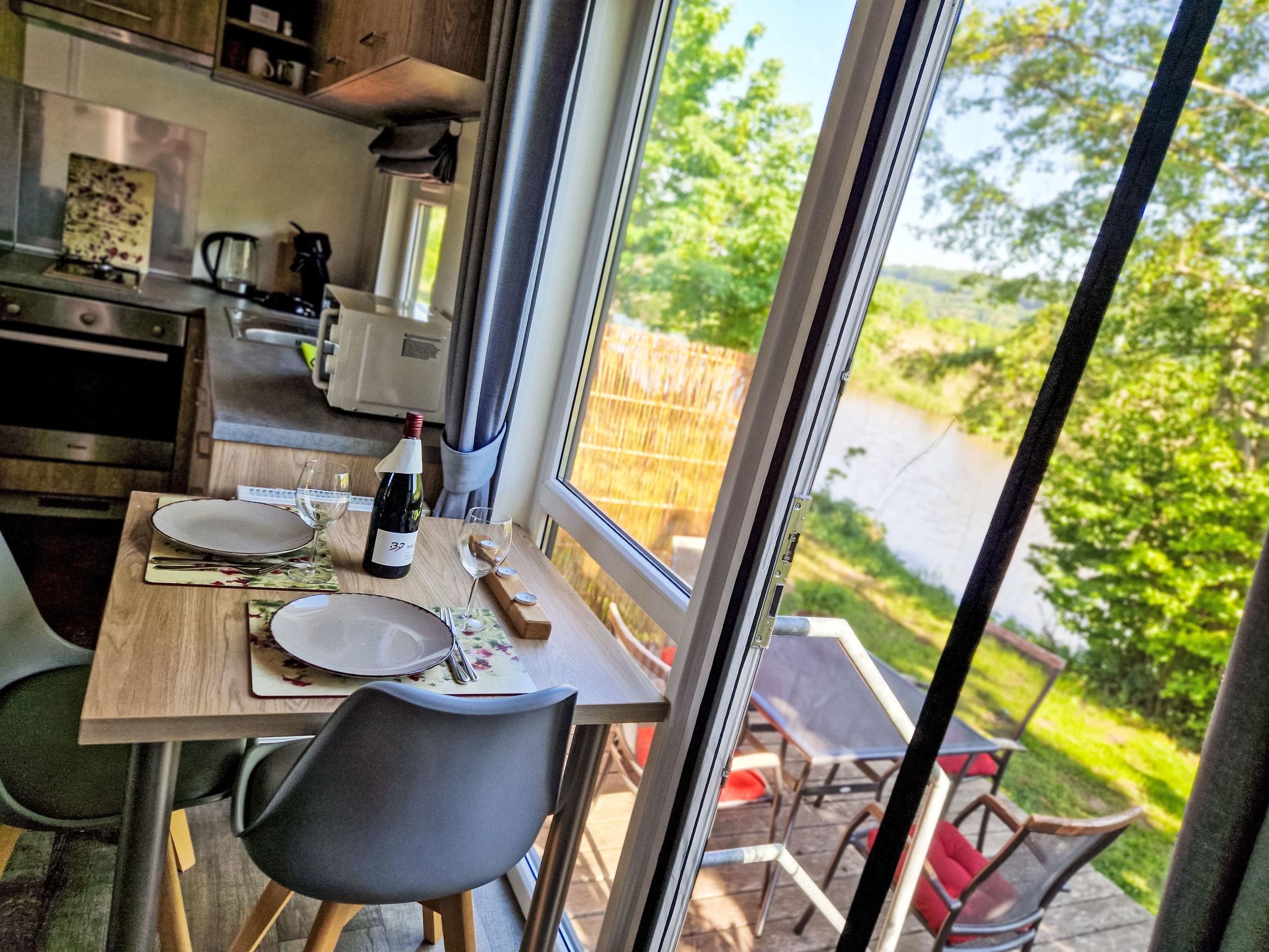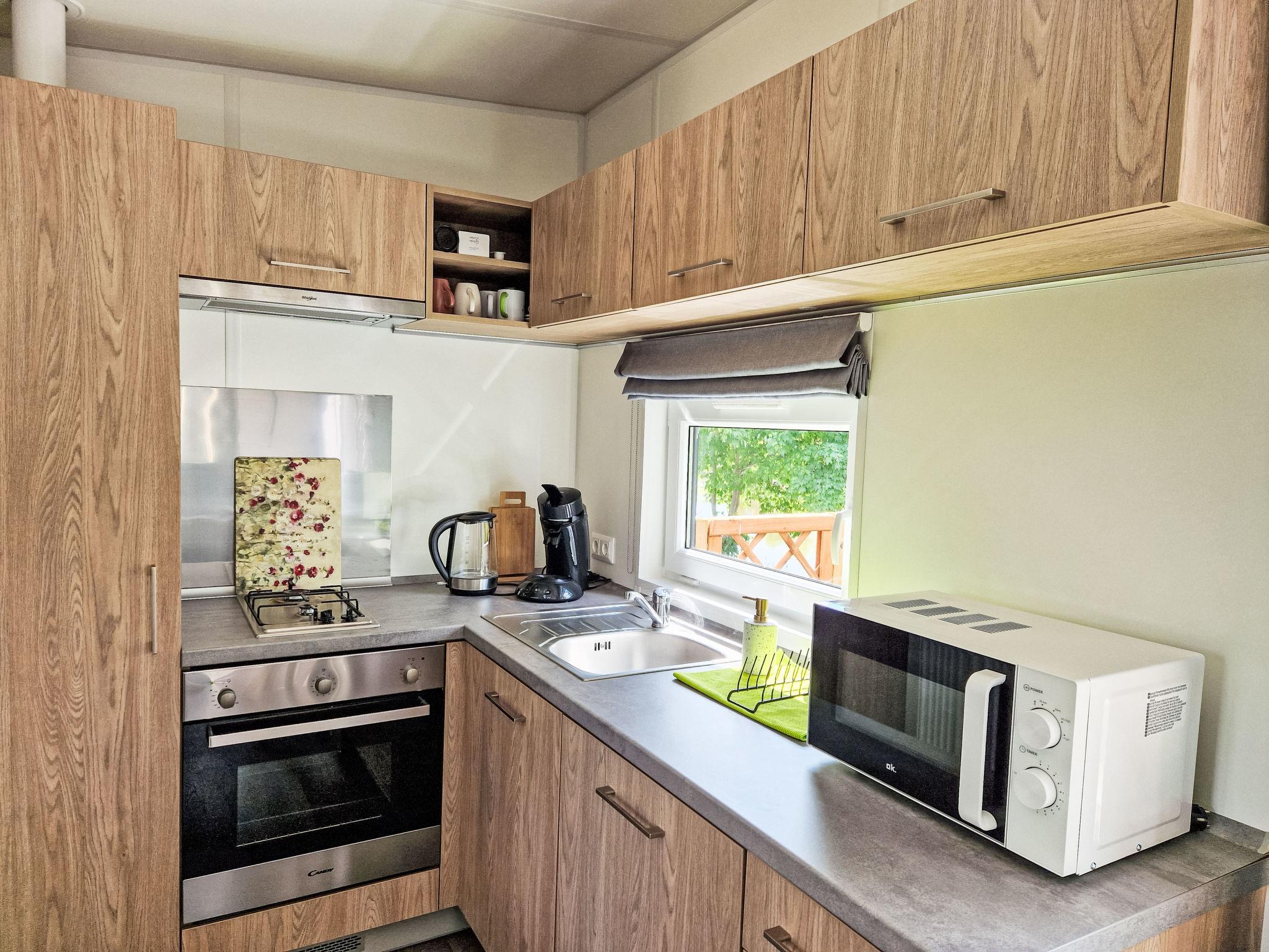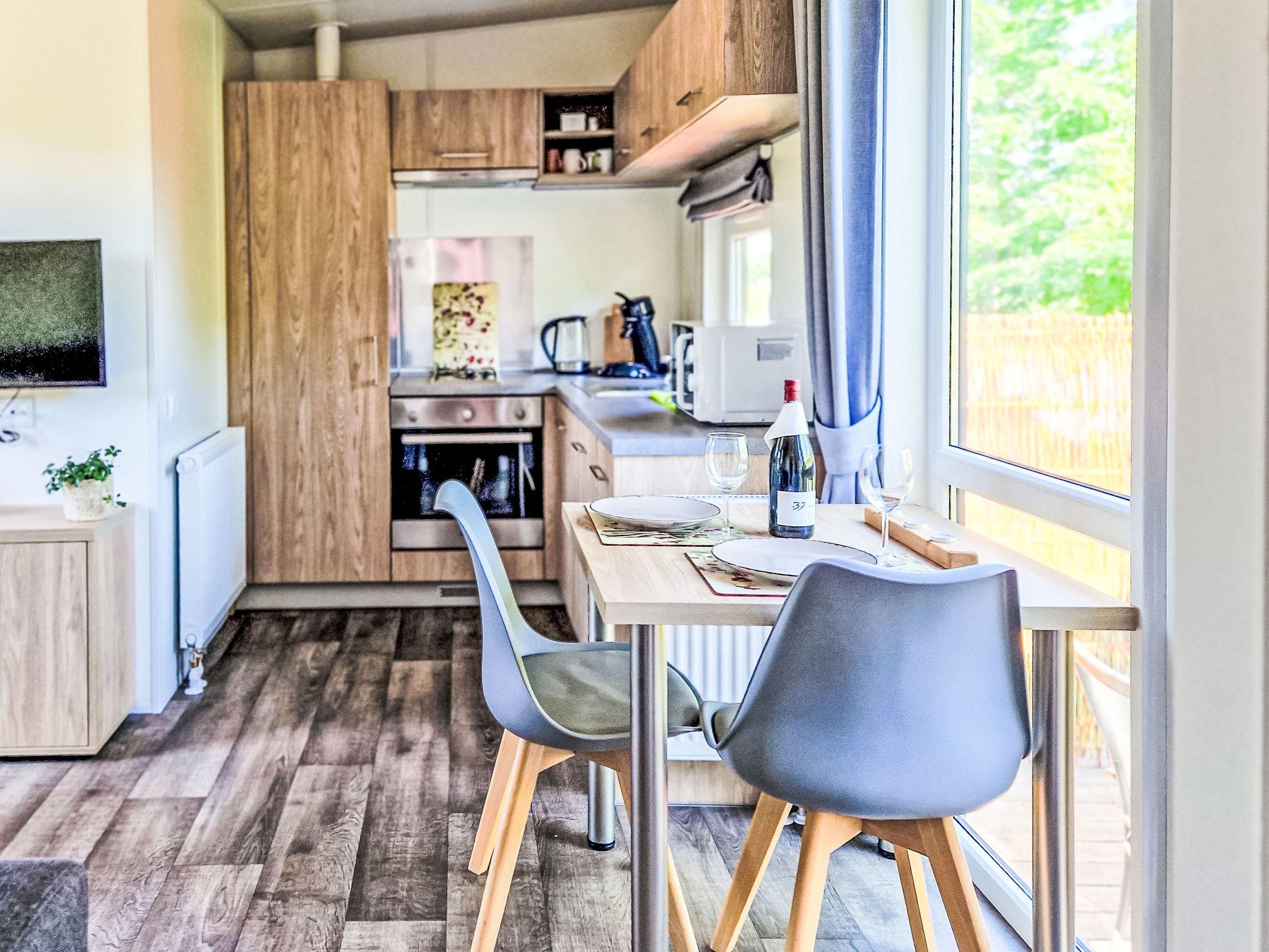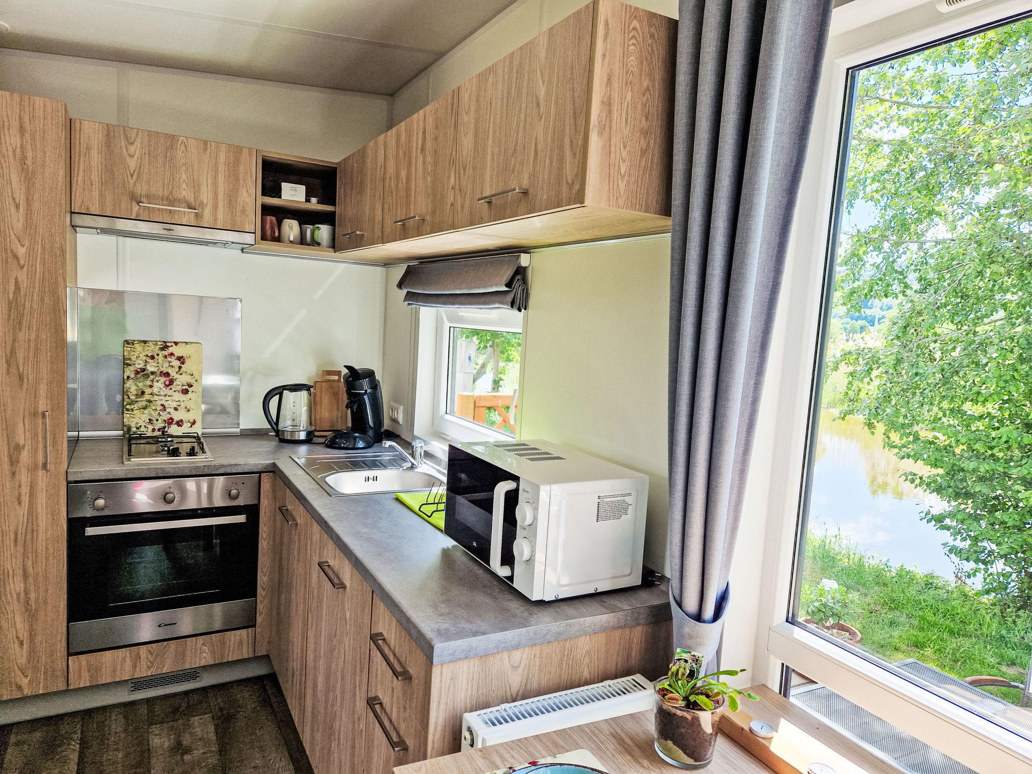 "Tiny Haus am Altmühlufer", 2-Zimmer-Mobilheim 25 m2. Objekt geeignet für 2 Erwachsene + 2 Kinder. Gemütlich eingerichtet: Wohn-/Schlafzimmer mit 1 Diwanbett (120 cm, Länge 170 cm), Sat-TV. Ausgang zur Terrasse. 1 Zimmer mit 1 franz. Bett (140 cm, Länge 200 cm). Kochnische (Backofen, Gasherd, 2 Flammen, Toaster, Wasserkocher, Mikrowelle, elektrische Kaffeemaschine). Dusche/WC. G-Heizung. Terrasse. Terrassenmöbel, Gartengrill (mobil). Parkplatz (1 Auto) beim Haus. Bitte beachten: Nichtraucher-Haus.