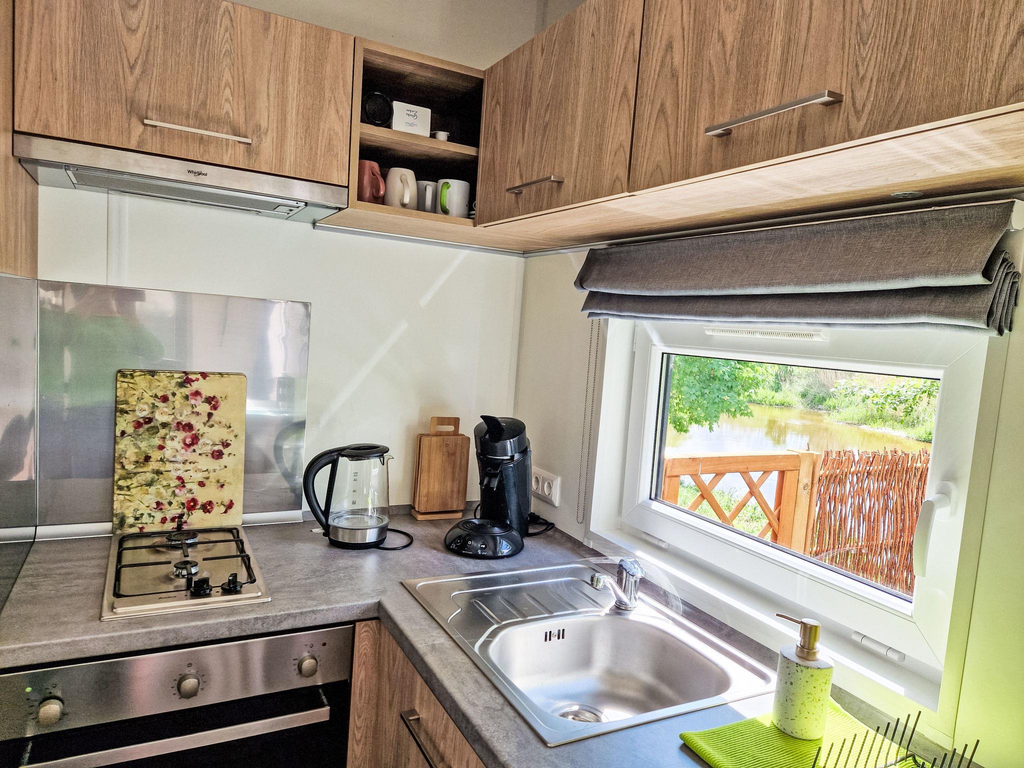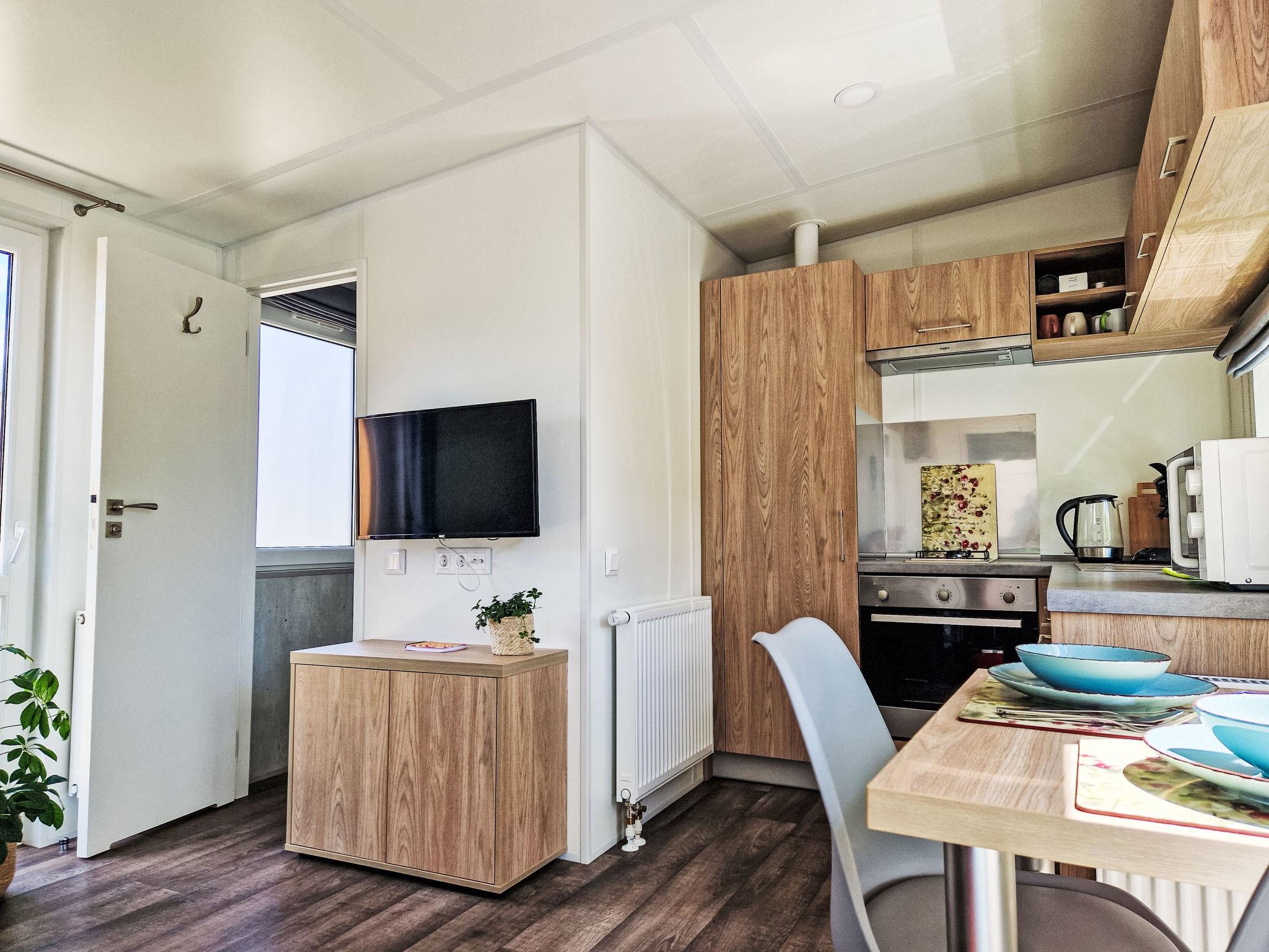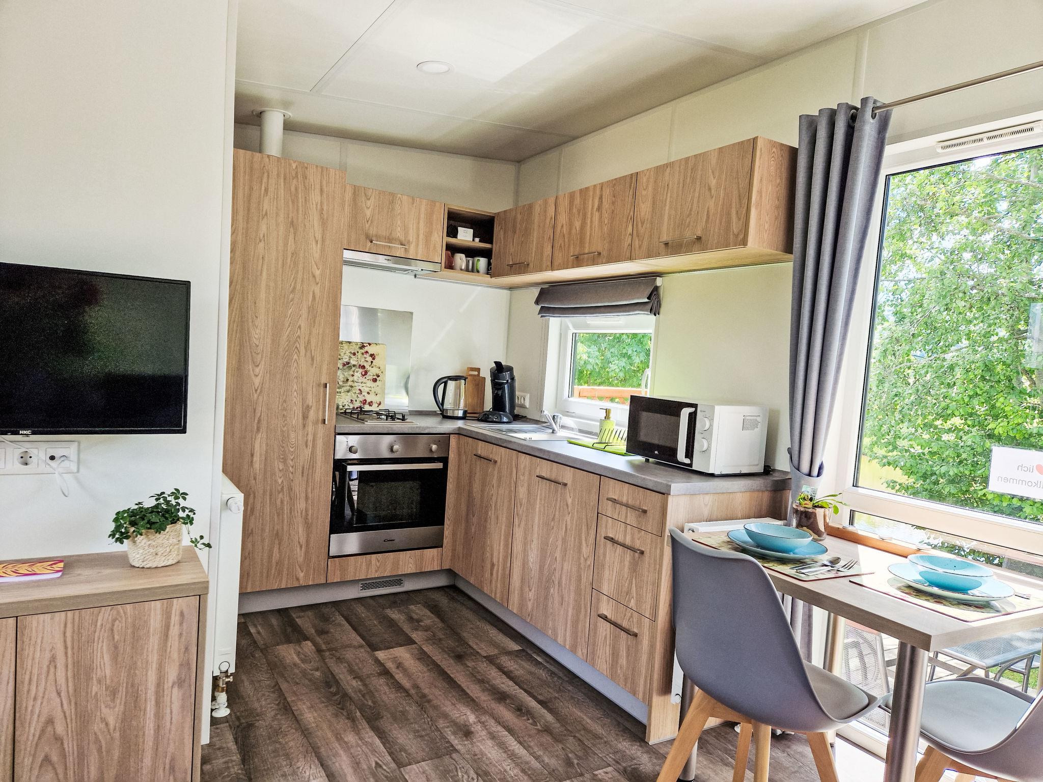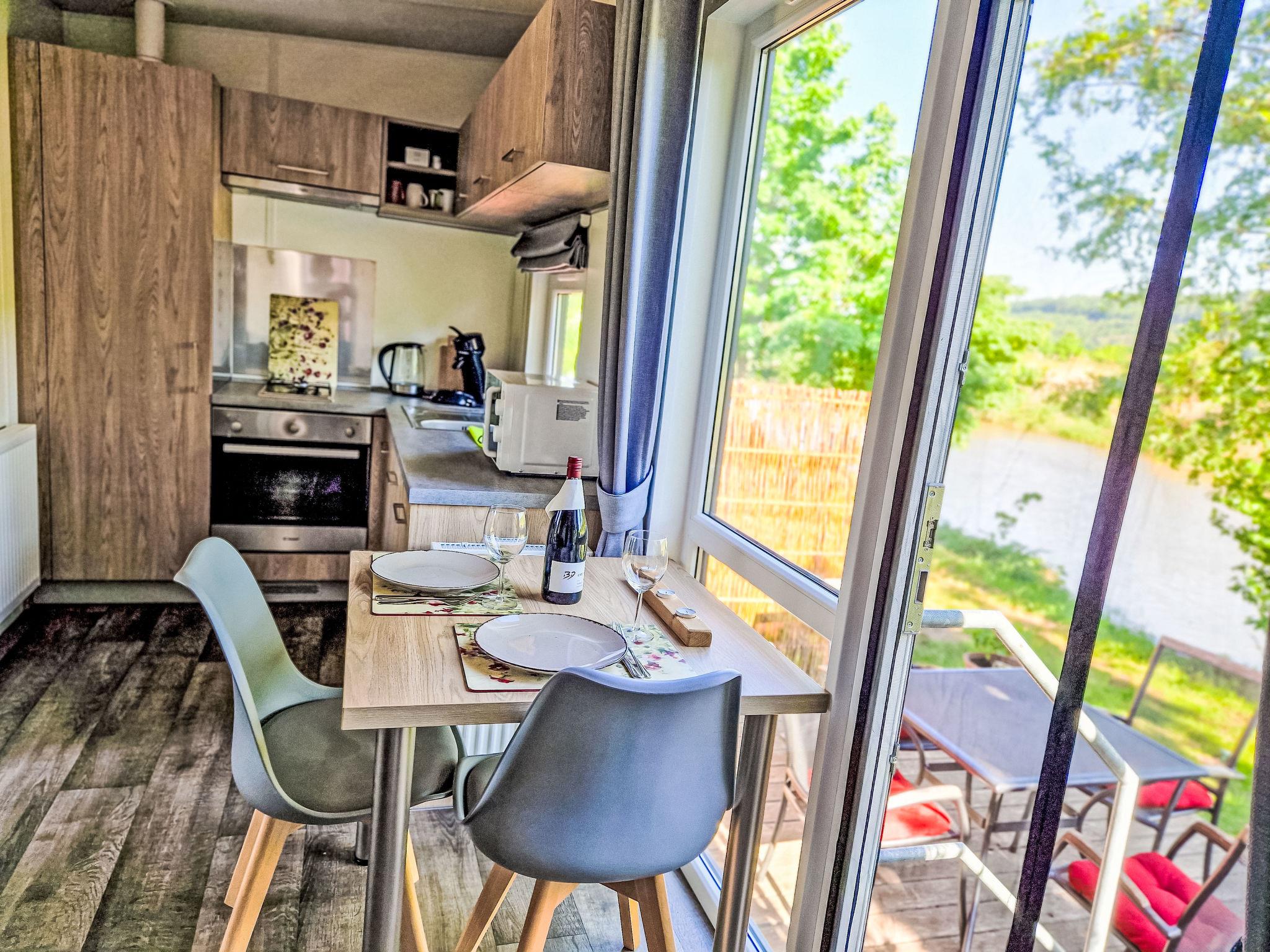 "Tiny Haus am Altmühlufer", 2-Zimmer-Mobilheim 25 m2. Objekt geeignet für 2 Erwachsene + 2 Kinder. Gemütlich eingerichtet: Wohn-/Schlafzimmer mit 1 Diwanbett (120 cm, Länge 170 cm), Sat-TV. Ausgang zur Terrasse. 1 Zimmer mit 1 franz. Bett (140 cm, Länge 200 cm). Kochnische (Backofen, Gasherd, 2 Flammen, Toaster, Wasserkocher, Mikrowelle, elektrische Kaffeemaschine). Dusche/WC. G-Heizung. Terrasse. Terrassenmöbel, Gartengrill (mobil). Parkplatz (1 Auto) beim Haus. Bitte beachten: Nichtraucher-Haus.