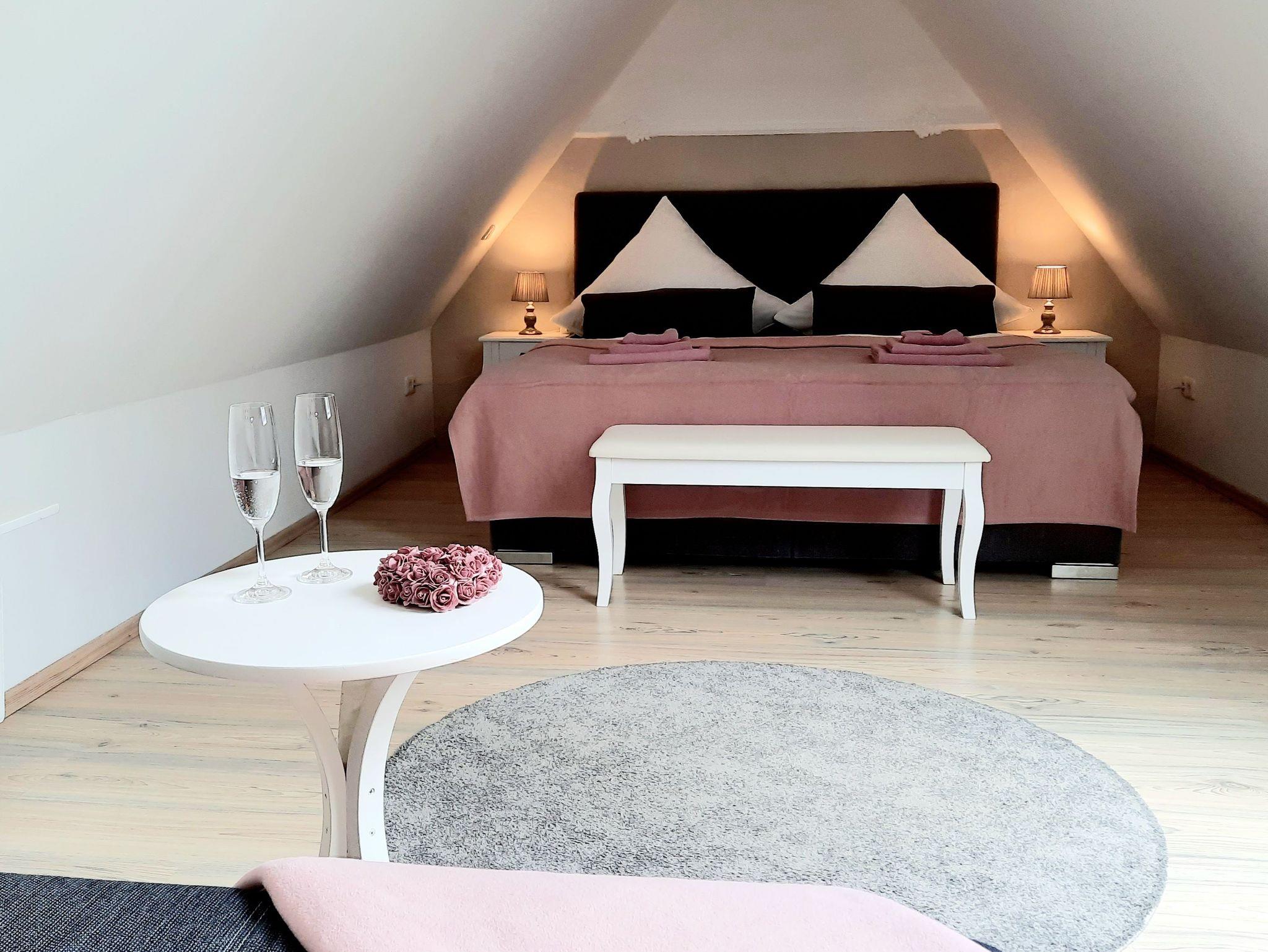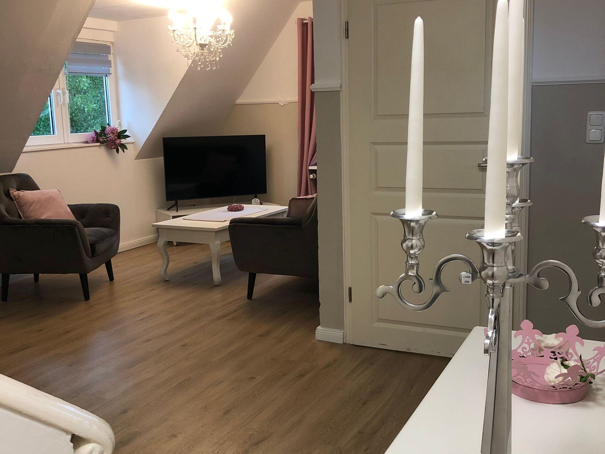 Unsere rauch- und tierfreie Ferienwohnung „Romantik“ ist ca. 72 qm groß und verfügt über einen eigenen Eingang mit Pkw-Stellplatz.