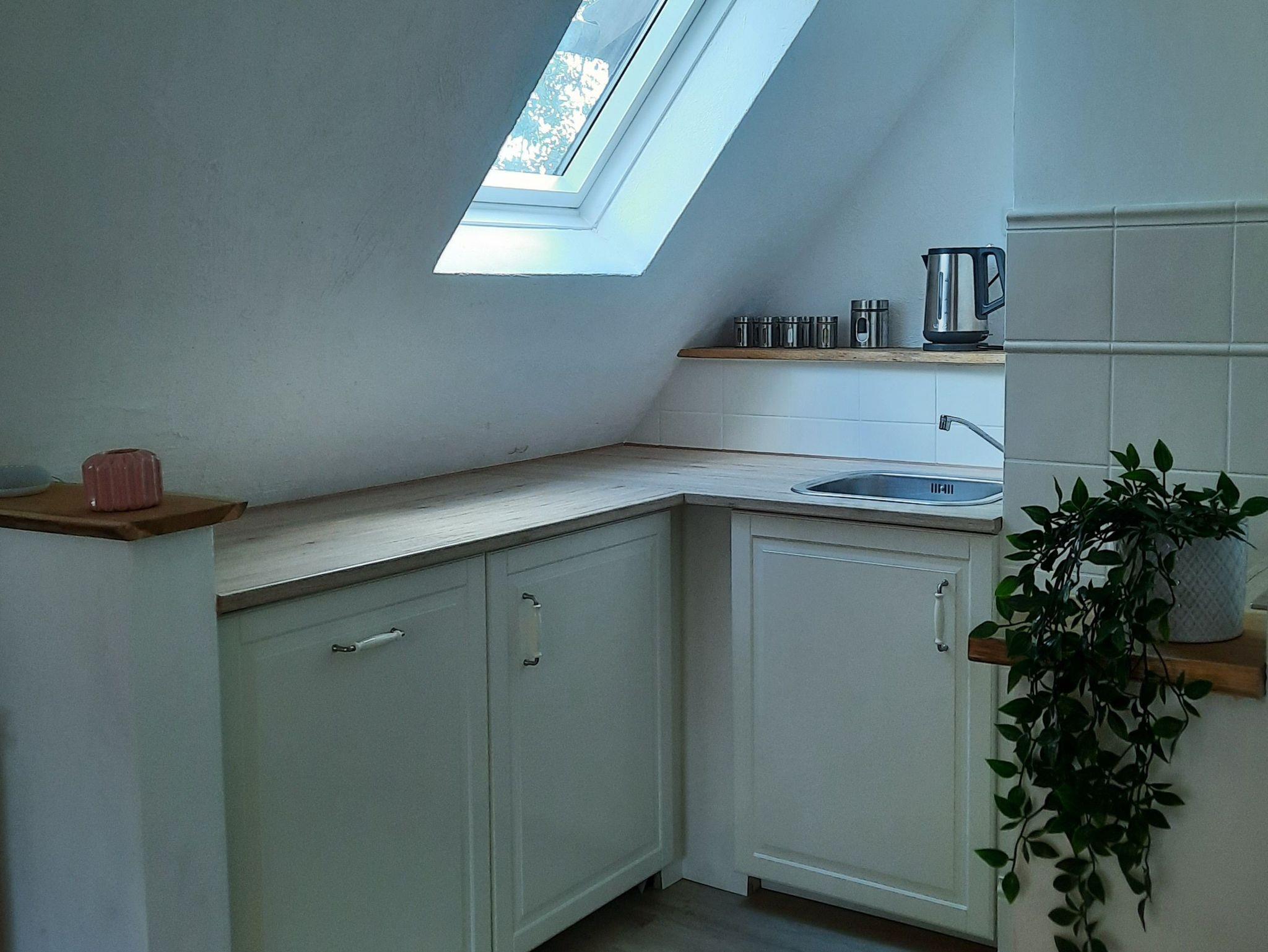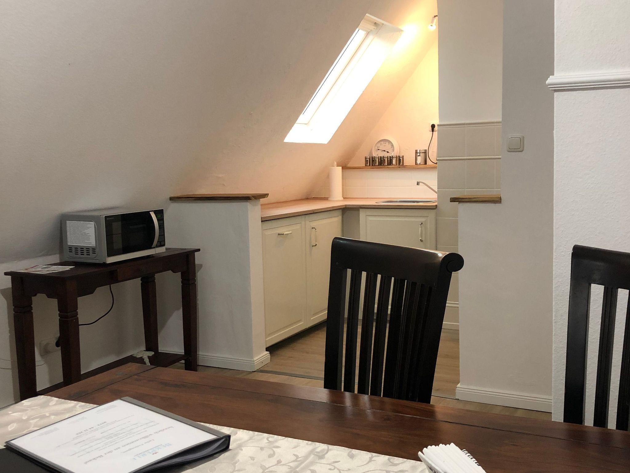 Auf dieser Ebene befindet sich die komplett ausgestattete Küche mit Esszimmer, in dem bis zu 5 Personen Platz finden.