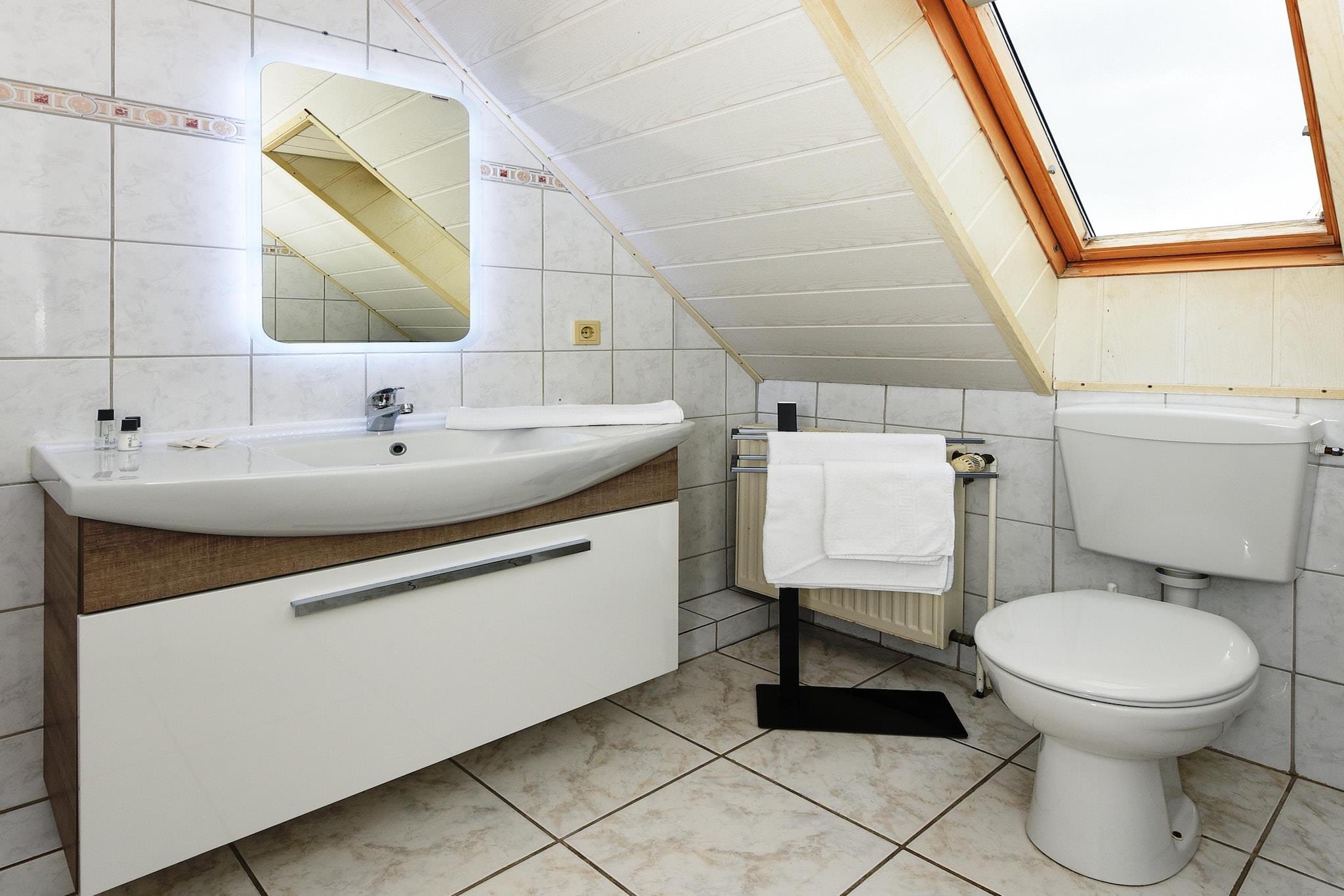 Diese gemütliche Ferienwohnung im Dachgeschoss überzeugt mit durchdachter Ausstattung und einem einladenden Ambiente – ideal für Familien oder kleine Reisegruppen. Mit zwei Schlafzimmern (ein Doppelbett & zwei Einzelbetten) bietet sie Platz für bis zu 4 Personen. Die voll ausgestattete Küche verfügt über 4 Kochplatten, Mikrowelle, Kaffeemaschine, Spülmaschine und einen Kühlschrank – perfekt für Selbstversorger. Im Wohn- und Essbereich sorgen TV, Esstisch und eine bequeme Sitzecke für entspannte Abende. Das Badezimmer ist modern mit Dusche, WC, Waschbecken und Föhn ausgestattet. Highlights: WLAN, verbrauchsabhängige Energiekosten und Wäschepaket inklusive. Hinweis zur Endreinigung: Bei einem Aufenthalt von unter 5 Nächten ist eine Gebühr von 80 EURO zu zahlen, ansonsten ist die Endreinigung inklusive.