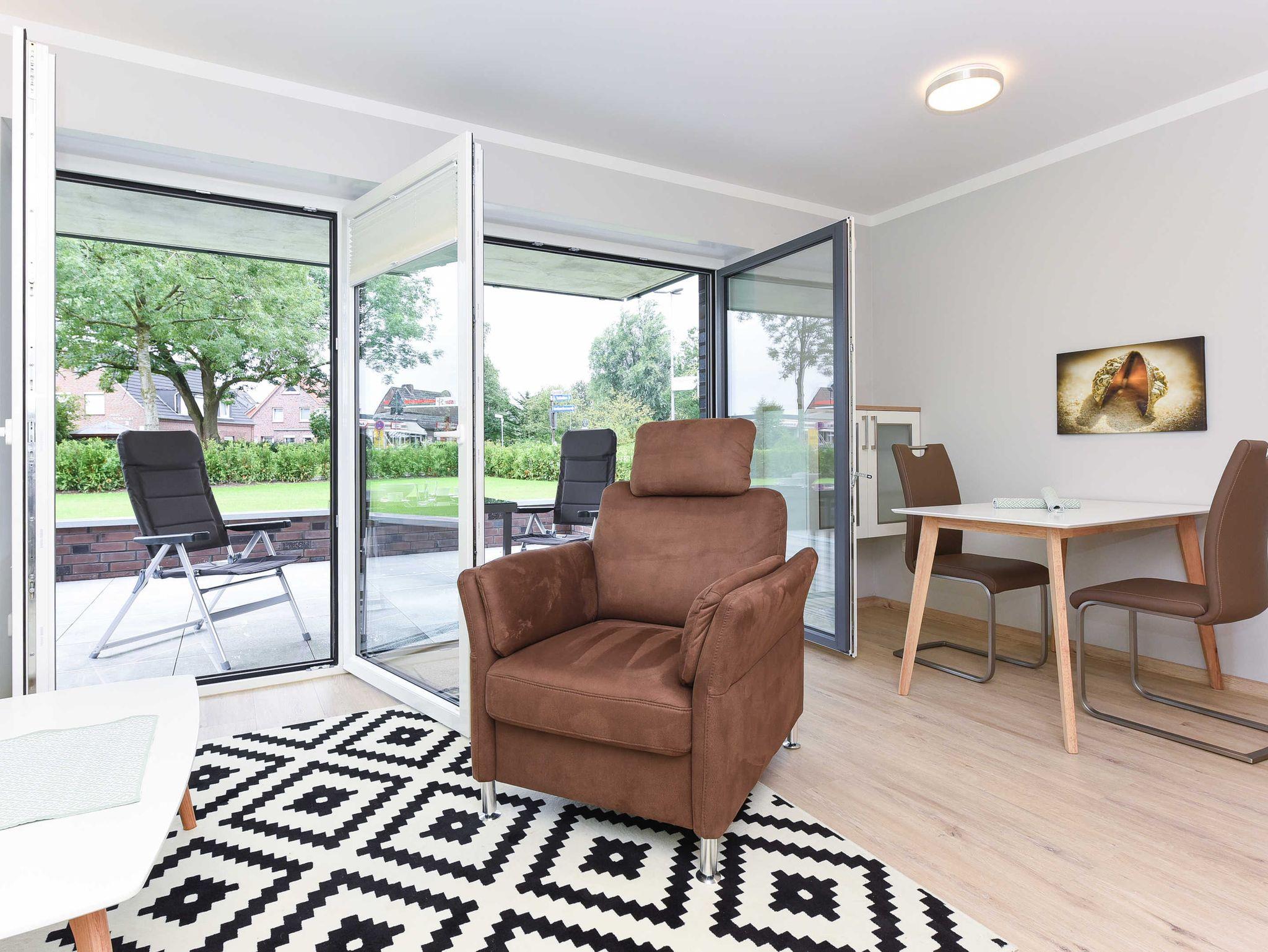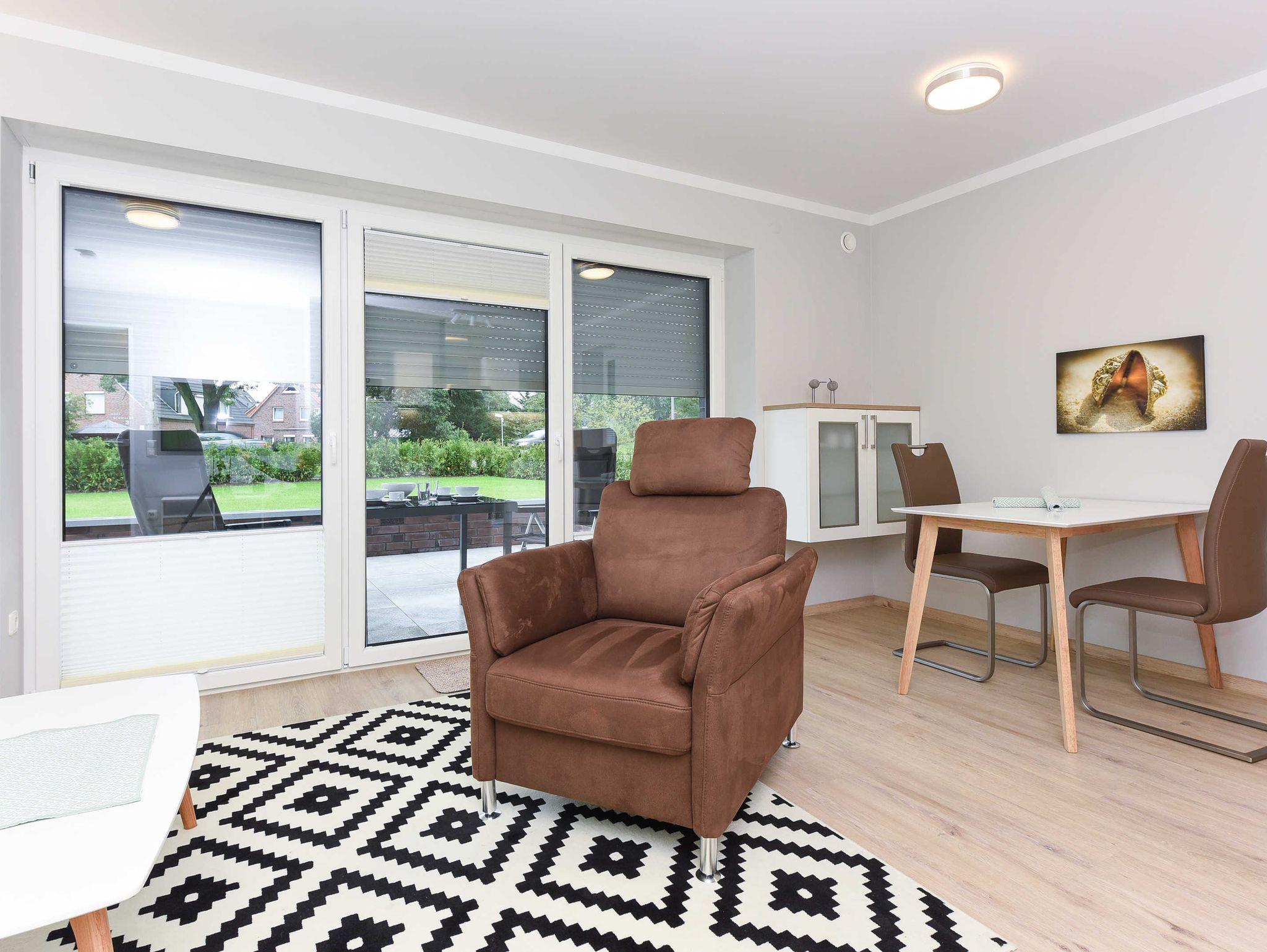 Moderne Ferienwohnung im Haus Seeperle in Bensersiel, nahe Strand, Therme und Nationalpark Wattenmeer.