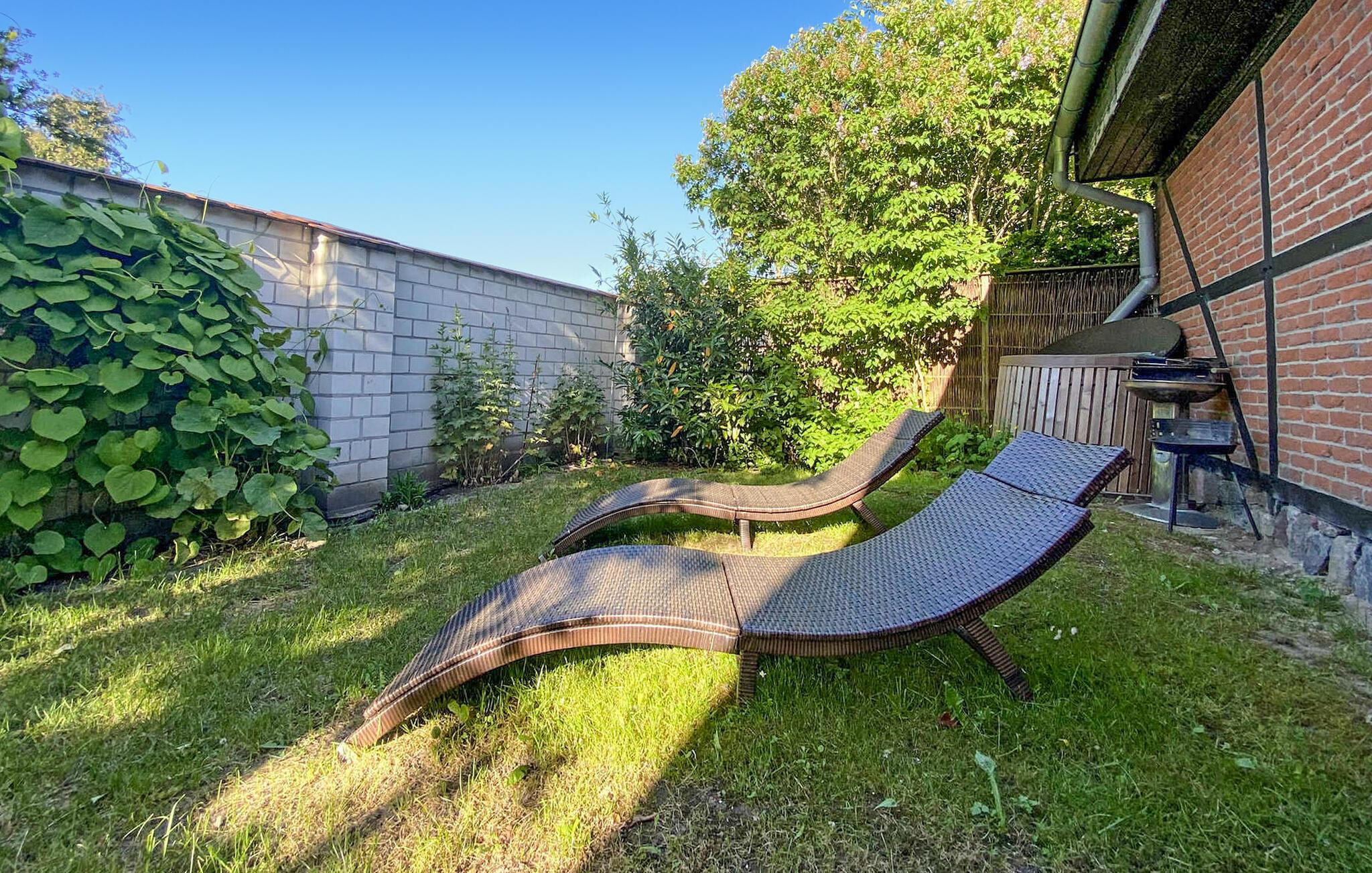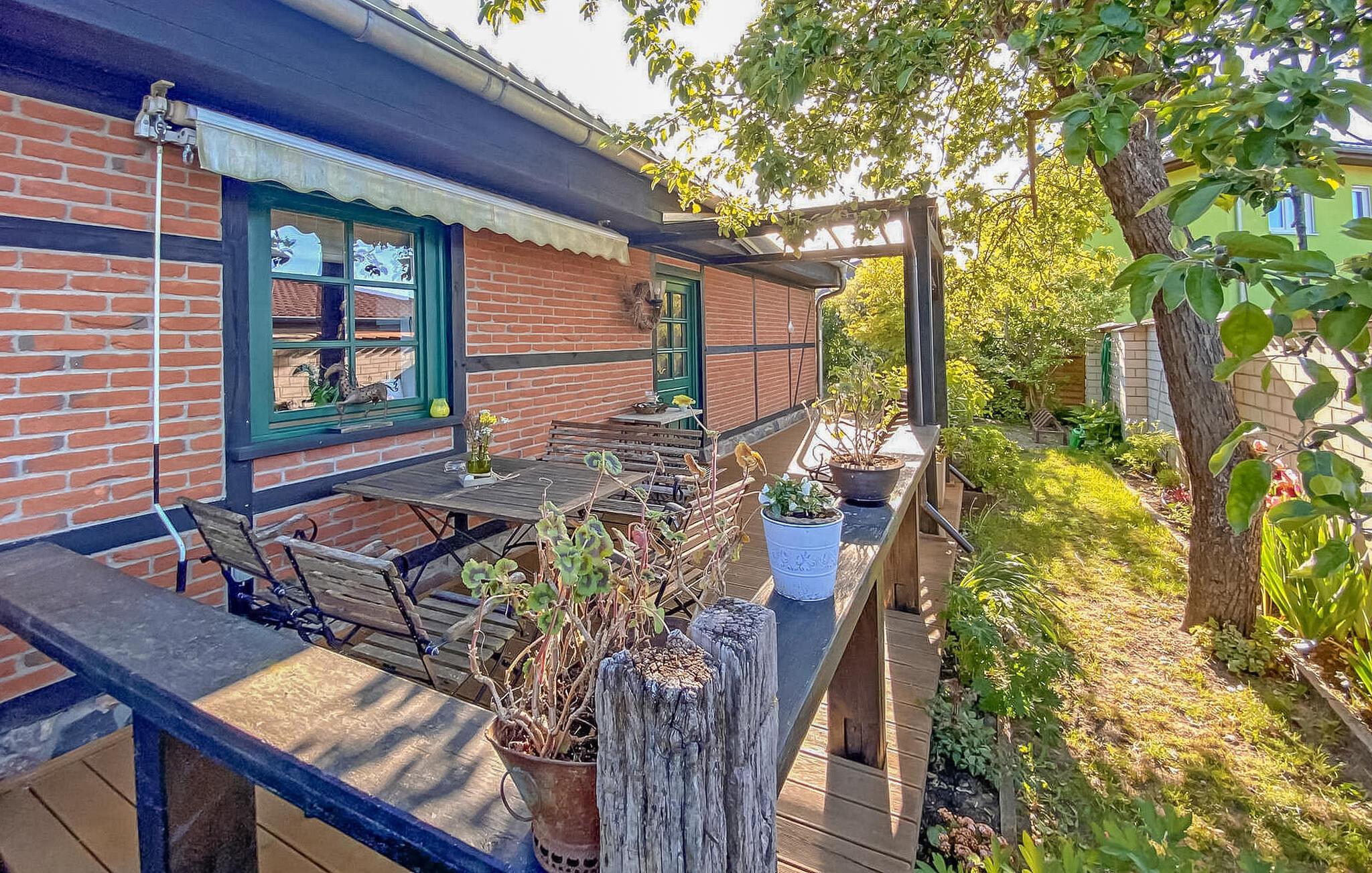Gemütliches Ferienhaus in Benz auf Usedom mit Terrasse, Kamin und eingezäuntem Garten für erholsame Tage.