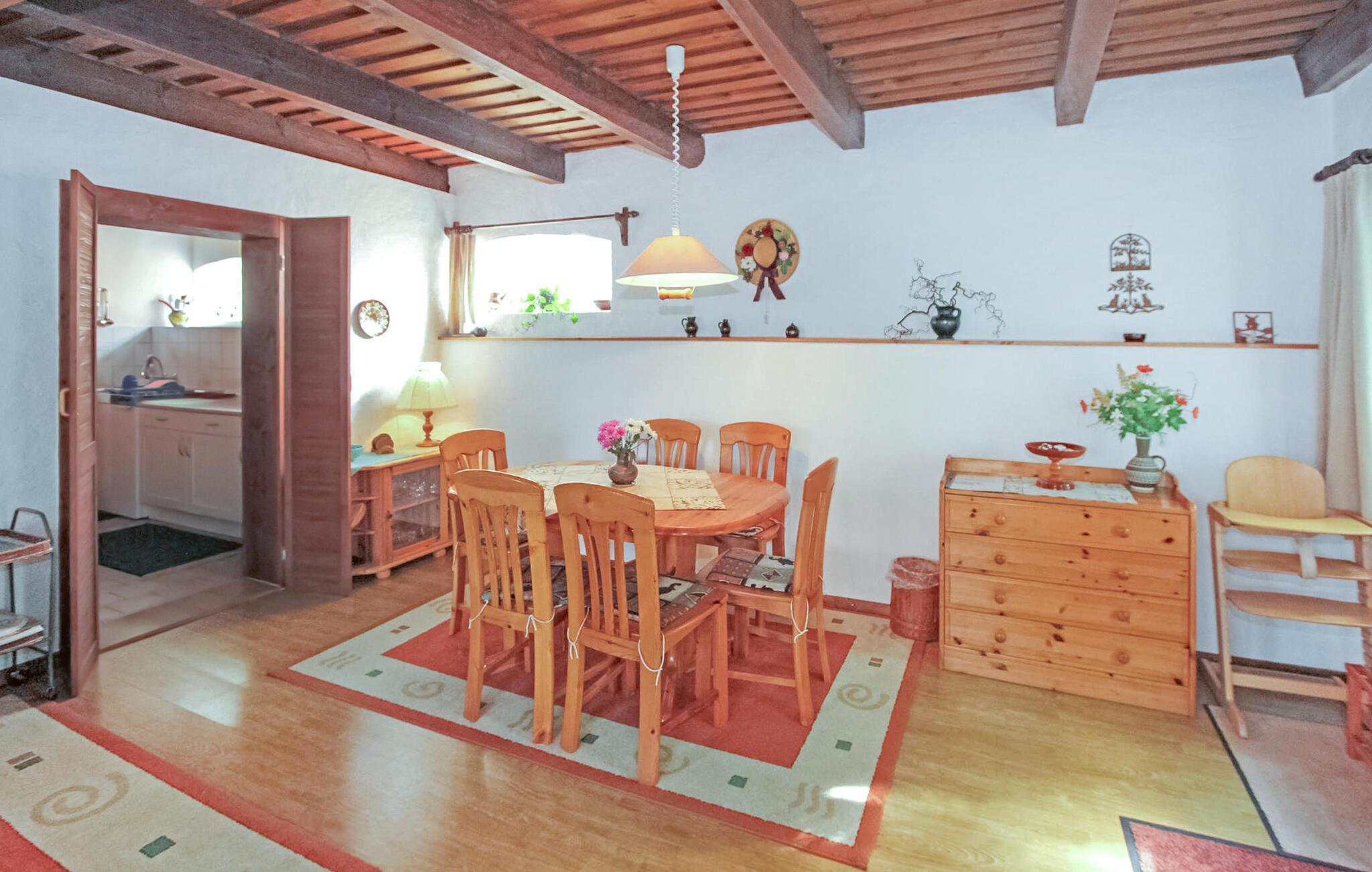 Die rustikale Ferienwohnung für bis zu 4 Personen befindet sich in einem separaten Nebengebäude auf dem 1.500 qm großen Wohngrundstück des Eigentümers in zentraler aber dennoch ruhiger Ortslage. Sie ist ausgestattet mit einem kombinierten Wohn-/Schlafraum (Doppelliege, Polstermöbel, Essplatz, Flachbild-TV, Radio), einem Schlafraum (Doppelbett, 2 Kojen für Kinder), Küchenzeile (E-Kochfeld, Kühlschrank mit Tiefkühlfach, Mikrowelle, Minibackofen, div. Küchengeräte) und DU/WC. Für Kleinkinder können ein Kinderbett und ein Hochstuhl bereitgestellt werden.Die Wohnung hat keine Heizung. Im Bad befindet sich eine elektrische Heizmöglichkeit. Auf Anfrage kann gegen Gebühr ein weiterer mobiler Heizkörper bereitgestellt werden. Weiterhin stehen eine möblierte Terrasse, Grill und PKW-Stellplatz und W-LAN zur Verfügung.