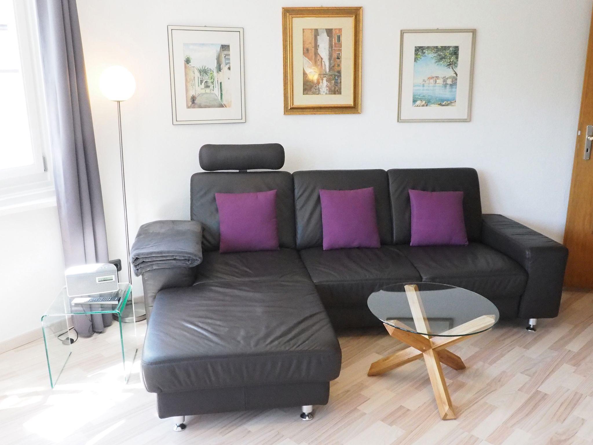 Die Nichtraucher - Wohnung liegt im 3. Stock unseres Hauses (Dachgeschoß). Mit einer Wohnfläche von 58 qm ist ausreichend Platz für 2 Personen. Schöne helle Wohnung mit tollem Ausblick zum Kehlstein und Obersalzberg! Der Wohnbereich mit Ledercouch ist mit einem Flat-TV-Gerät und einer komplett ausgestattete Küchenzeile mit hochwertigen elektrischen Geräten ausgestattet. Das Schlafzimmer wurde vom Schreiner eingebaut - mit einer Bettgröße von 180 x 200 cm und ebenfalls einem Flat-TV-Gerät. Bad mit DU/WC und Waschbecken, Hand- und Badetücher, Bademäntel, Waschmaschine, Bügeleisen mit Bügelbrett.