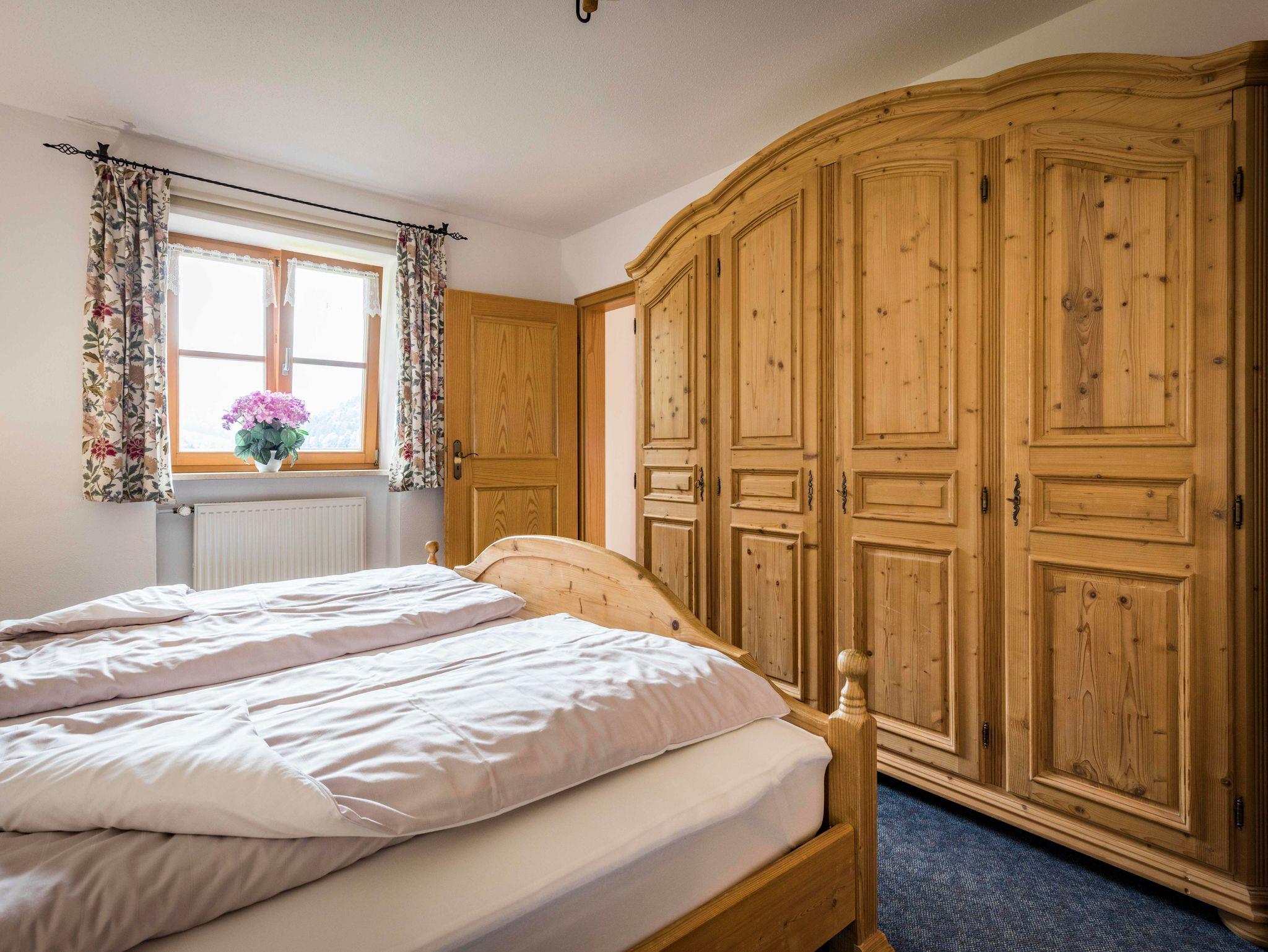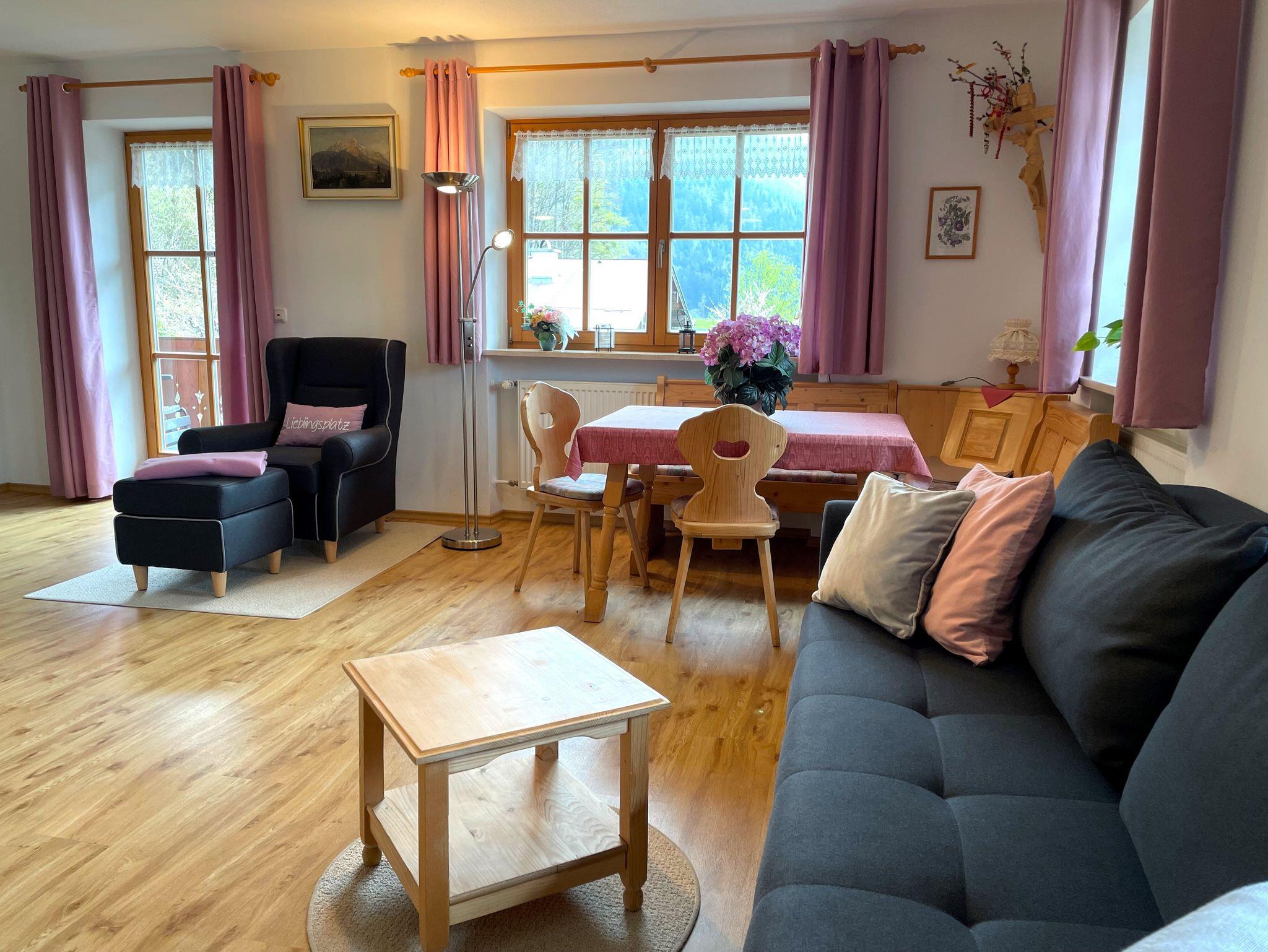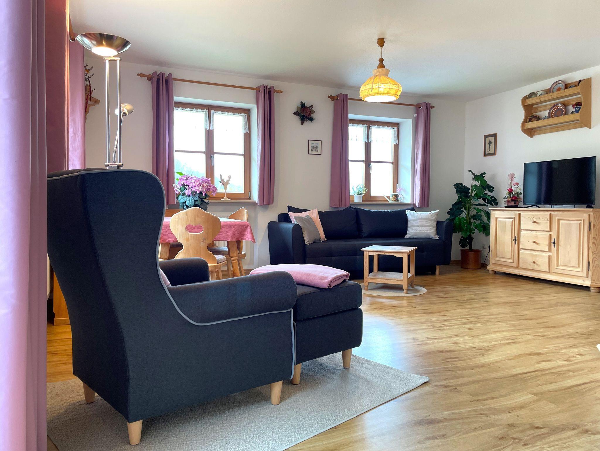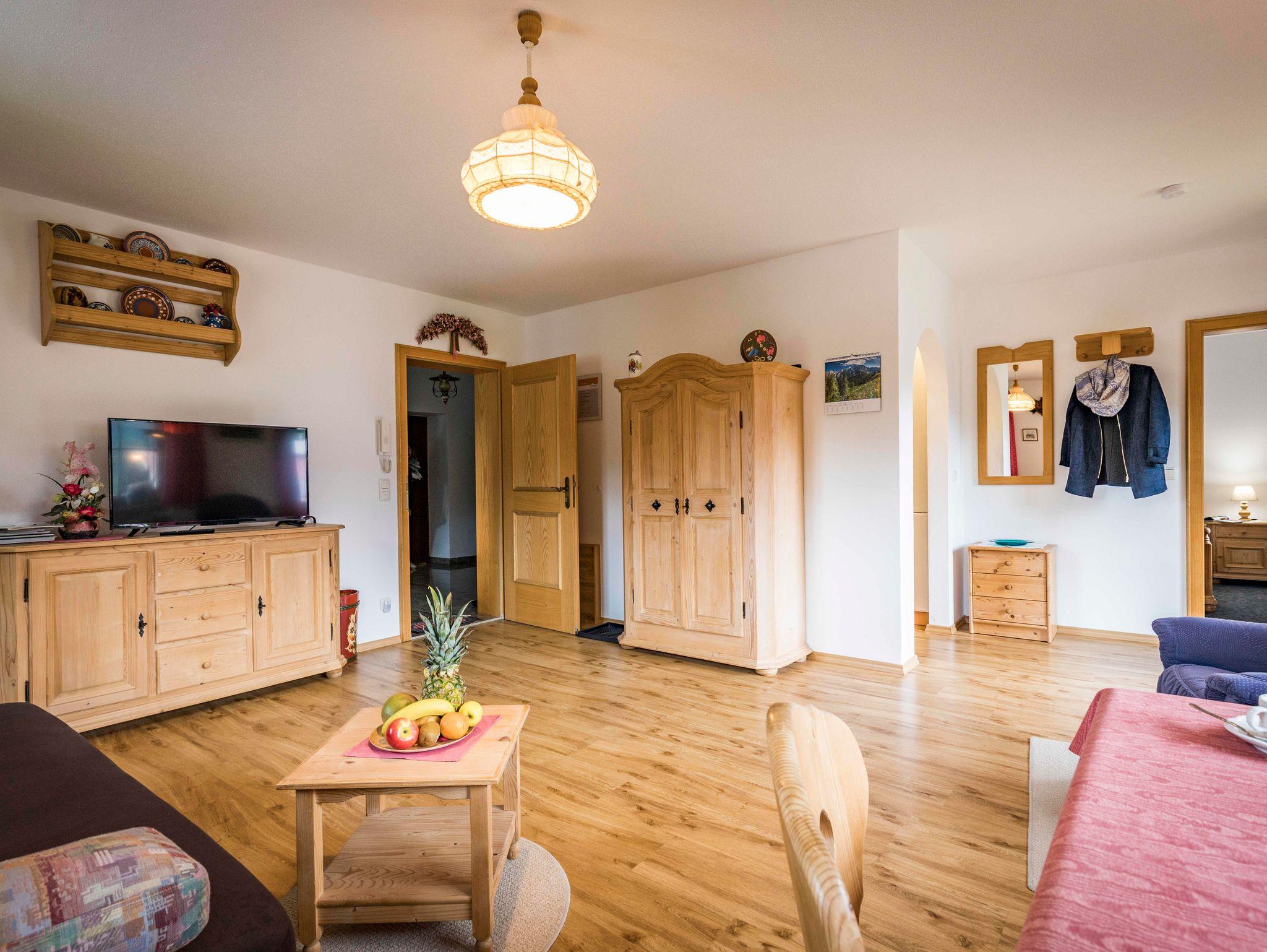 Die Wohnung hat 60 qm Wohnfläche und ist für 2 Personen. Ein großes, helles Wohnzimmer mit einer gemütlichen Eckbankgruppe, Polstercouch (als Doppelbett ausklappbar), SAT-TV, Video, Radio-CD, Telefon. Ein Doppelschlafzimmer, eine komplette Einbauküche, Bad mit Dusche, WC. Die Ferienwohnung ist im 1. Obergeschoß und verfügt über einen großen Südbalkon mit Gebirgsblick.
