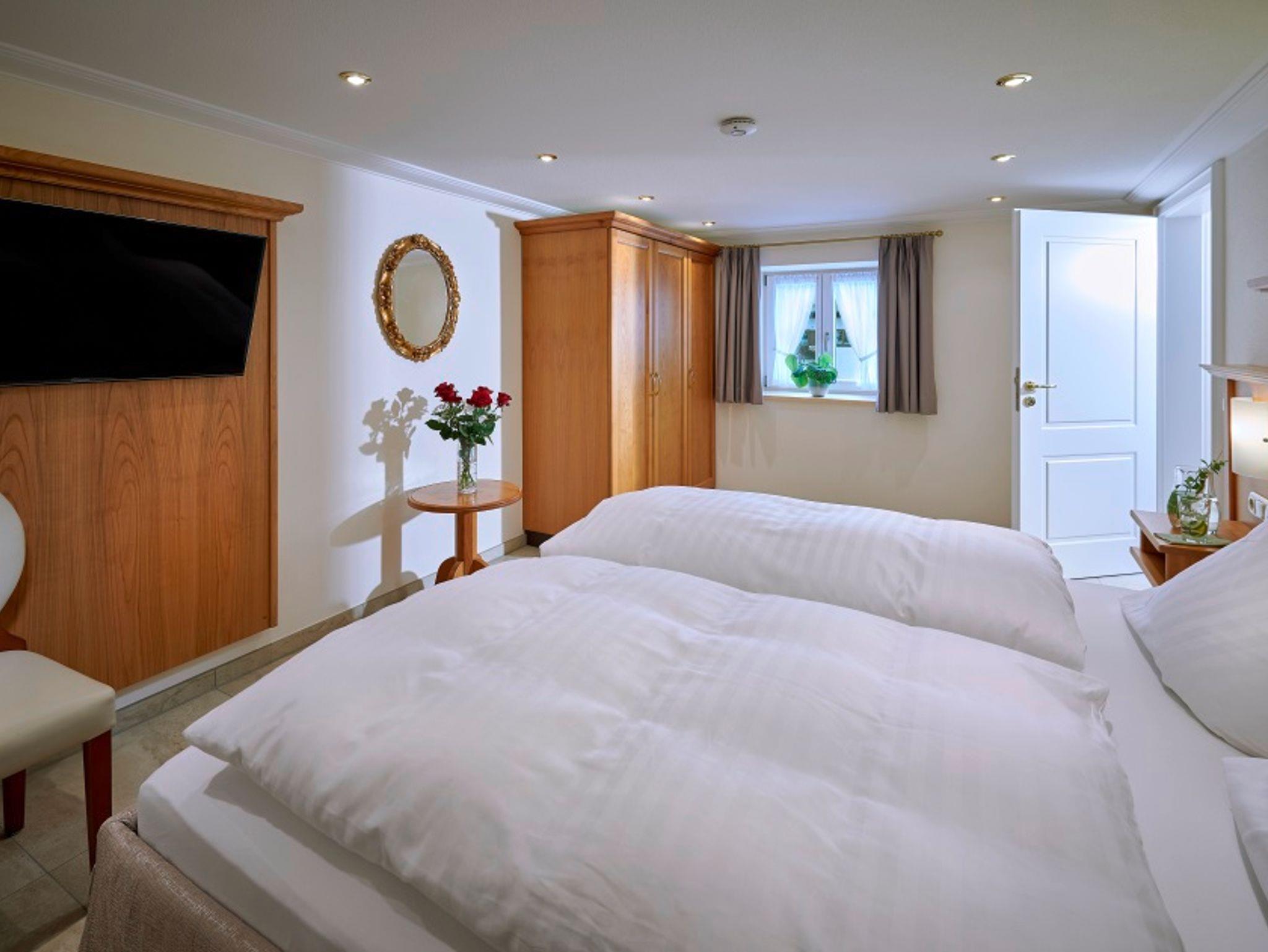 Die Ferienwohnung ist in Richtung Norden zur Kirche ausgerichtet. Alle Fewo´s sind ausgestattet mit Flachbild-Fernseher 40 bzw. 43 Zoll, Herd mit Backofen, Spülmaschine, Kühlschrank mit Gefrierfach, Kaffeemaschine, Toaster, Kochgeschirr, Geschirr, Safe, Föhn, WLAN, Geschirrtücher, Bettwäsche und Handtücher.Für alle Gäste: Aufzug, Aufenthaltsraum im EG, Waschmaschine, Trockner im EG, Terrasse im EG, Park (5000 m²) mit Liegen, ausreichend Parkplätze, abschließbare Fahrradgarage und Sauna.