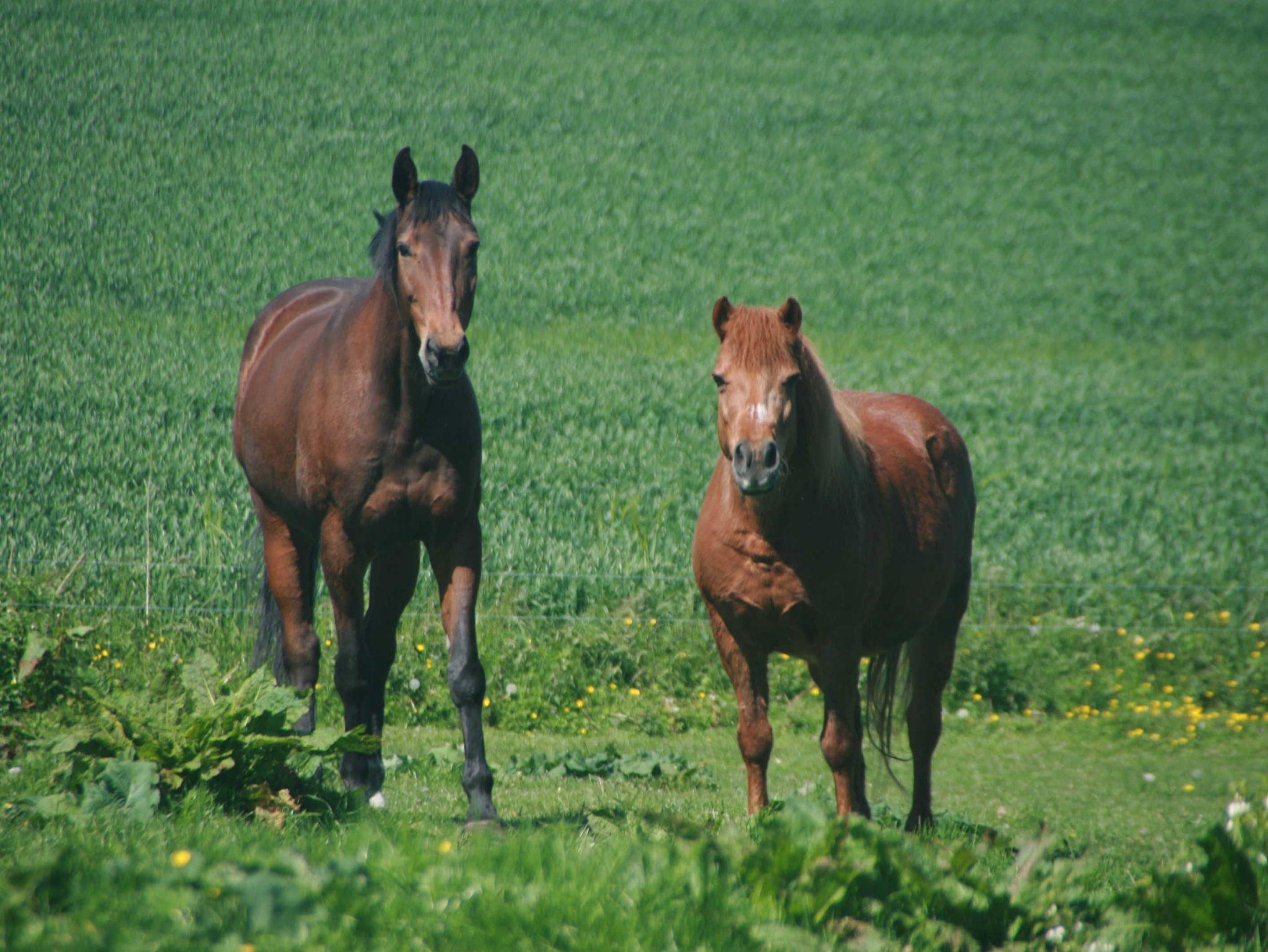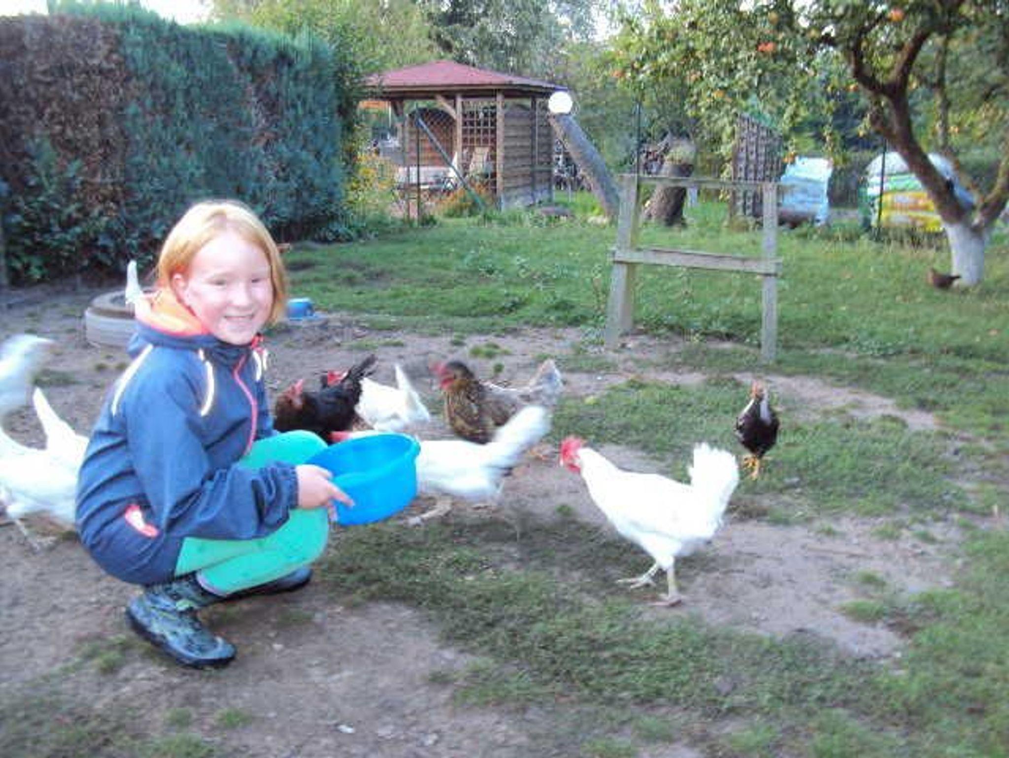 1 Babybett, 1 Hochstuhl kostenlos. Hühnerhof im Garten. Auf benachbarten Koppeln weiden Pferde, Schafe mit Lämmchen und Kühe mit kleinen Kälbchen. Dorf- Spielplatz 500m.