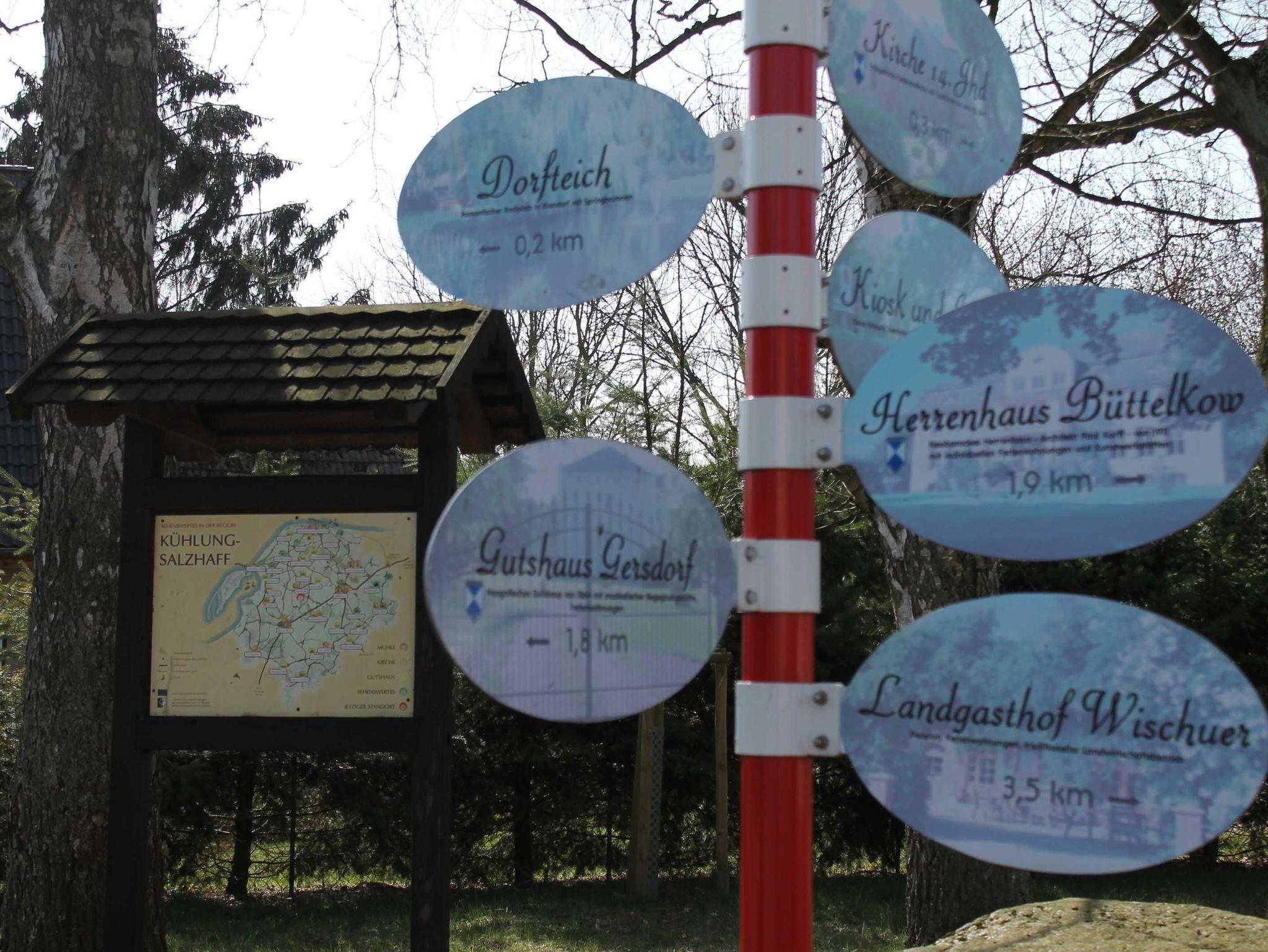 Gersdorf, ländlich idyllisches Dorf südlich der Ostseebäder Rerik (8km) und Kühlungsborn (12km) mit breiten weißen Sandstränden - auch FKK, Seebrücken, Strandpromenaden, Restaurants & Cafés, Bummelmeilen, Kino, Schwimmbad & Sauna, Wassersportcenter, Minigolf, Kleinbahn Molli. Einkaufsmöglichkeiten und Geschäfte, Post, Bank, Tankstelle je 5km. Reiterhof, Heuhotel und Landcafé 2km. Golf 12km, Tennis 4km. Viele schöne Radwege entlang Feld und Wald u.a. zur Ostsee in unmittelbarer Nähe. Schloß, Spielplatz, Dorfteich und Wald 500 m.