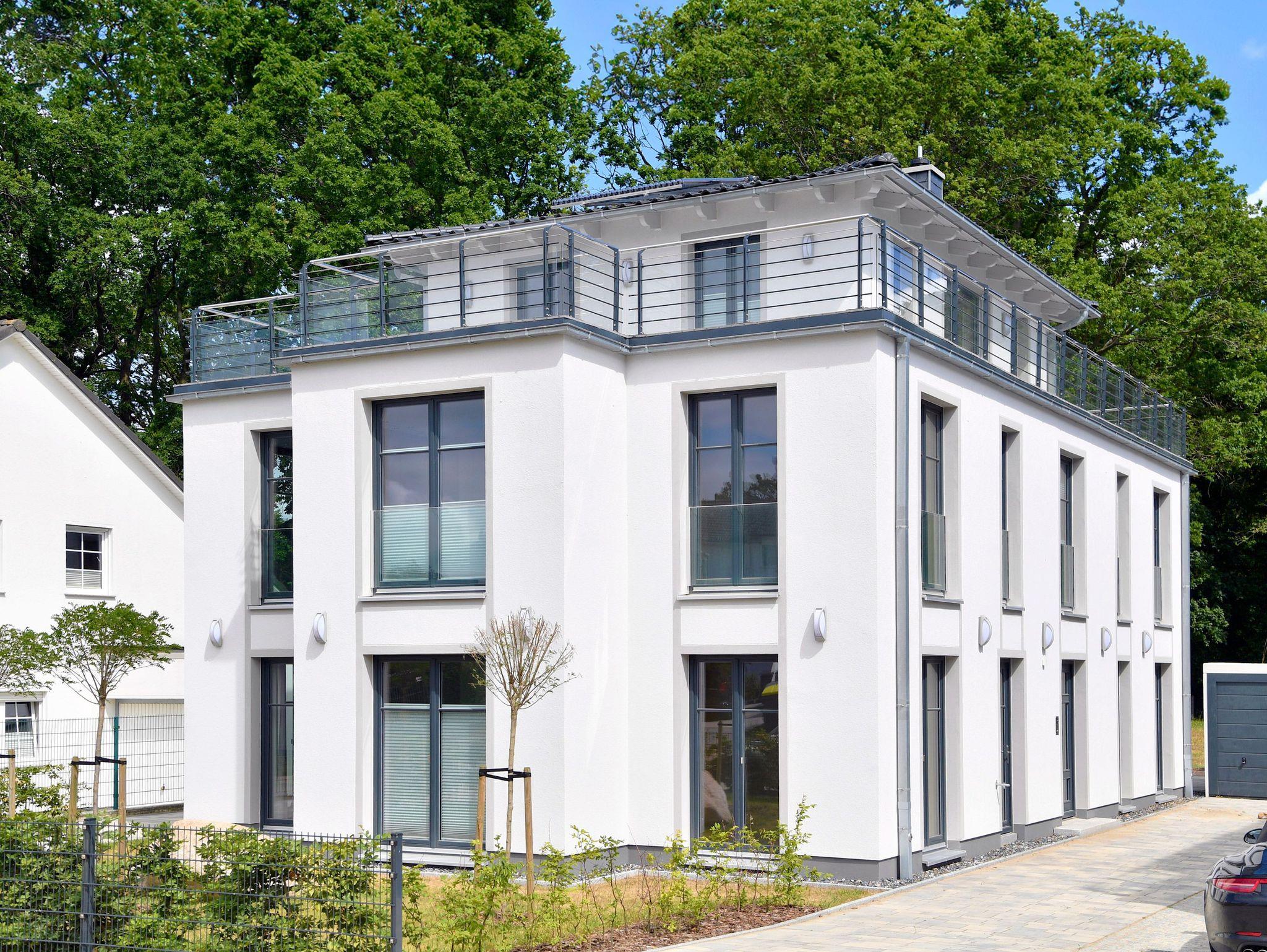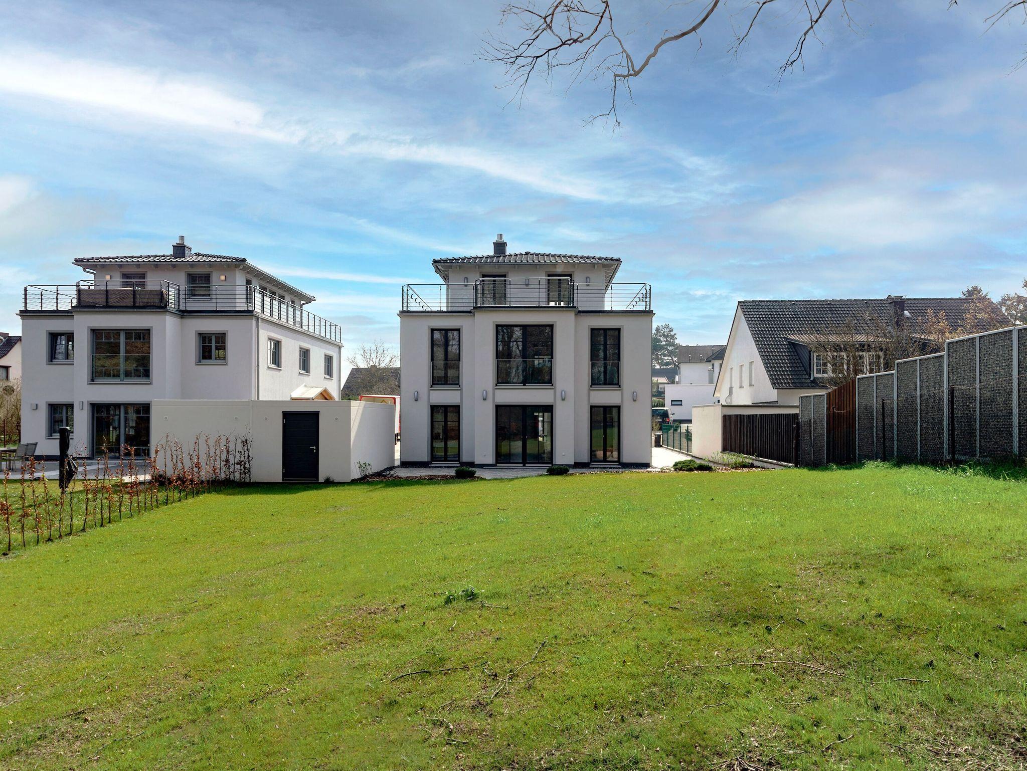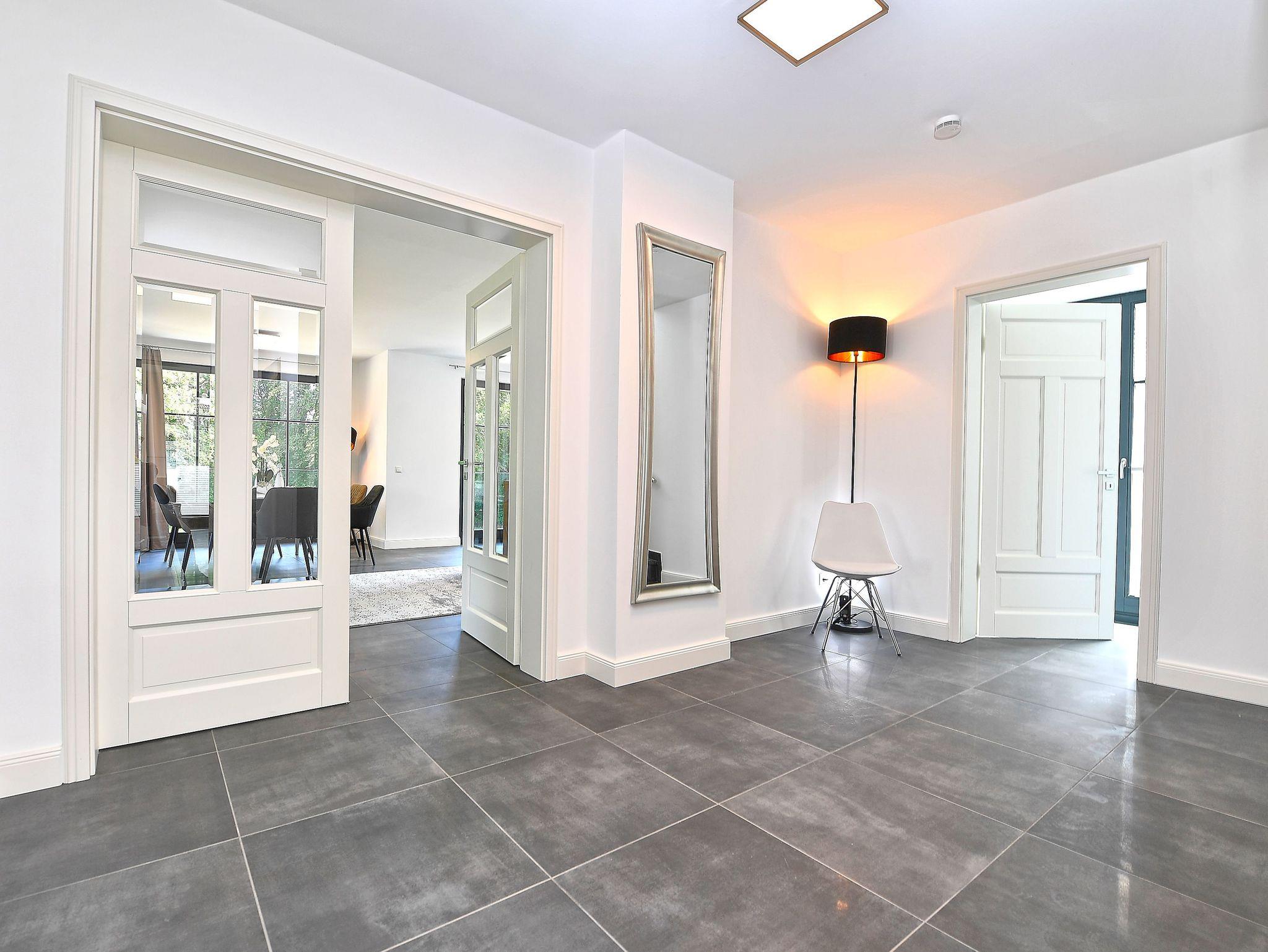 Über das mit einer großen Garderobe ausgestattete private Entree im Erdgeschoss führt eine Treppe hinauf ins erste Obergeschoss. Hier erwarten Sie das überaus geräumige Wohn-/Esszimmer, zwei Schlafzimmer, ein luxuriöses Badezimmer und der Hauswirtschaftsraum.