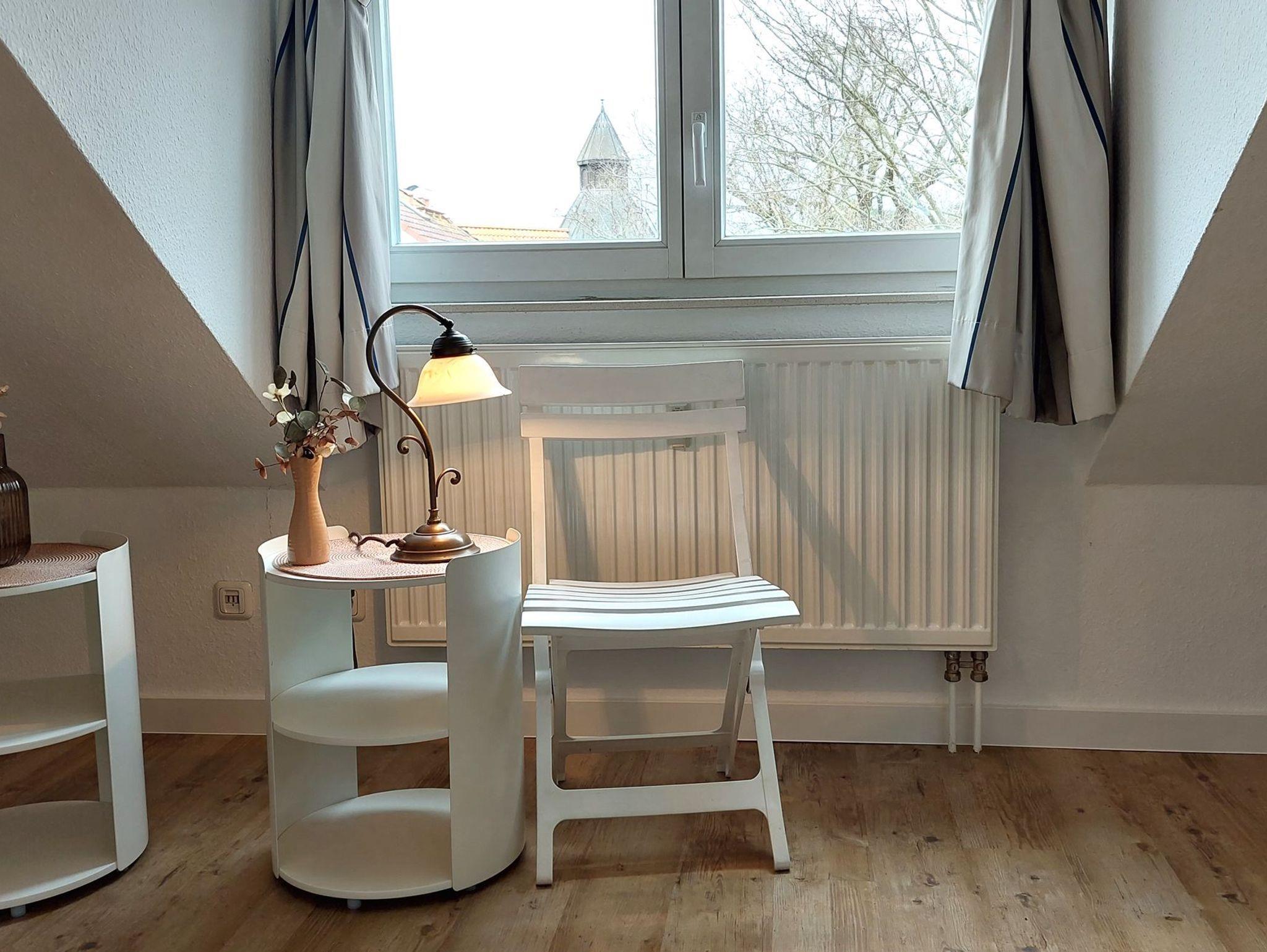 Die Maisonette-Wohnung teilt sich auf in einen freundlichen Flurbereich mit integrierter Wohnküche und Essbereich. Die Küchenzeile beinhaltet u.a. einen Geschirrspüler, Kochfeld, Mikrowelle, Kaffeemaschine, Wasserkocher und Toaster. Zudem erwartet Sie ein Tageslichtbad mit Dusche sowie der Wohnraum mit Balkonzugang. Im Wohnbereich finden Sie neben der Sitzgruppe mit Schlafsofa mit großem Smart-TV sowie WLAN. Über eine Wendeltreppe gelangen Sie in das 3. Obergeschoss, welches Sie mit einem zusätzlichen Duschbad und zwei separaten Schlafräumen begrüßt.