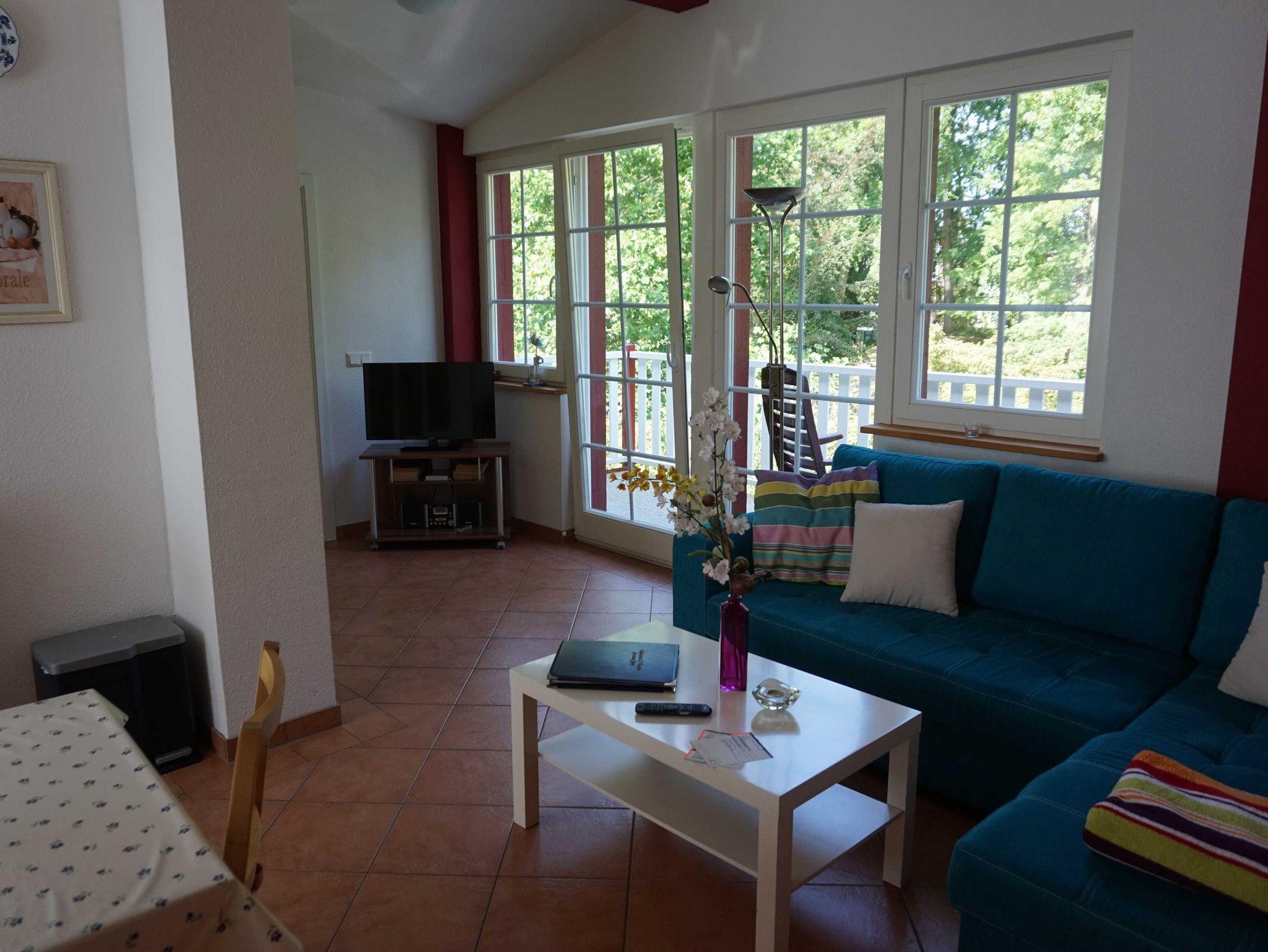 1Schlafzimmer mit 2 Einzelbetten (0,9x2,0m), Wohnküche (22 m²) als Durchgangszimmer mit Auszieh-Eckcouch für 2 Pers. (1,5x2,0 m) TV,Stereo mit CD u. MP3. Küchenzeile mit Kühlschrank, Geschirrspüler, Cerankochfeld, Backofen, Spüle, Wasserkocher,