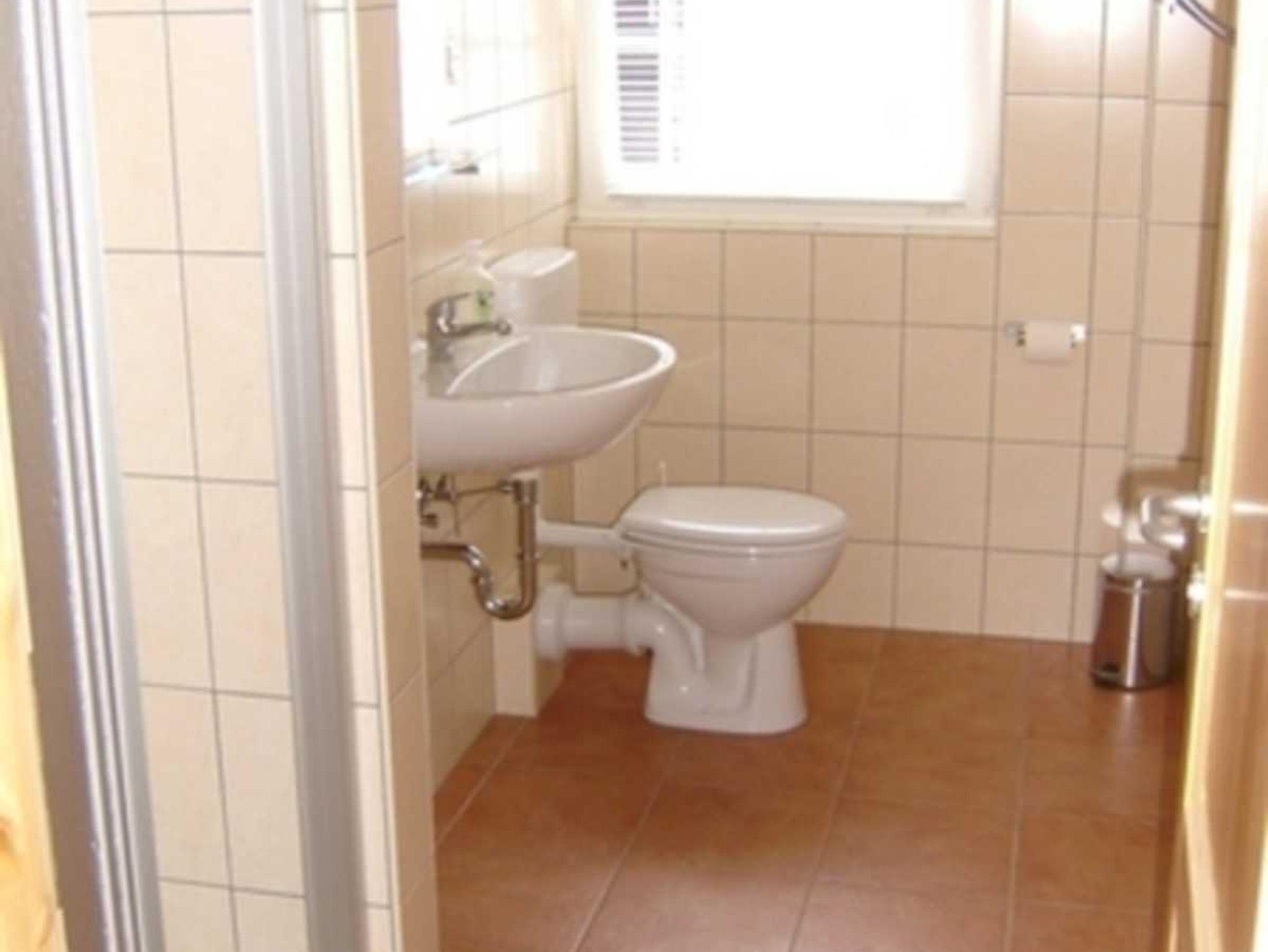 Toaster, Kaffeemaschine, Geschirr, Eßtisch für 6 Personen. Duschbad/WC (4,5 m²). Von der Wohnküche erreicht man den Balkon 1,5x5,0m zur Nordseite mit Blick auf den Binzer Kurpark.