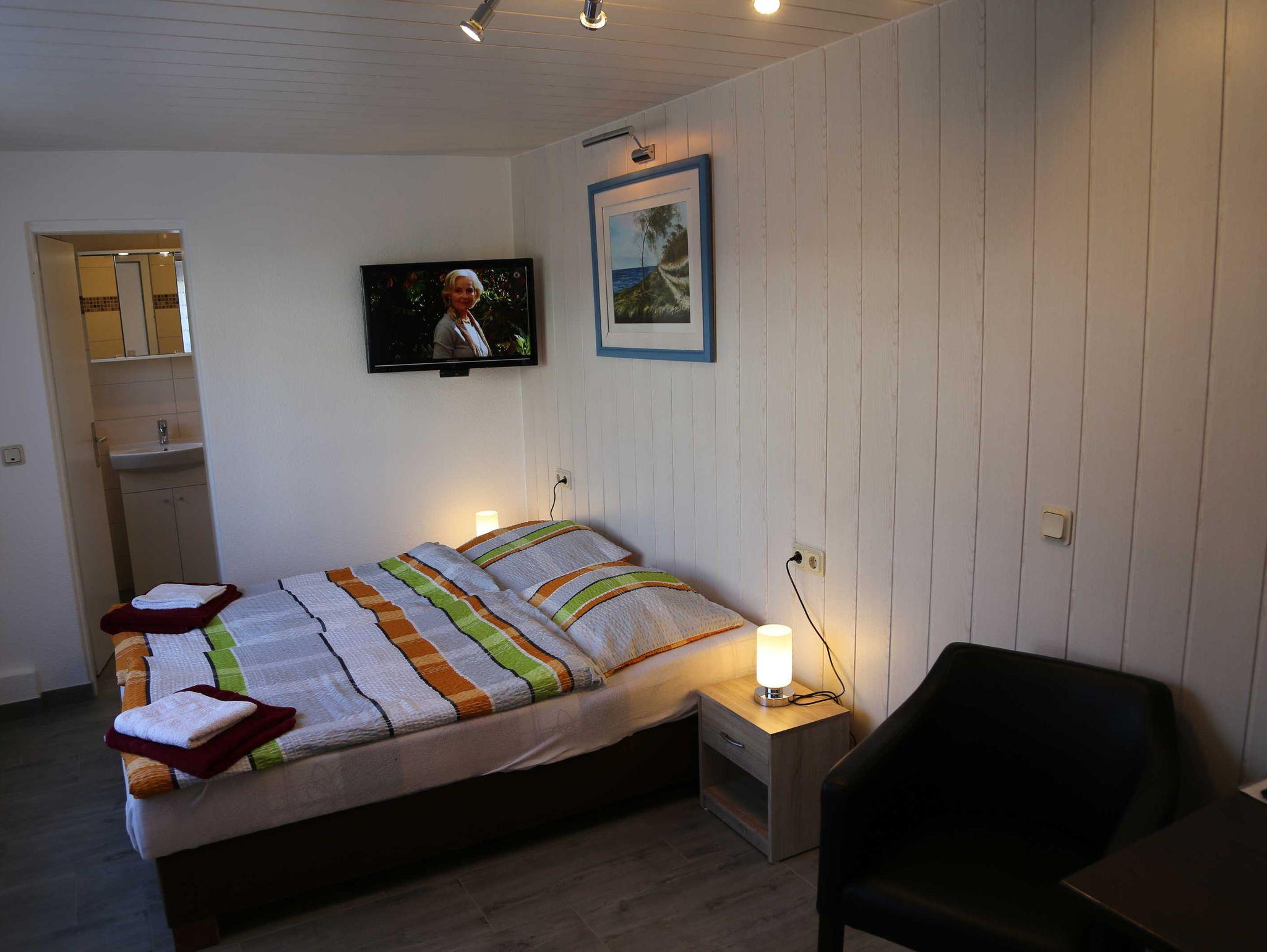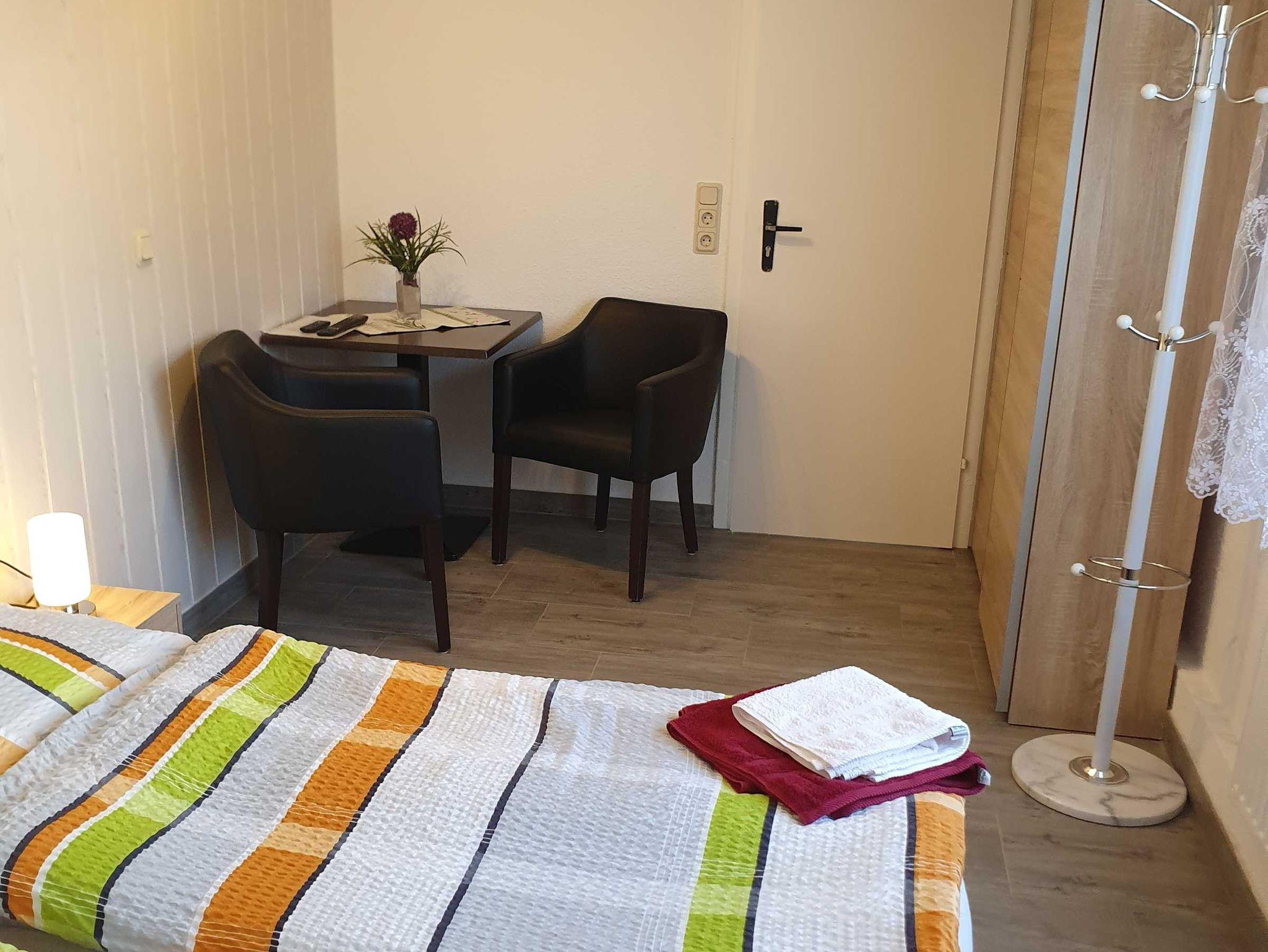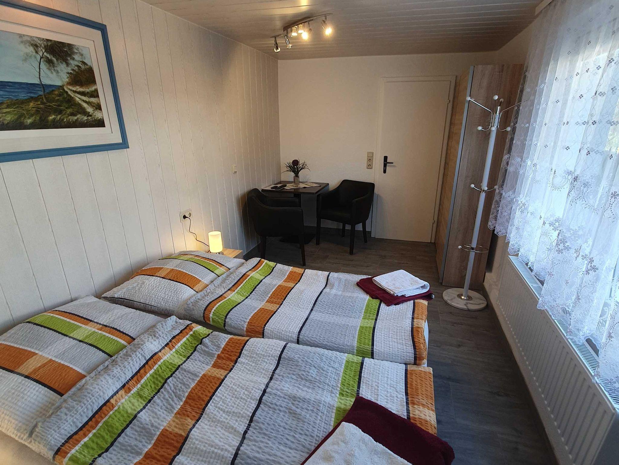 Ferienzimmer: Erdgeschoß,19 qm für 2 Personen, Zentralheizung, einfach/ zweckmäßig ausgestattet, Doppelliege, Nachttische, Kleiderschrank, Tisch mit 2 Stühlen, Sat/TV, Dusche/WC.