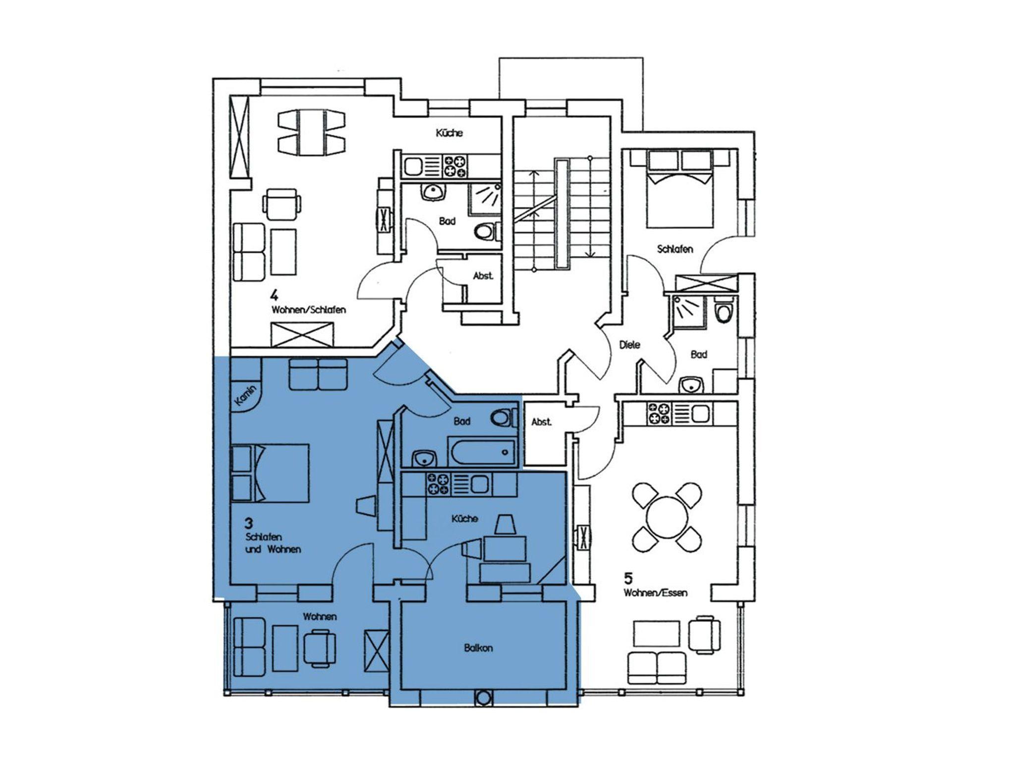Villa Eden Fewo 3, Balkon, Kamin, A.2, Apartment 3 / 2-Raum-Fewo, mit Balkon