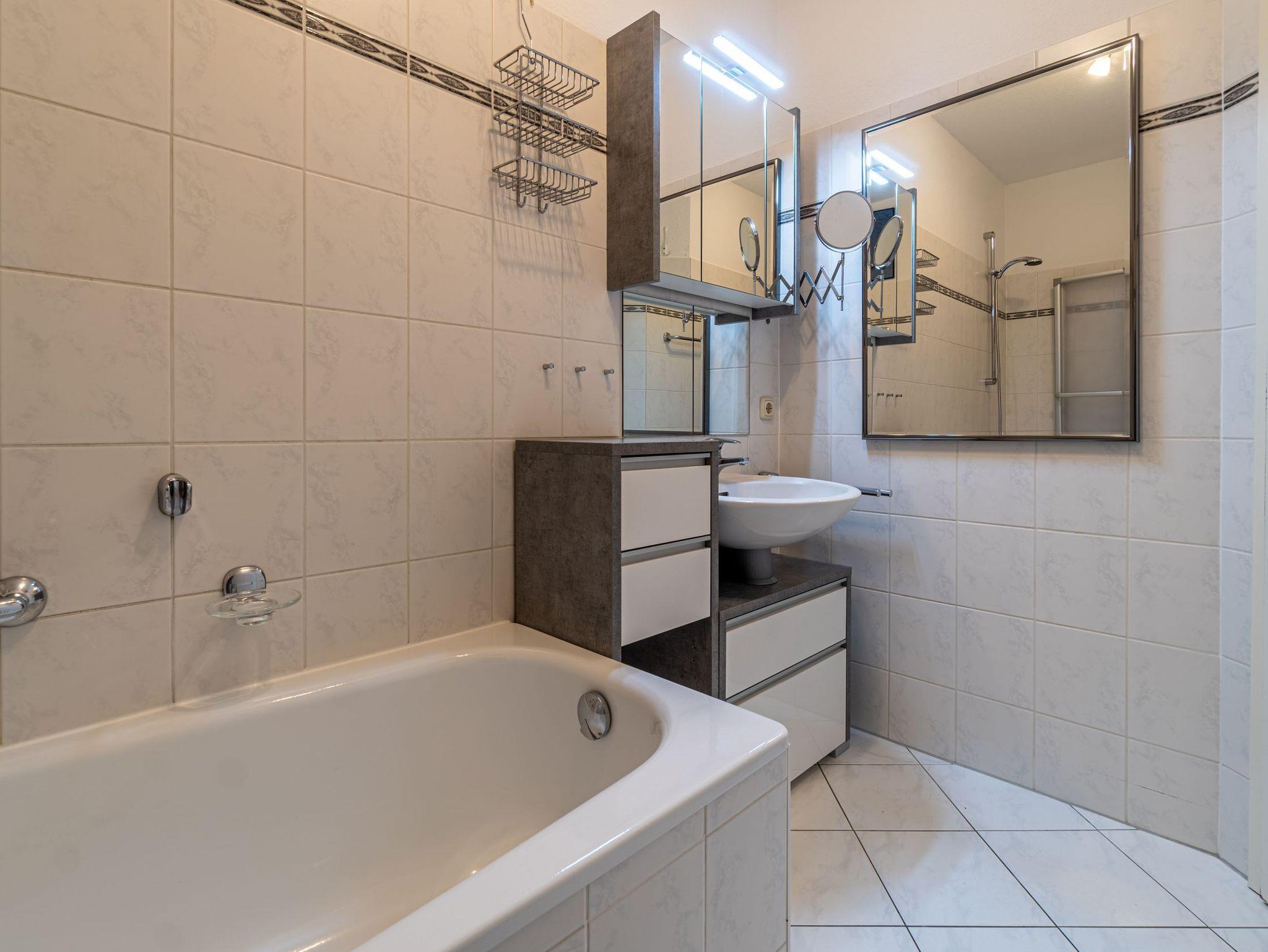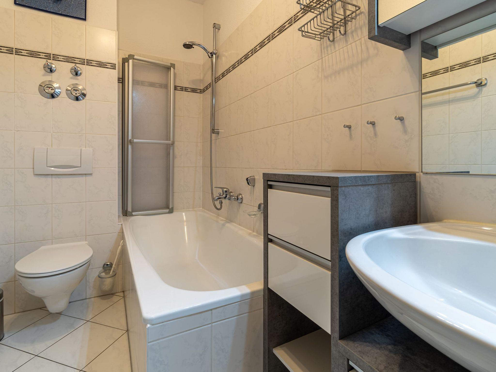 Das Badezimmer mit Badewanne lädt nach einem Tag am Meer zum Entspannen ein.