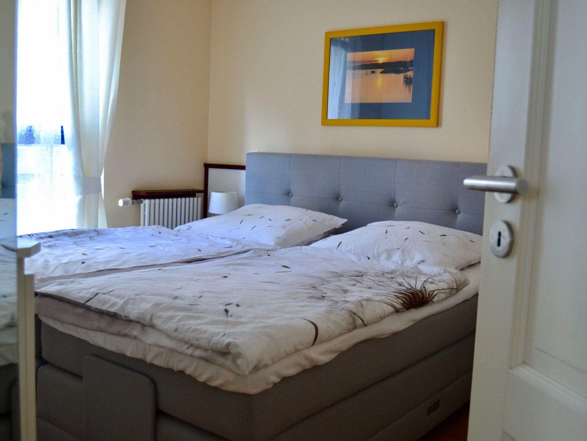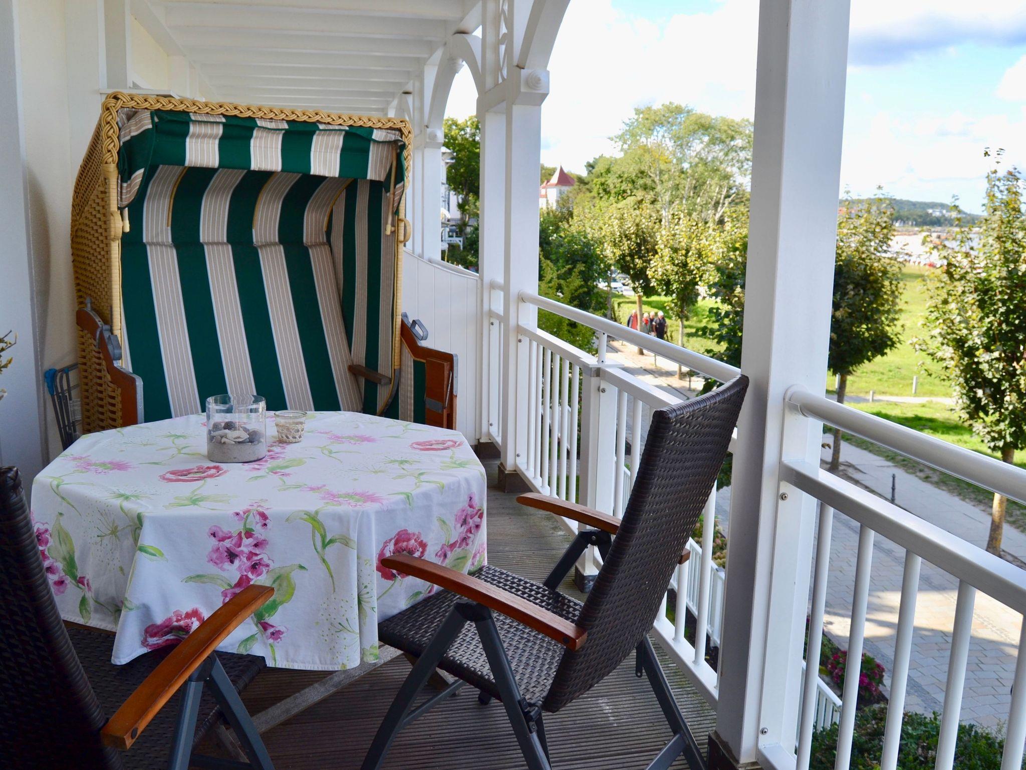 Das 3-Raum-Apartment befindet sich im 1. Obergeschoss und ist ca. 49 m² gross. Die Wohnung verfügt über einen möbilierten Balkon mit atemberaubenden Blick auf die Ostsee. Das Wohnzimmer verfügt über einen Flachbild-TV, Stereoanlage, DVD-Player sowie einer großen bequemen Sitzlandschaft. Die Küchenzeile ist ausgestattet mit Geschirrspüler, Mikrowelle, Kaffeeautomat und weiteren nützlichen Geräten wie Kaffeemaschine, Toaster, Wasserkocher etc.. Das Schlafzimmer verfügt über ein Doppelbett, Kleiderschrank und kleinem Flachbild-TV. Im zweiten Schlafzimmer befindet sich ein Doppelstockbett mit Kleiderschrank. Badezimmer mit Eckdusche, WC und Fön. In den Sommermonaten steht Ihnen ein Strandkorb zur Verfügung.Das Apartment ist eine nichtraucher- und haustierfreie Wohnung daher allergikergerecht. Ein PKW-Stellplatz gehört kostenfrei zum Apartment dazu. W-Lan ist ebenfalls vorhanden.