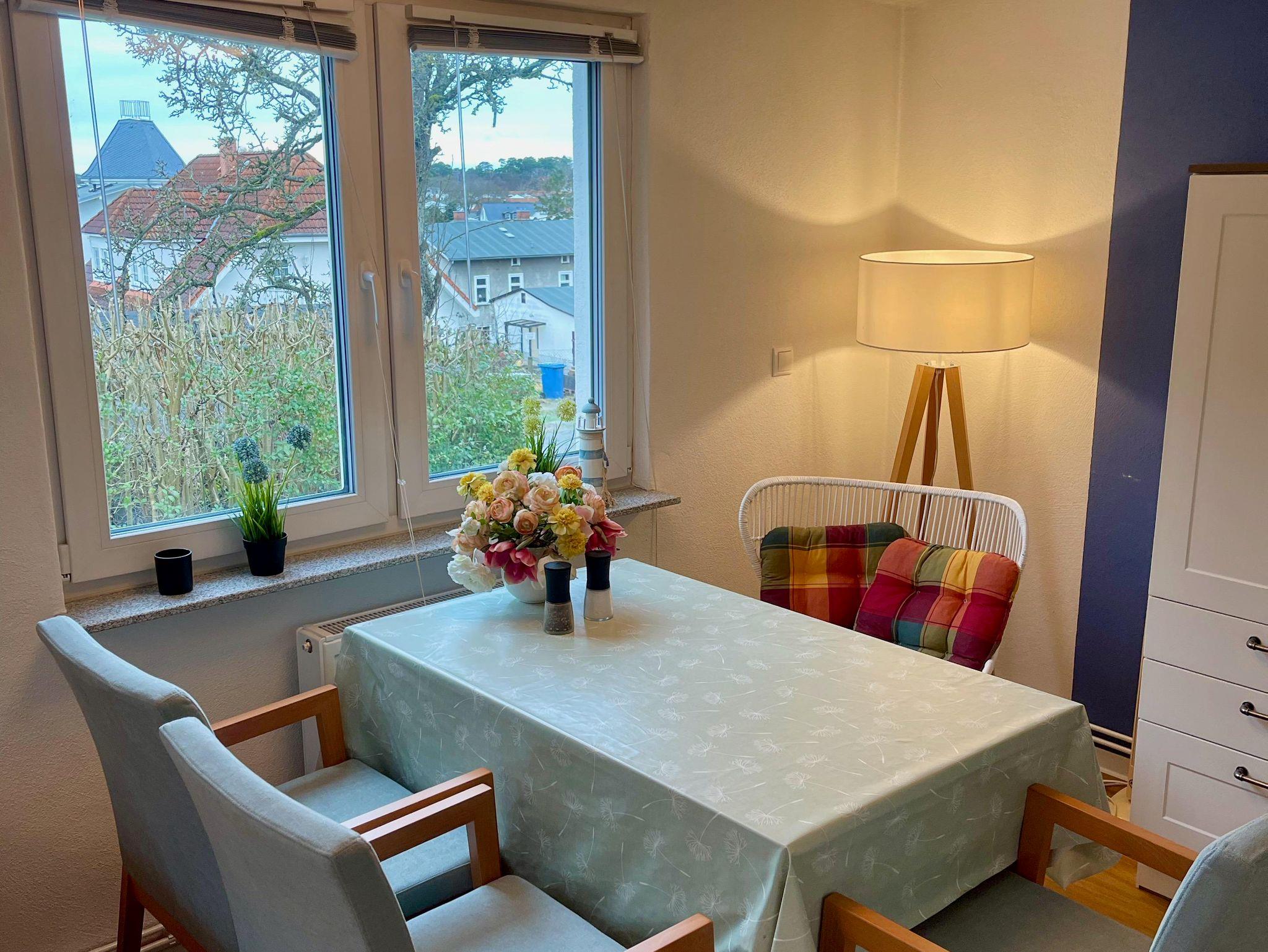 Ruhige Ferienwohnung in Binz mit Sonnenterrasse, Garten und moderner Ausstattung für erholsamen Urlaub.
