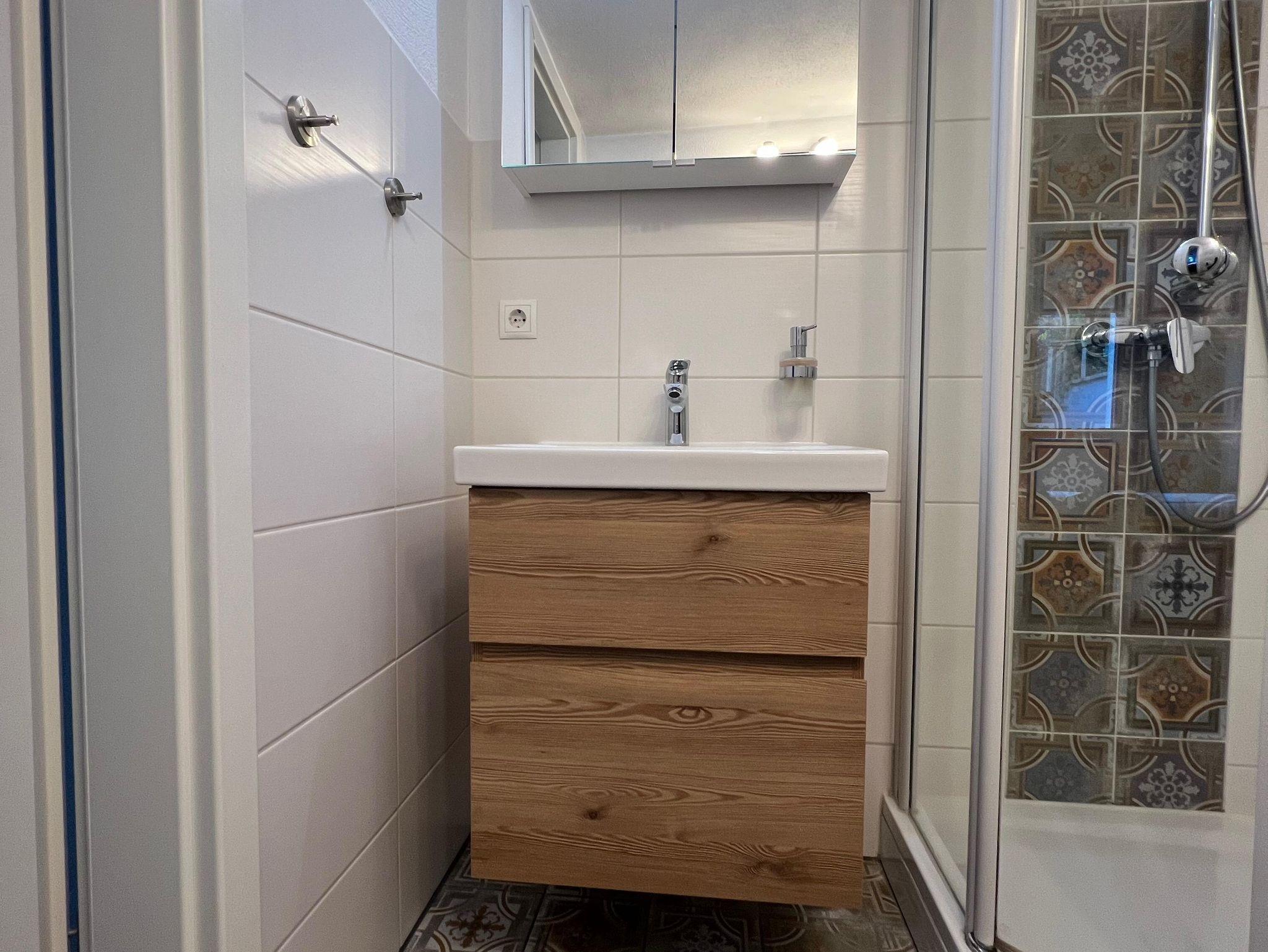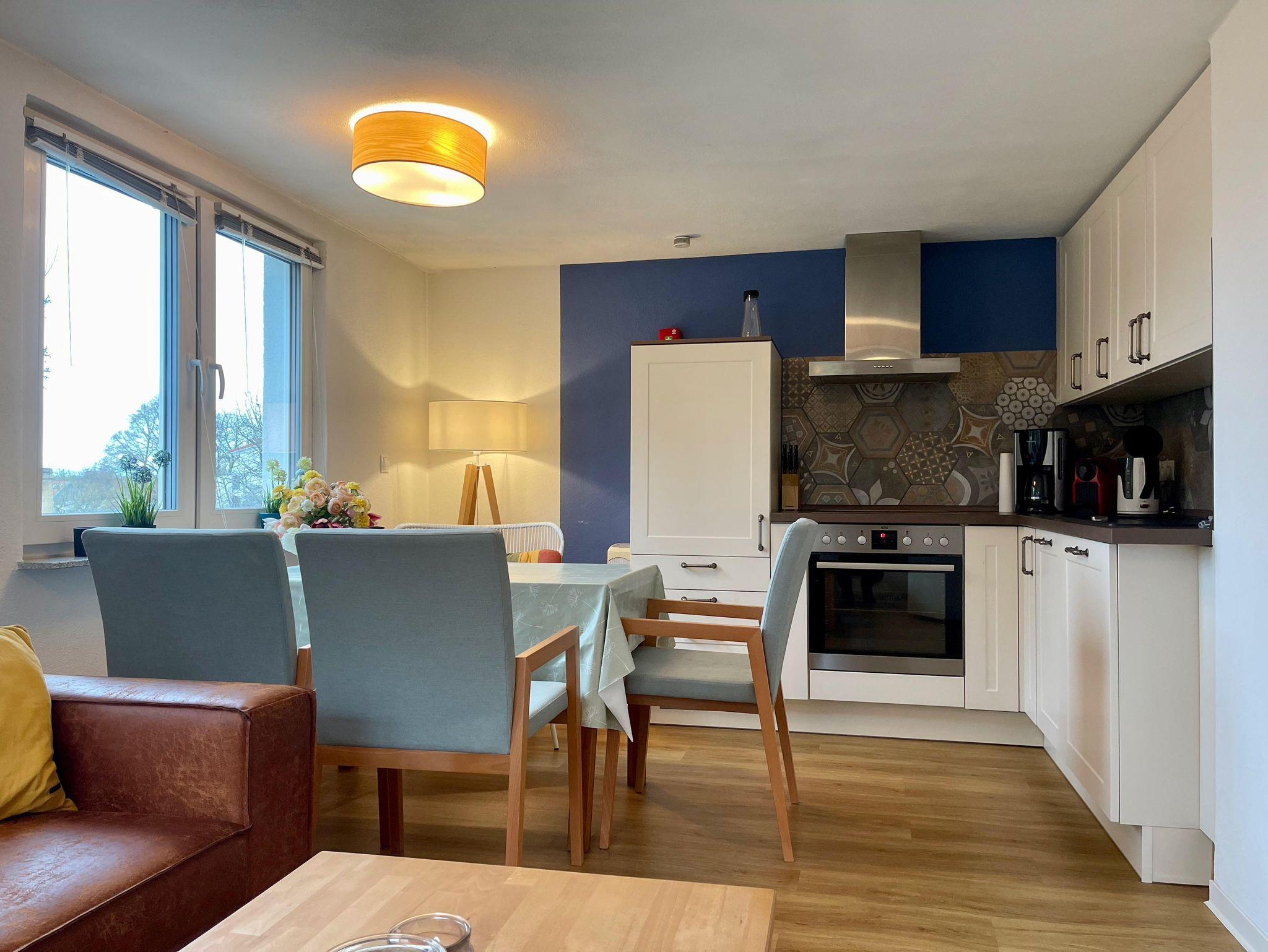 Diese moderne und gemütliche Ferienwohnung ist der perfekte Rückzugsort für Familien oder Alleinreisende, die eine ruhige Auszeit suchen. Mit einem stilvoll eingerichteten Schlafzimmer und einem komfortablen Doppelbett garantiert die Unterkunft erholsame Nächte. Der offene Wohnbereich mit einem bequemen Sofa und Flachbildfernseher bietet Platz zum Entspannen, während die gut ausgestattete Küche ideal für das Zubereiten eigener Mahlzeiten ist. Das Badezimmer verfügt über eine großzügige Dusche. Genießen Sie frische Luft auf der privaten Terrasse, ideal für entspannte Stunden im Freien. Die Wohnung bietet zudem kostenfreies WLAN, eine Waschmaschine sowie einen Parkplatz. Ob für einen kurzen oder längeren Aufenthalt, diese Ferienwohnung bietet alle Annehmlichkeiten, die für einen komfortablen und erholsamen Urlaub nötig sind.