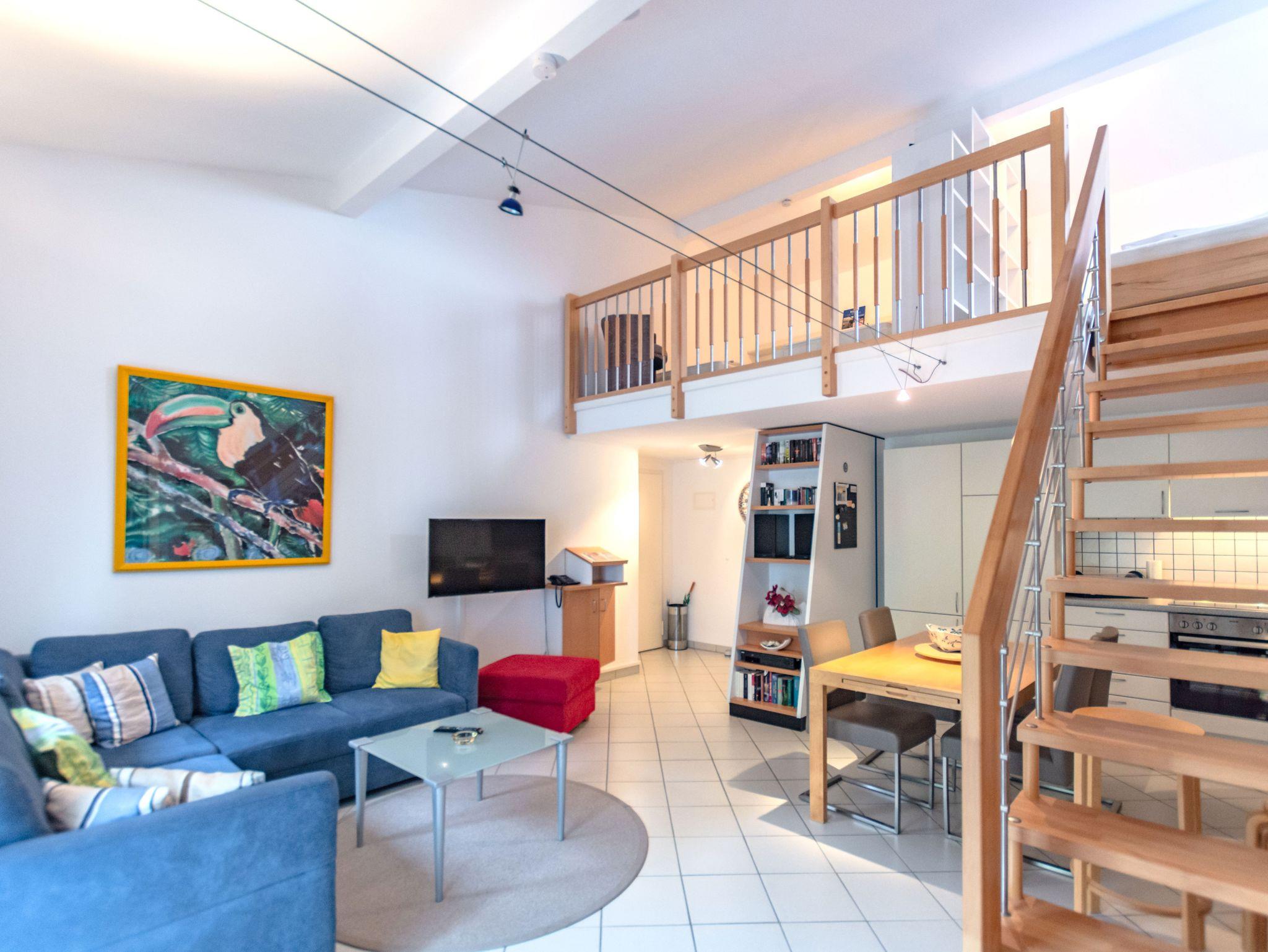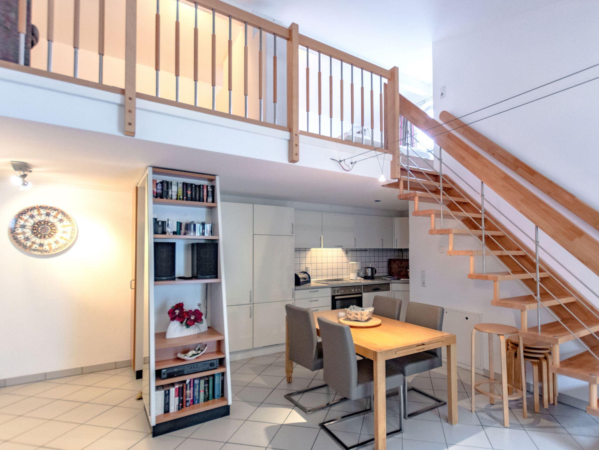 Die freundliche und geschmackvoll eingerichtete Galeriewohnung befindet sich im Dachgeschoss und ist 55 m² groß.