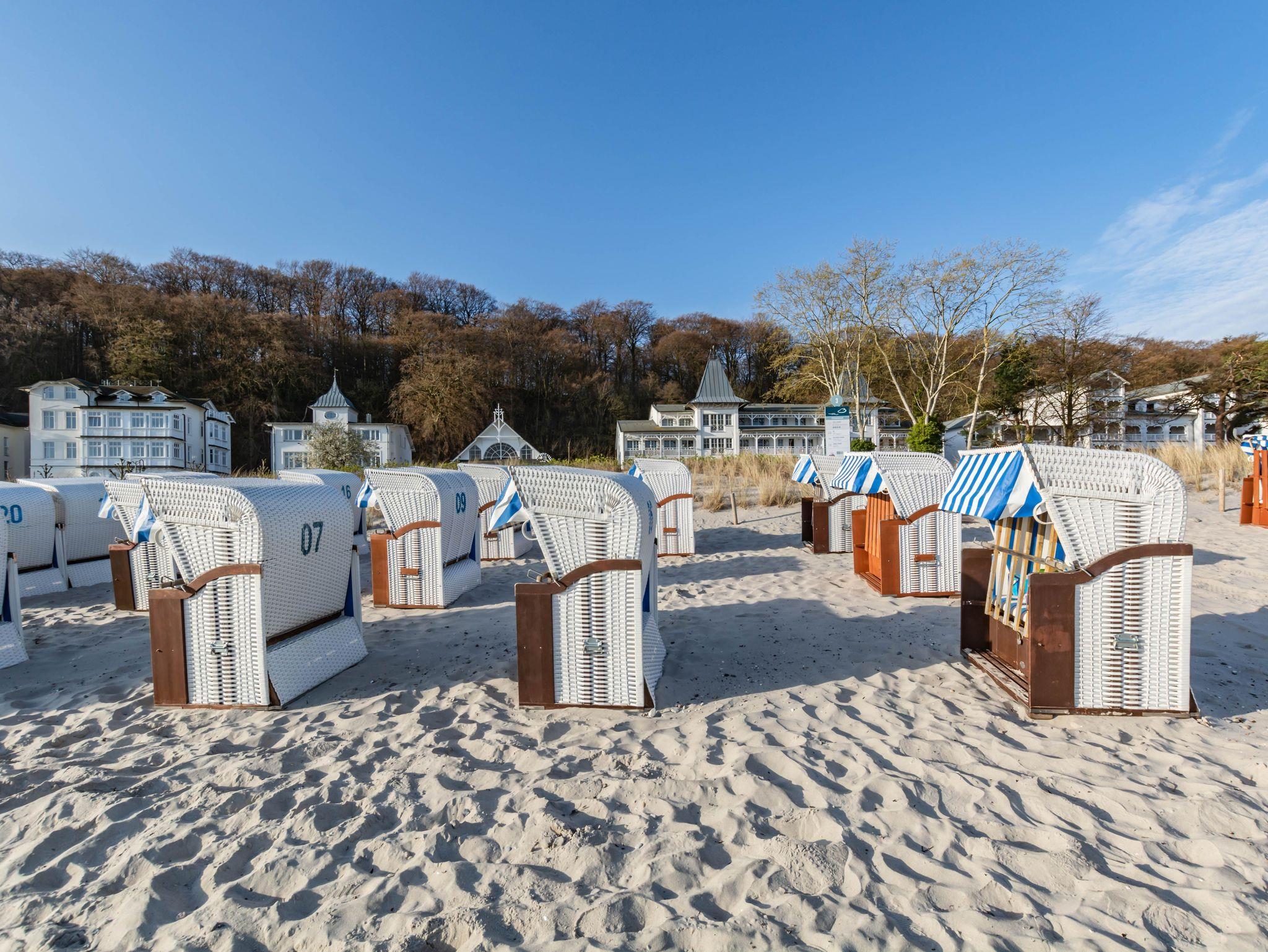 Stilvolle Ferienwohnung im Seeschloss Binz mit Balkon, Meerblick und direkter Strandlage.