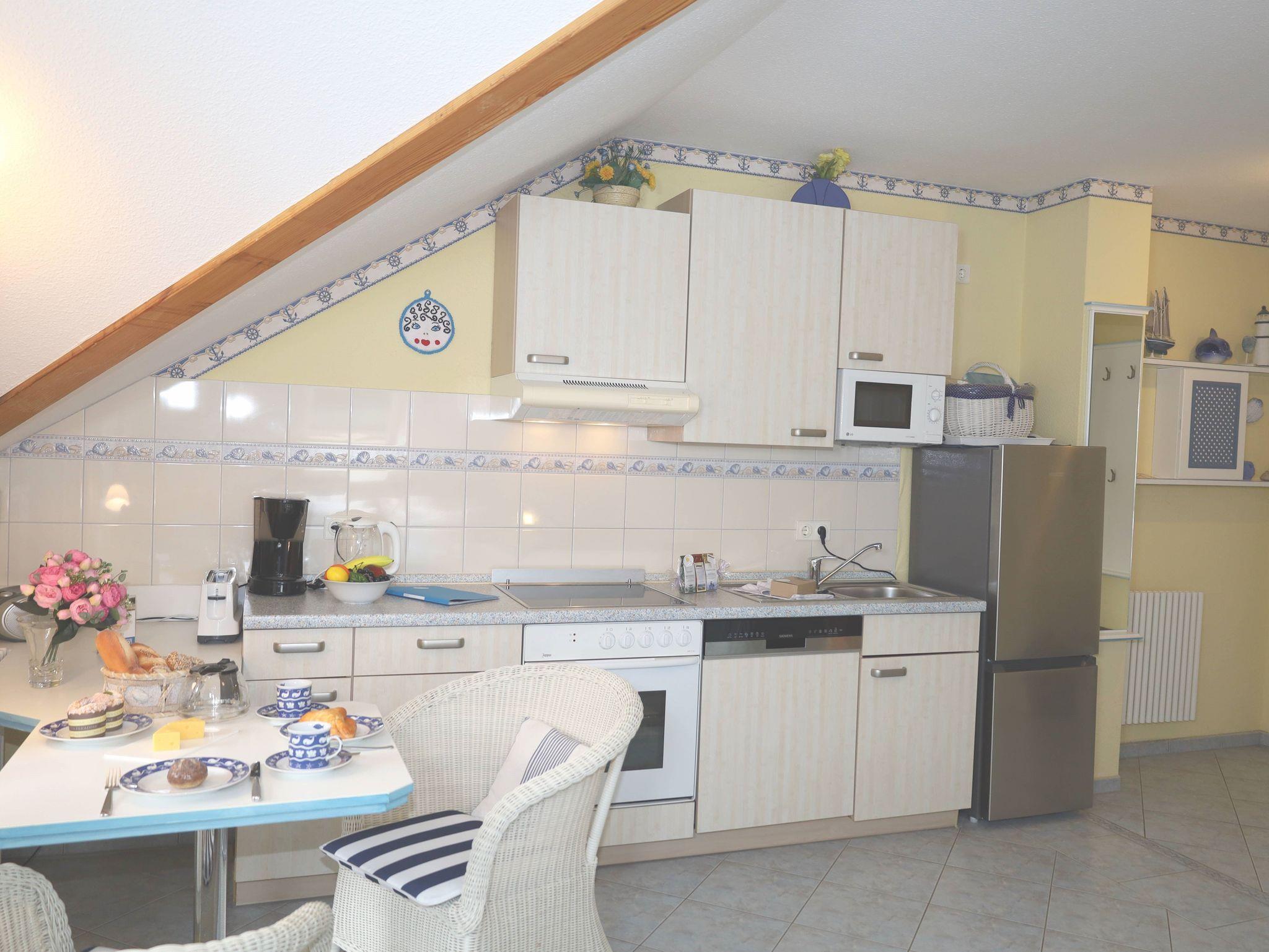 Die Wohnung verfügtüber einen Wohn-Schlafraum mit TV, gemütlicher Sitzgruppe, Doppelbett und Balkon mit seitlichem Ostseeblick. Eine komplett ausgestattete Küchenzeile mit Geschirrspüler, Ceran-Back-Herd, Mikrowelle und weiteren nützlichen Geräten wie Kaffeemaschine, Toaster, Wasserkocher etc. ist ebenfalls vorhanden.