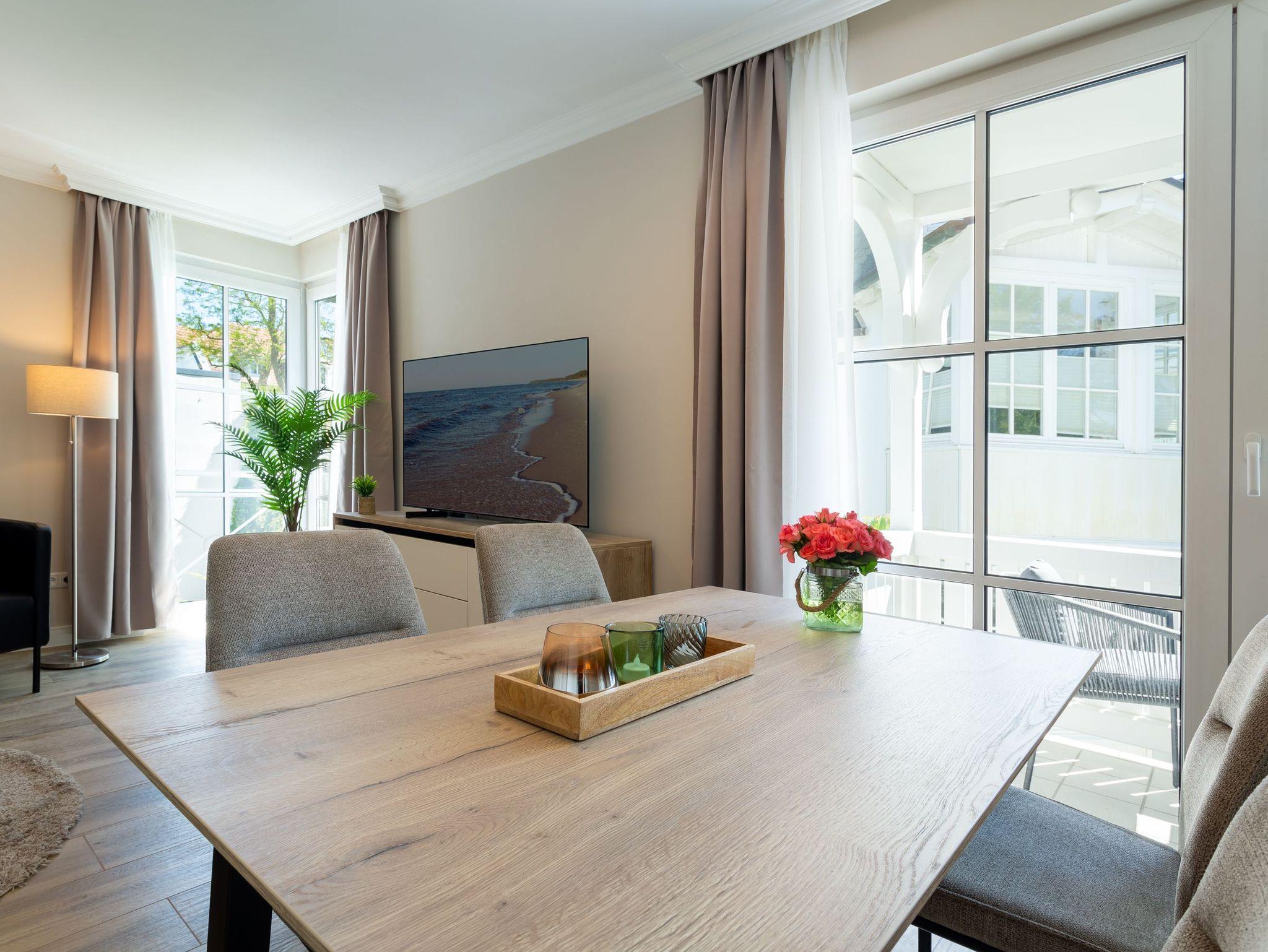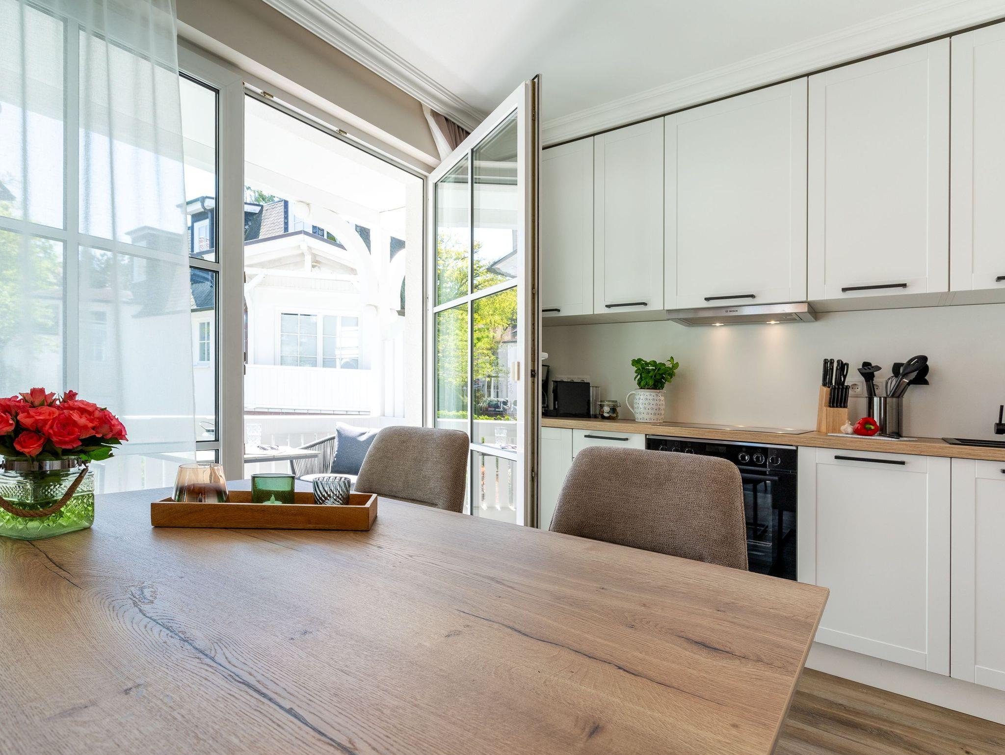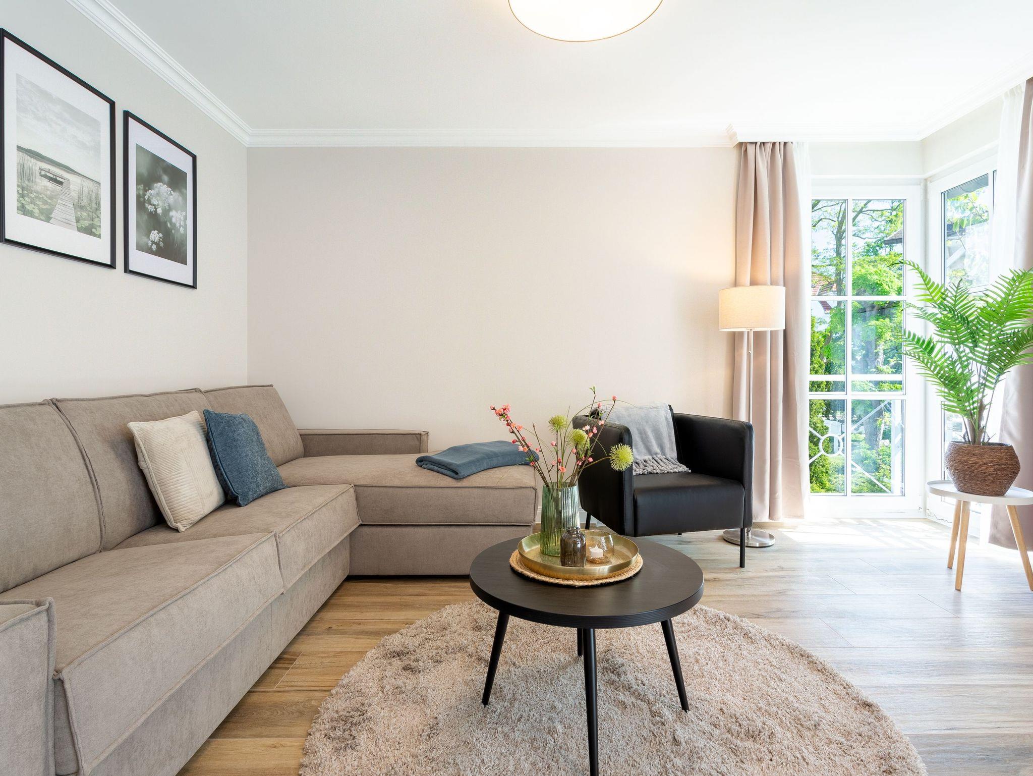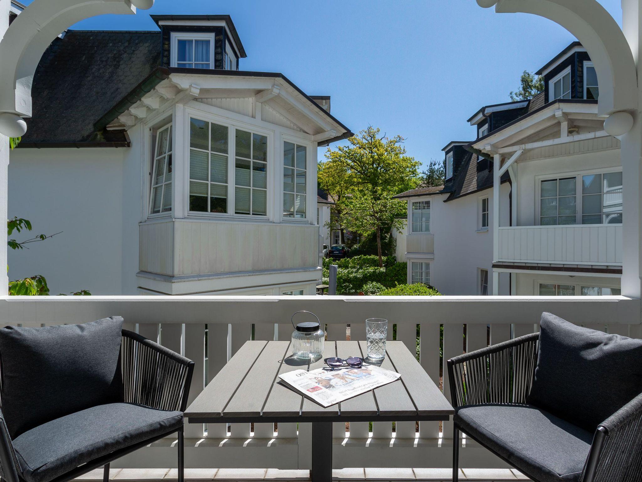 Modernes Apartment Villa Vesta in Binz, nahe Strand, mit Balkon und Strandkorb inklusive.