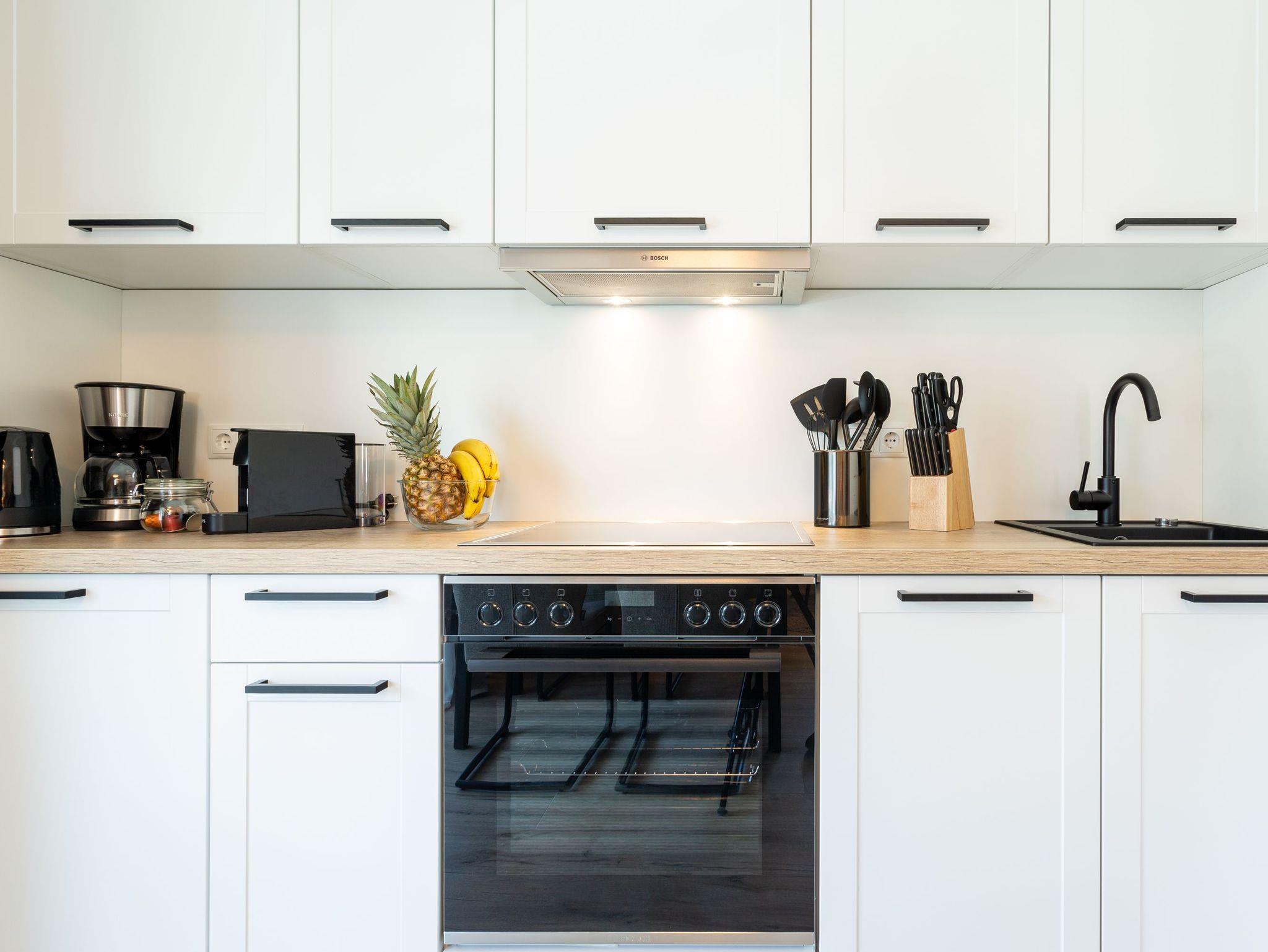 Die Küche ist mit Bosch Markengeräten versehen und voll ausgestattet - hier wird die Selbstverpflegung zum Kinderspiel.