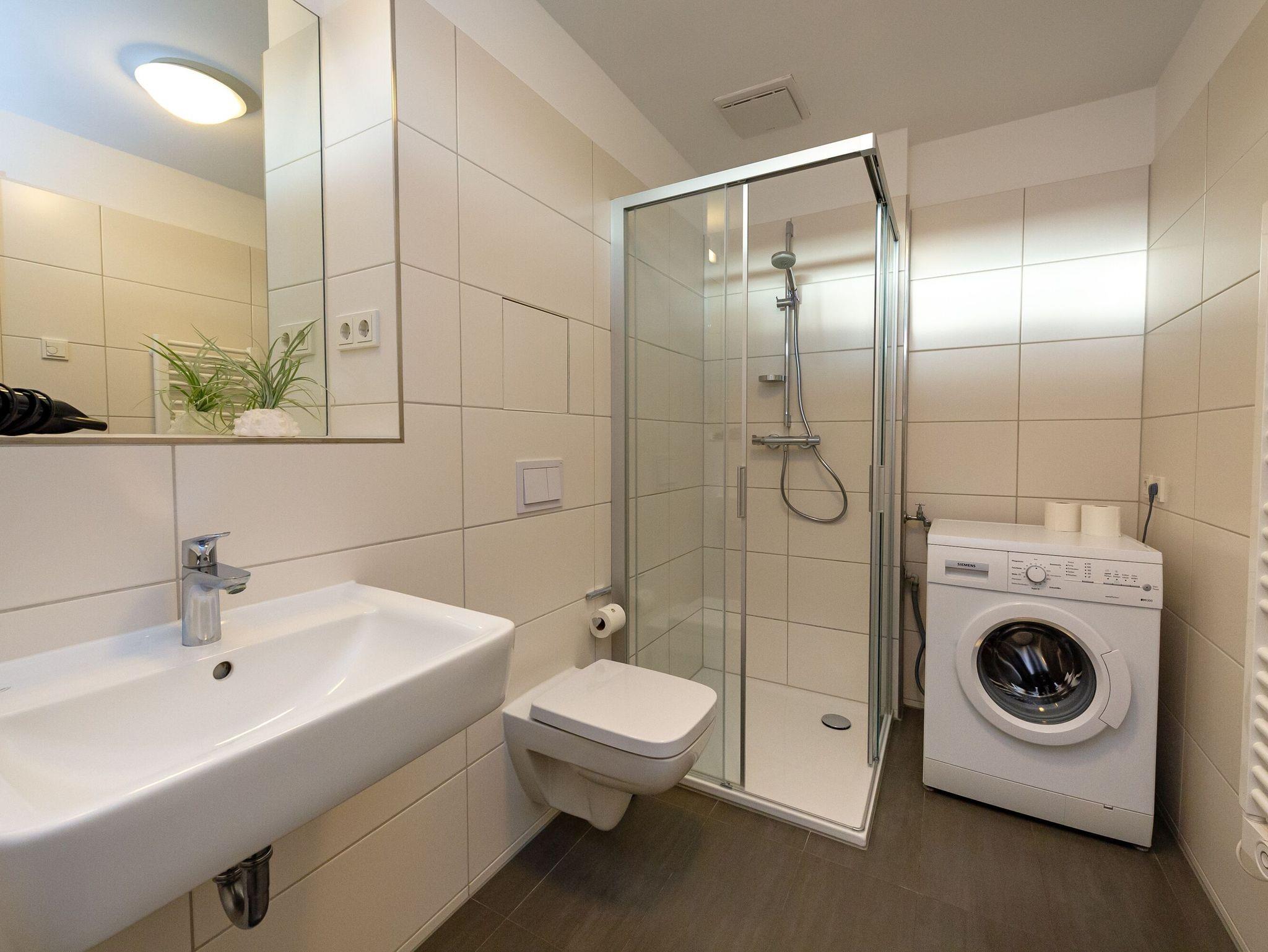 Das Schlafzimmer ist mit einem bequemen Doppelbett (1,80 x 2,00 m) sowie einen weiteren Fernseher ausgestattet. Im modern gefliesten Badezimmer genießen Sie den Komfort einer bodengleichen Dusche und können die wohnungseigene Waschmaschine kostenfrei nutzen. Ein Bügelbrett und ein Bügeleisen sind in Ihrer Fewo ebenfalls vorhanden.