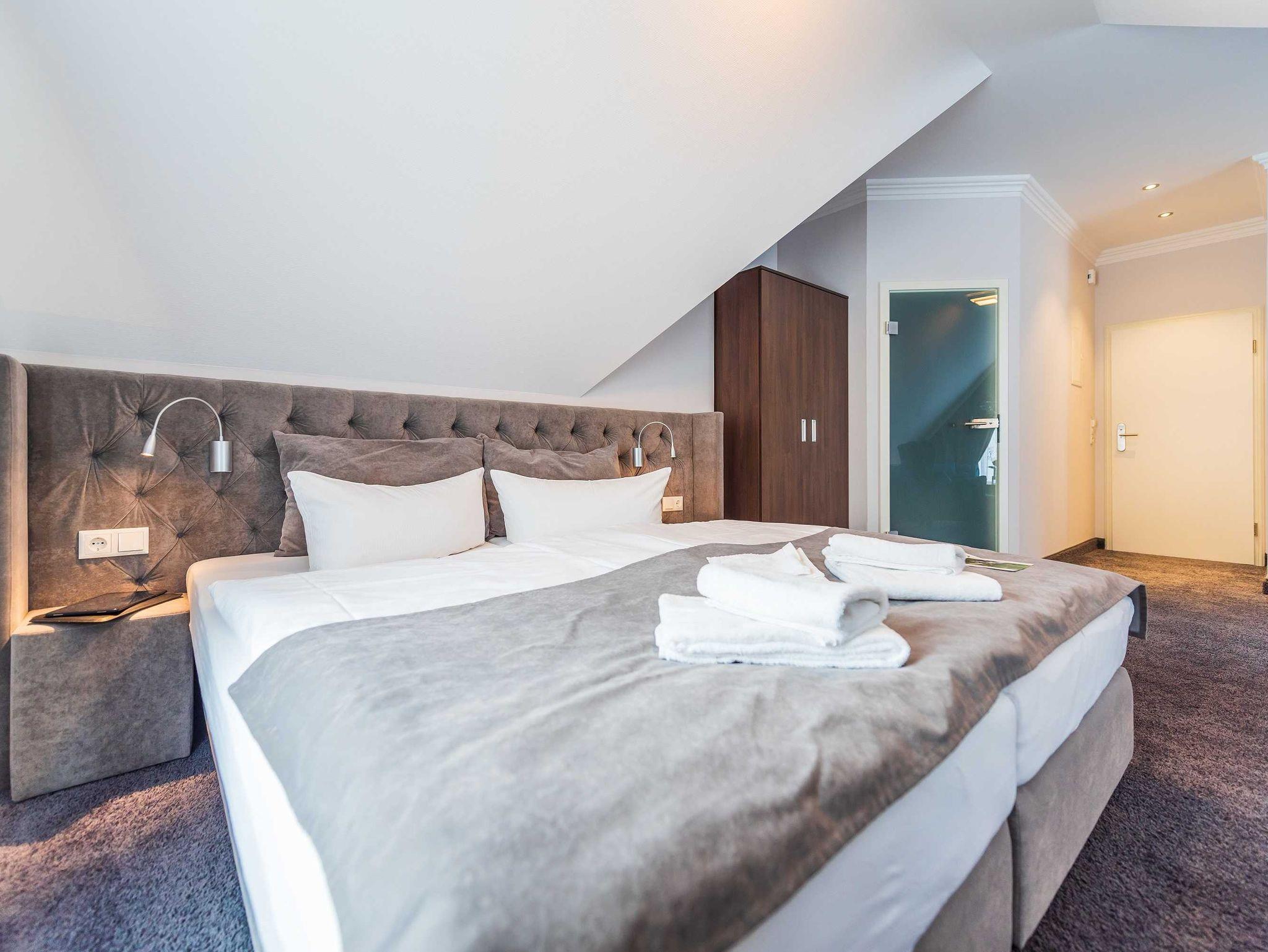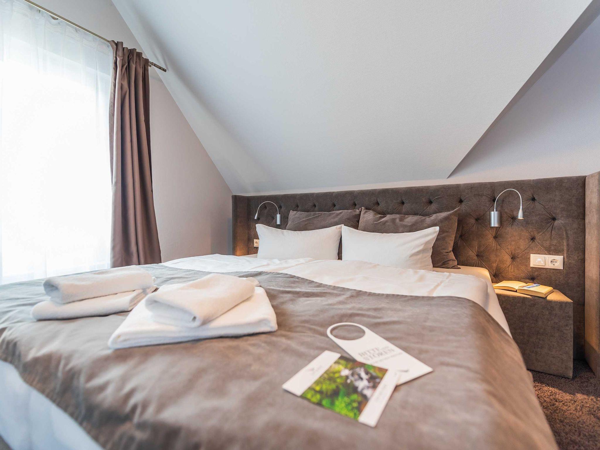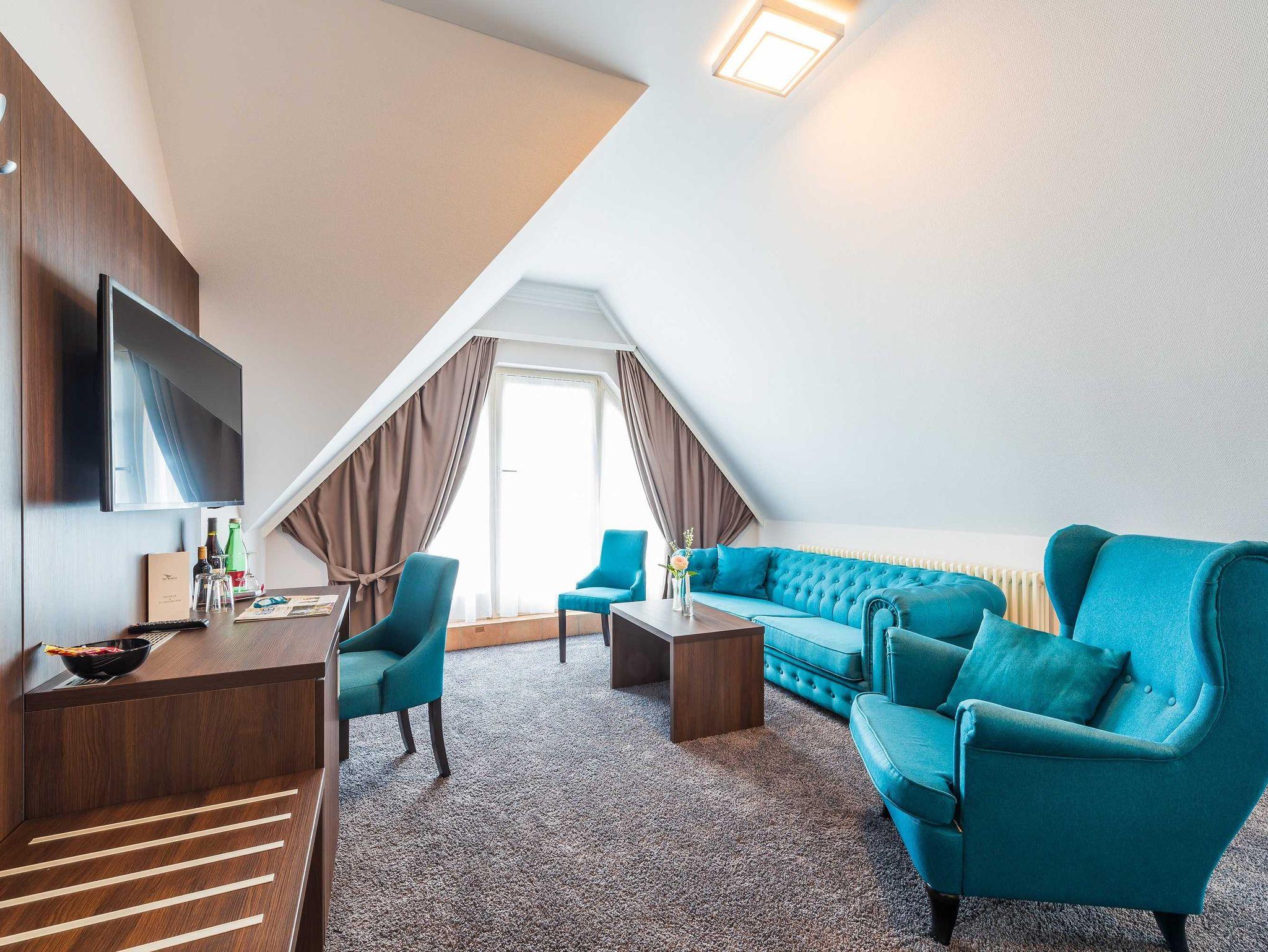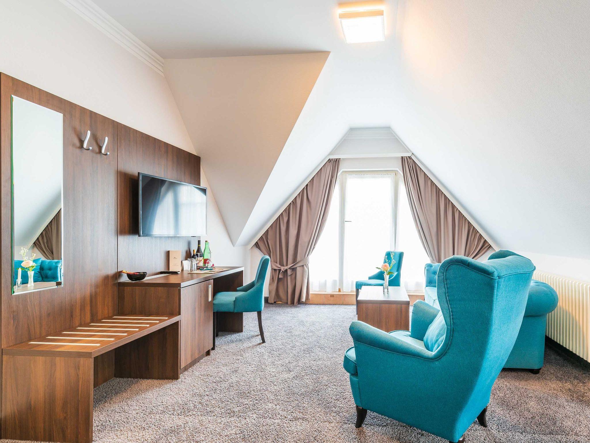 Alle unsere Zimmer sind liebevoll eingerichtet und bestechen mit einmaligem Komfort. Die modernen Bäder sind kleine Wohlfühl-Oasen mit viel Raum zur freien Entfaltung, alle Räumlichkeiten sind mit TV, Telefon, Zimmersafe und einer Minibar ausgestattet. Unsere mondänen Suiten verfügen außerdem über einen vollausgestatteten Küchenbereich sowie eine einladende Badewanne ? zum Träumen und Genießen. Besonders eindrucksvoll: Aus vielen unserer Doppelzimmer und Juniorsuiten haben Sie einen unvergesslichen Panoramablick auf die Ostsee.