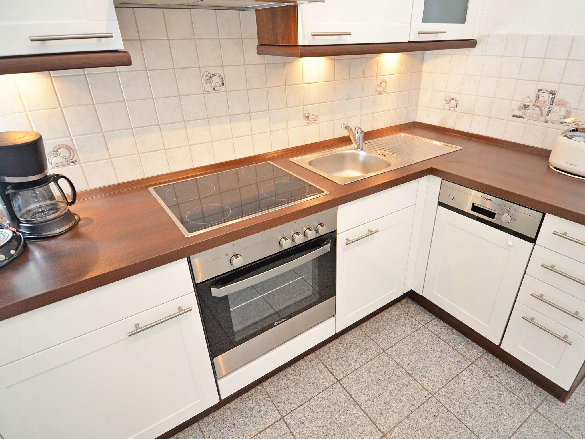 Die gesamte Nichtraucherwohnung ist mit Bodenfliesen und Laminat ausgestattet.