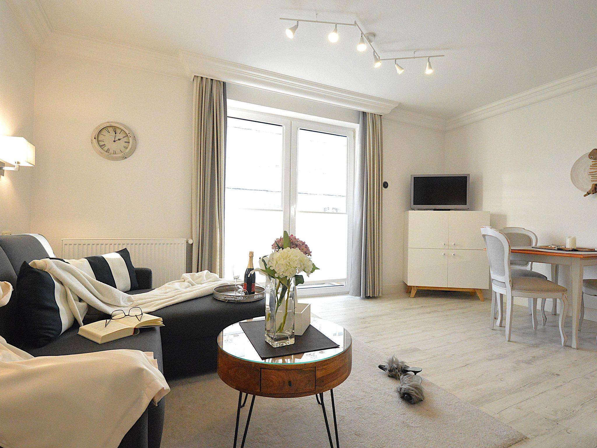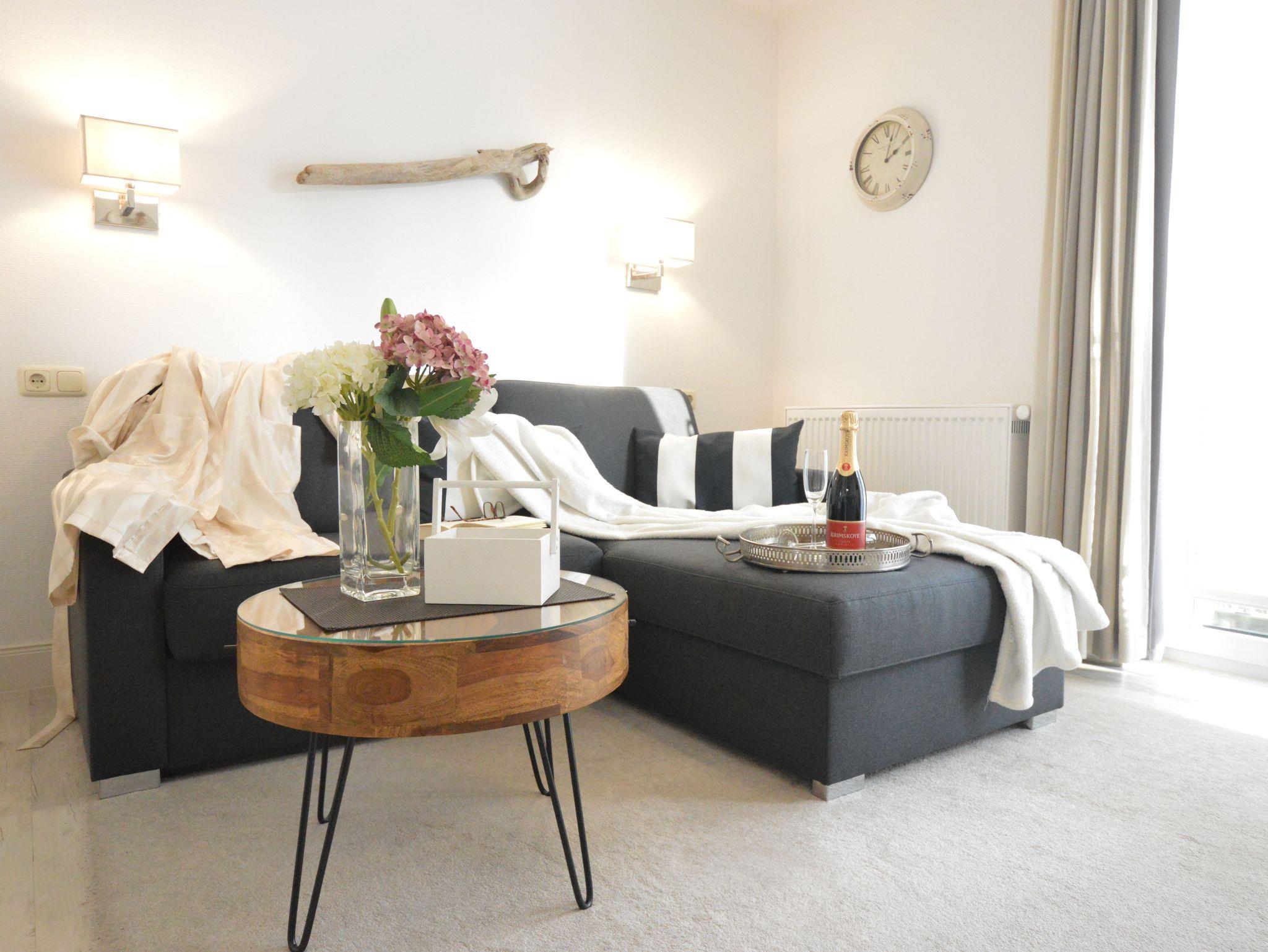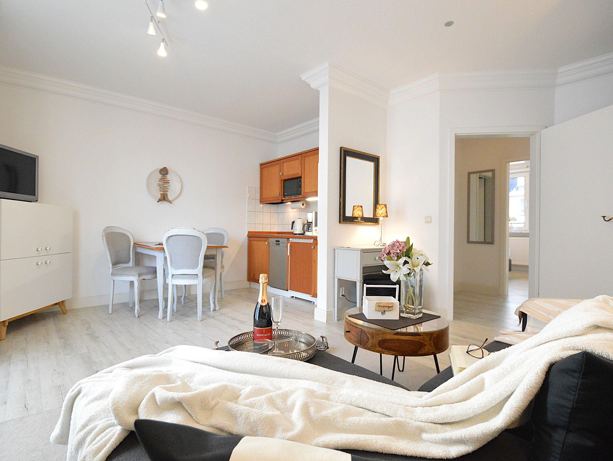 Das Apartment in Hochparterre mit 45m² befindet sich in der Apartment-Villa Steinfurth, welche direkt am Meer liegt und bietet Platz für 2 Personen. Vom Wohnraum aus erreicht man einen möblierten Balkon in Südostausrichtung. Der helle, große Wohnbereich mit Küchenzeile, Essplatz und TV ist gemütlich und modern möbliert. Die Küchenzeile ist ausgestattet mit 4-Platten-Cerankochfeld, Mikrowelle, Geschirrspüler, Kühlschrank, Kaffeemaschine, Wasserkocher und Toaster. Das Schlafzimmer verfügt über ein Doppellbett mit einer Liegefläche von 180 x 200 cm. Ein Duschbad mit WC und Haartrockner ist ebenfalls vorhanden.