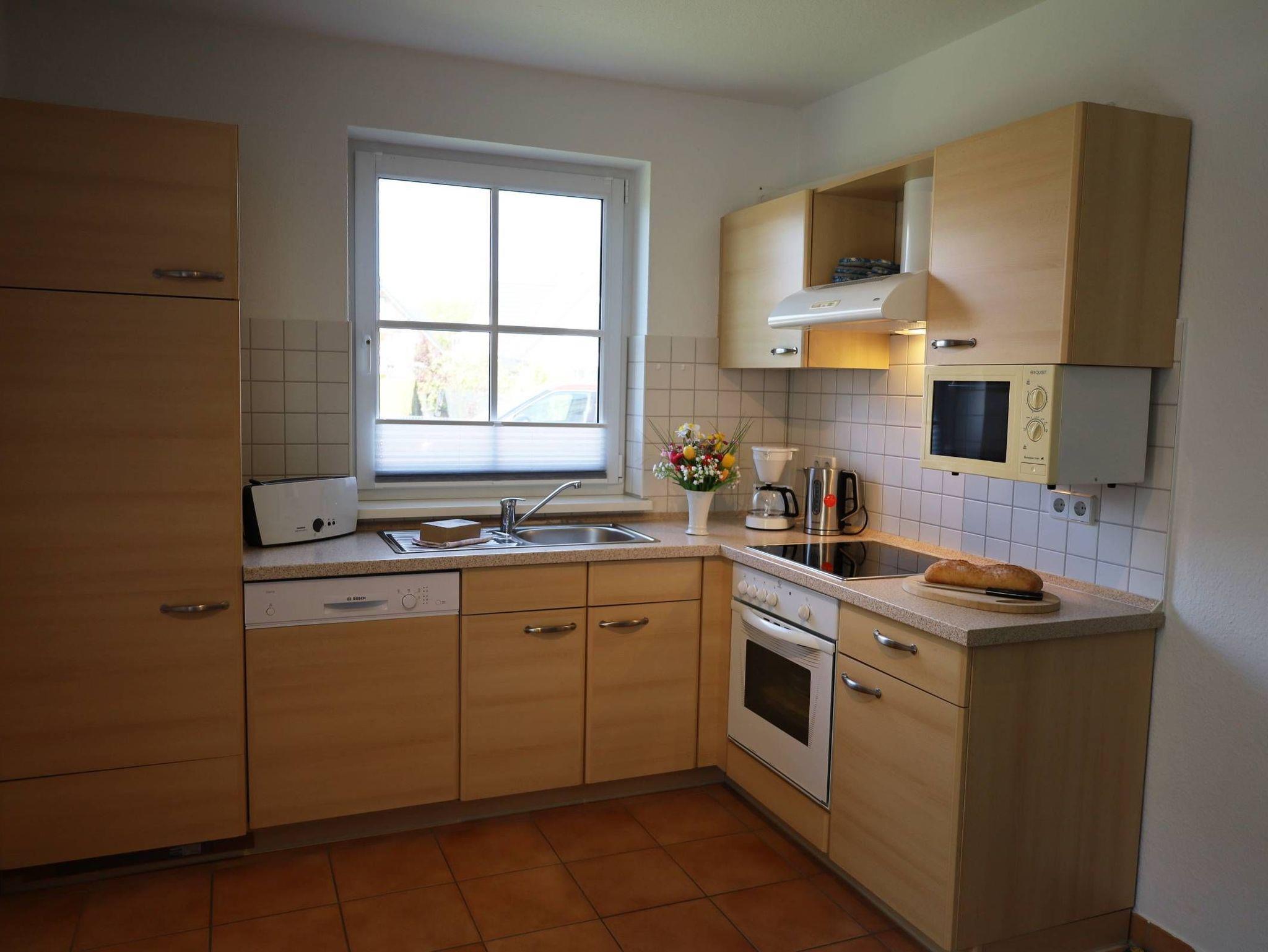 Eine komplett ausgestattete Küchenzeile mit Geschirrspüler, Ceran-Back-Herd, Mikrowelle, Kühlschrank mit Gefrierfach und weiteren nützlichen Geräten wie Kaffeemaschine, Toaster, Wasserkocher etc. steht Ihnen zur Verfügung.