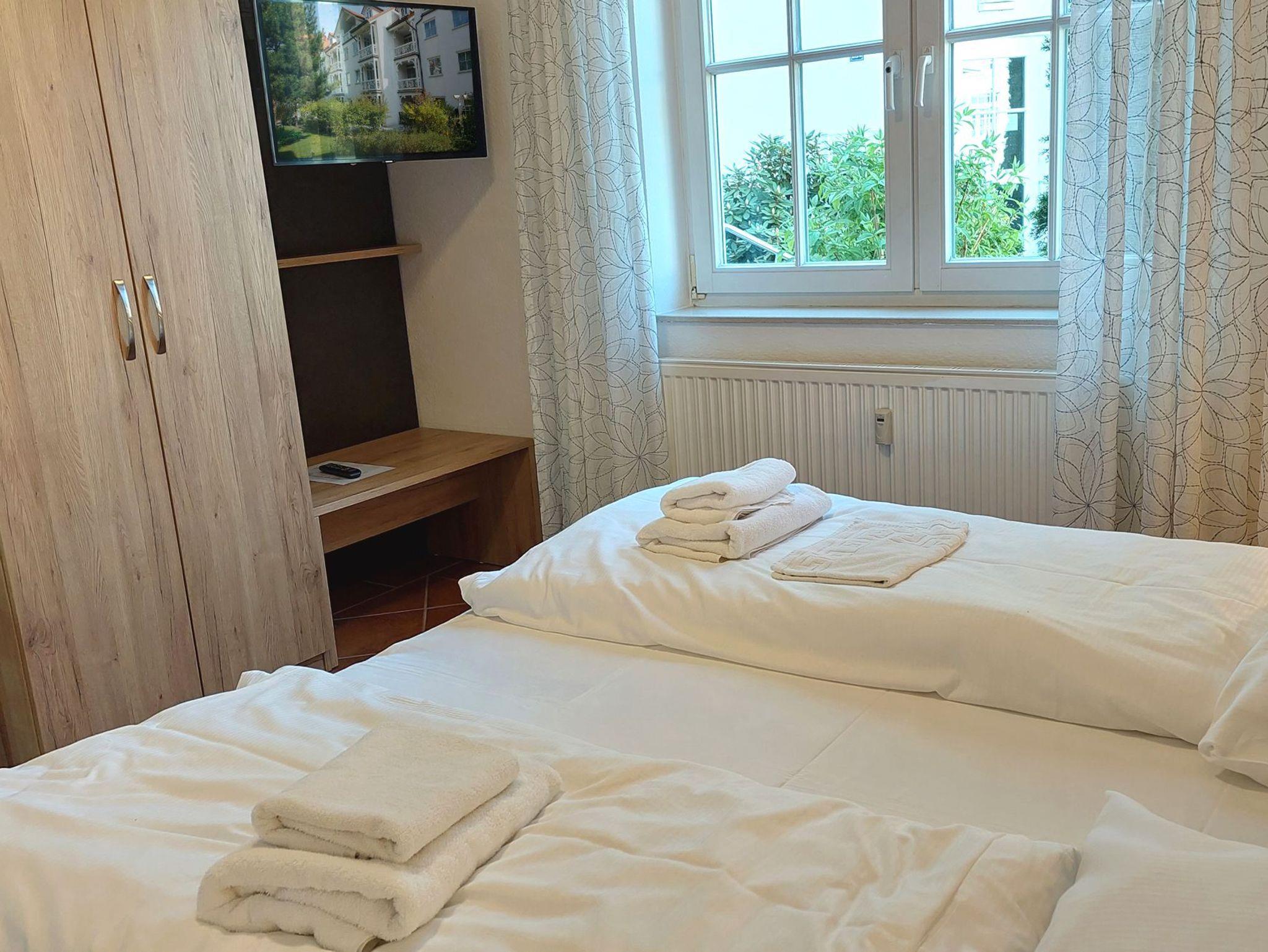 Helle 3-Zimmerwohnung in Binz mit Terrasse, WLAN, zwei Bädern und Parkplatz in zentraler Lage nahe Strand.