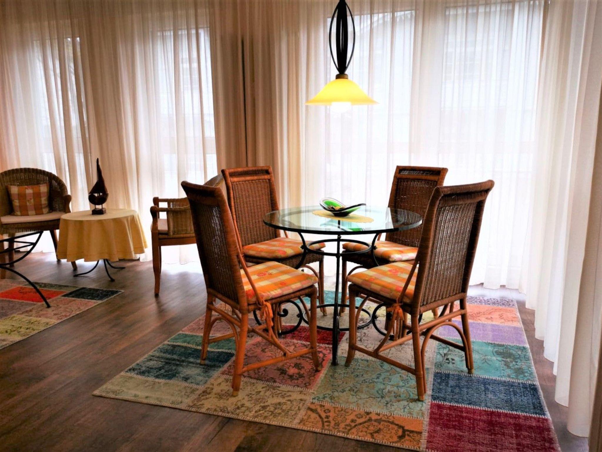 In der Villa befinden sich mehrere hochwertige Ferienwohnungen, die sich perfekt für Paare, kleine Familien oder Alleinreisende eignen. Ein Tiefgaragenstellplatz gehört zu jeder Wohnung und befindet sich direkt unter dem Haus bequem, wettergeschützt und kostenfrei. Für Fahrräder gibt es einen separaten Abstellraum, ebenso wie gemeinschaftlich nutzbare Waschmaschine und Trockner (Münzbetrieb).
