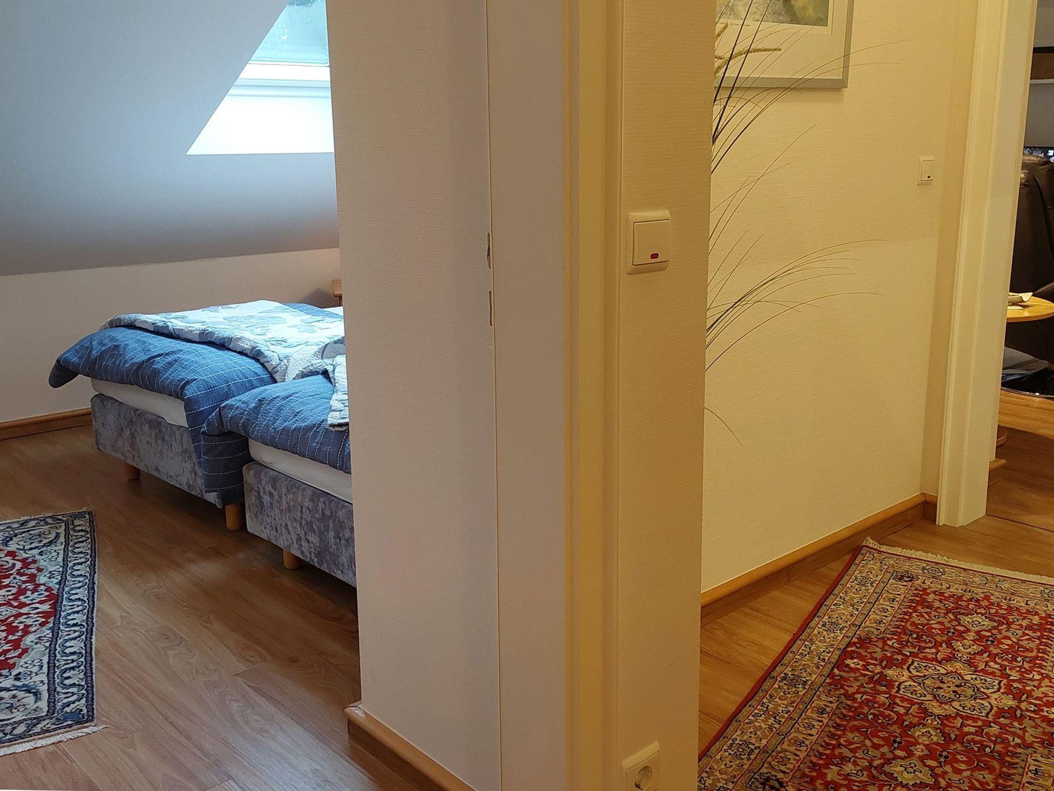 Sie befindet sich im 2. Obergeschoss (Endetage) und verfügt über einen großen überdachten Südbalkon, der zum Verweilen einlädt. Dieser ist ausgestattet mit Tisch, Balkonstühlen, Liegestuhl und Sonnenschirm.