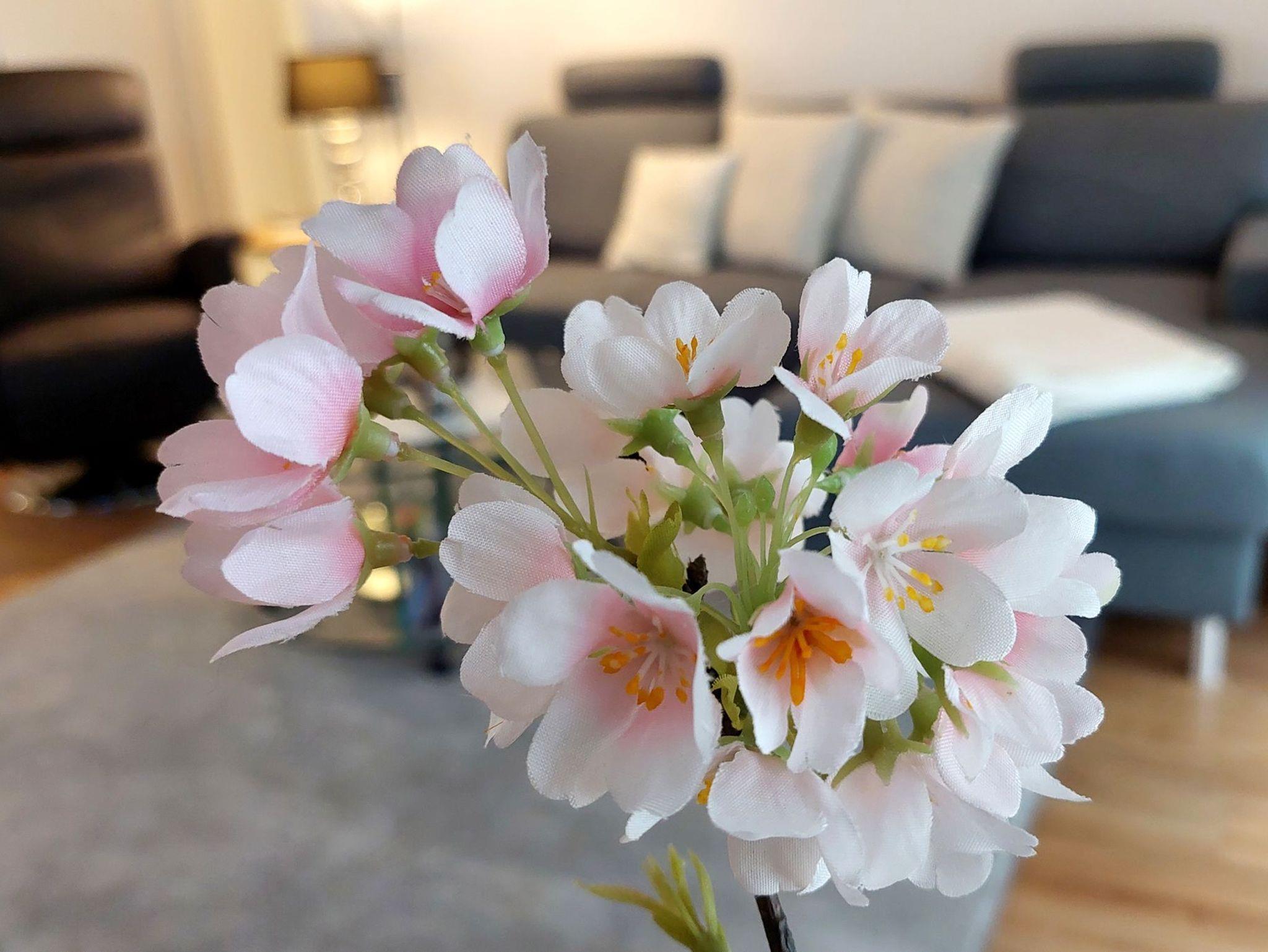 Vom geräumigen Flur gelangen Sie ins Schlafzimmer, ins Badezimmer und in den großen, hellen Wohnbereich. Dieser verfügt über eine offene, moderne Küchenzeile und separatem Essbereich sowie ein gemütliches Ecksofa, einen Smart-TV und bequemen Fernsehsessel.