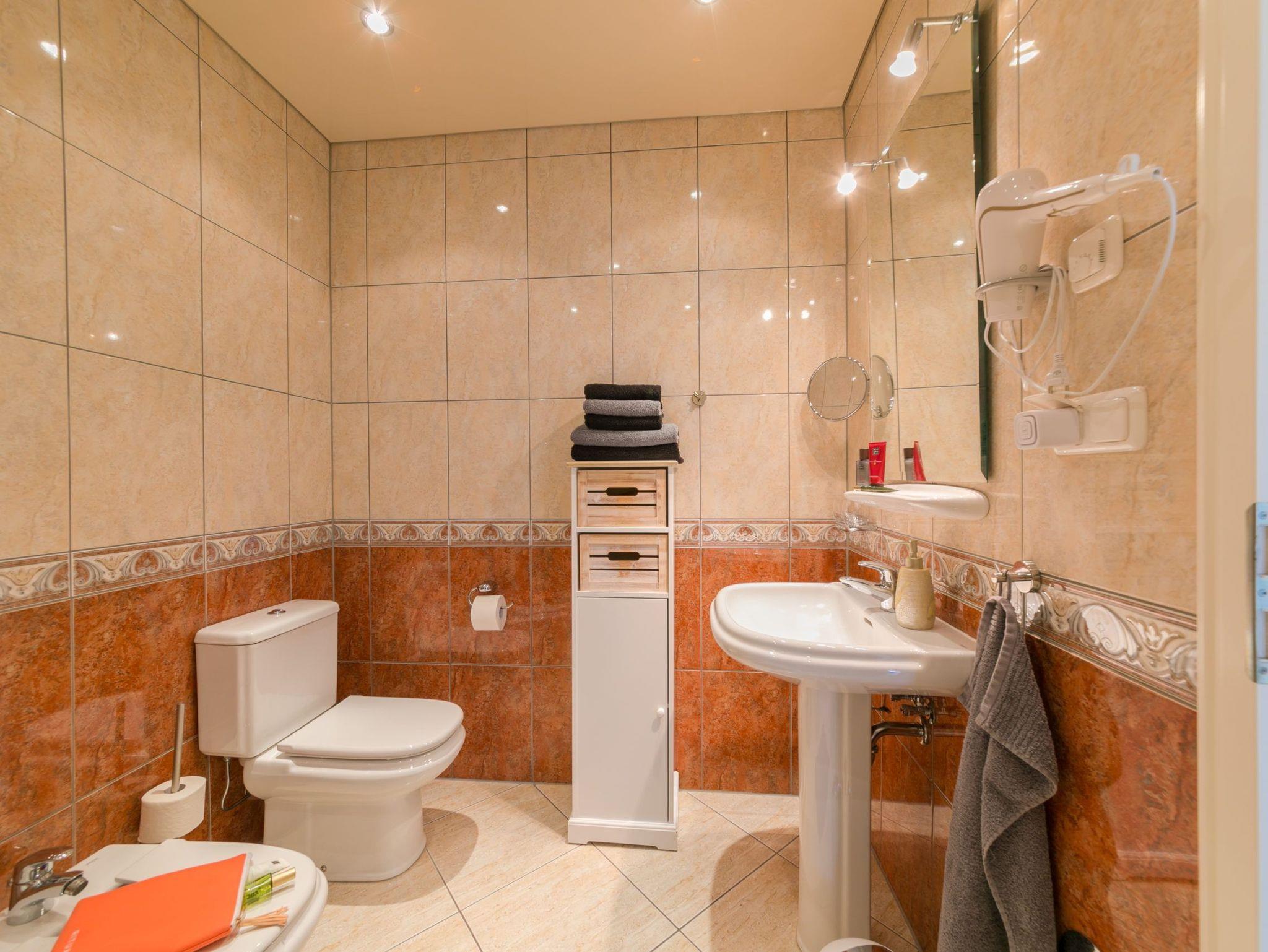 Darüber hinaus verfügt die Wohnung über ein Duschbad mit Bidet, Fön, Kosmetikspiegel, einen schönen Südbalkon (Tisch, Stühle und Sonnenschirm) u.v.a.m