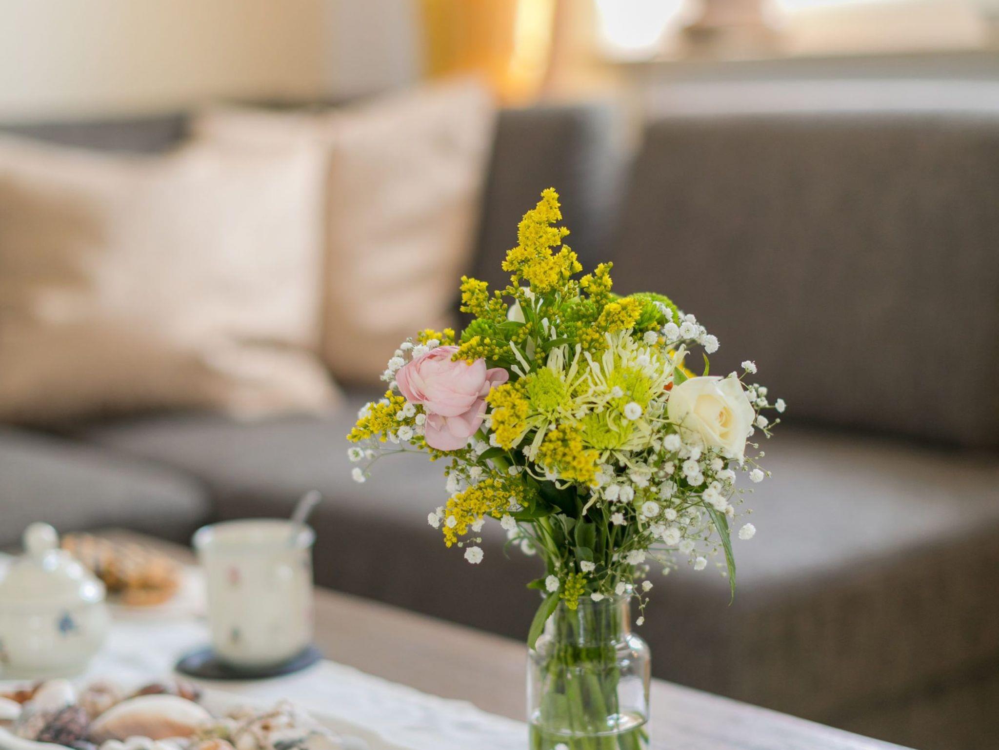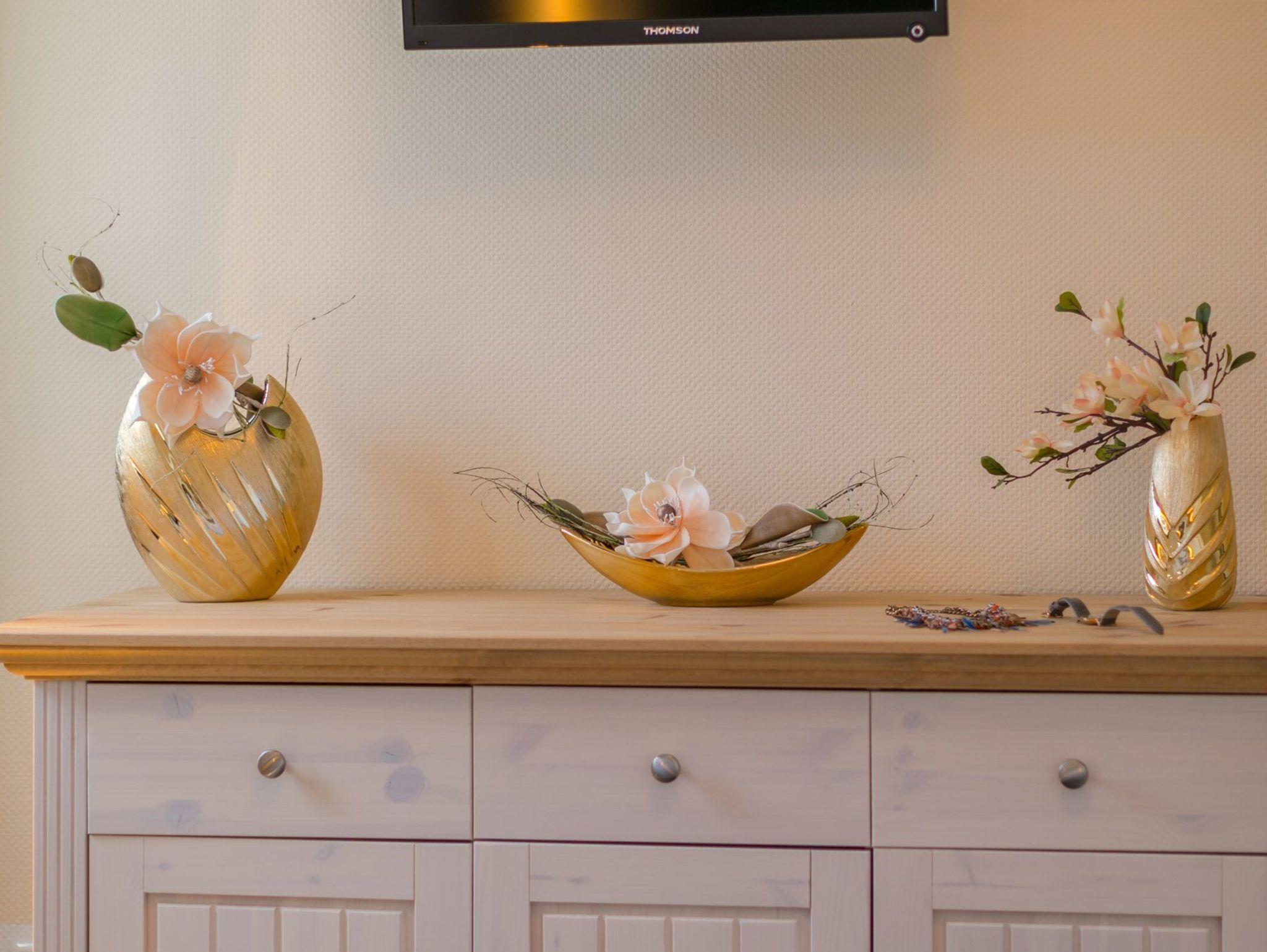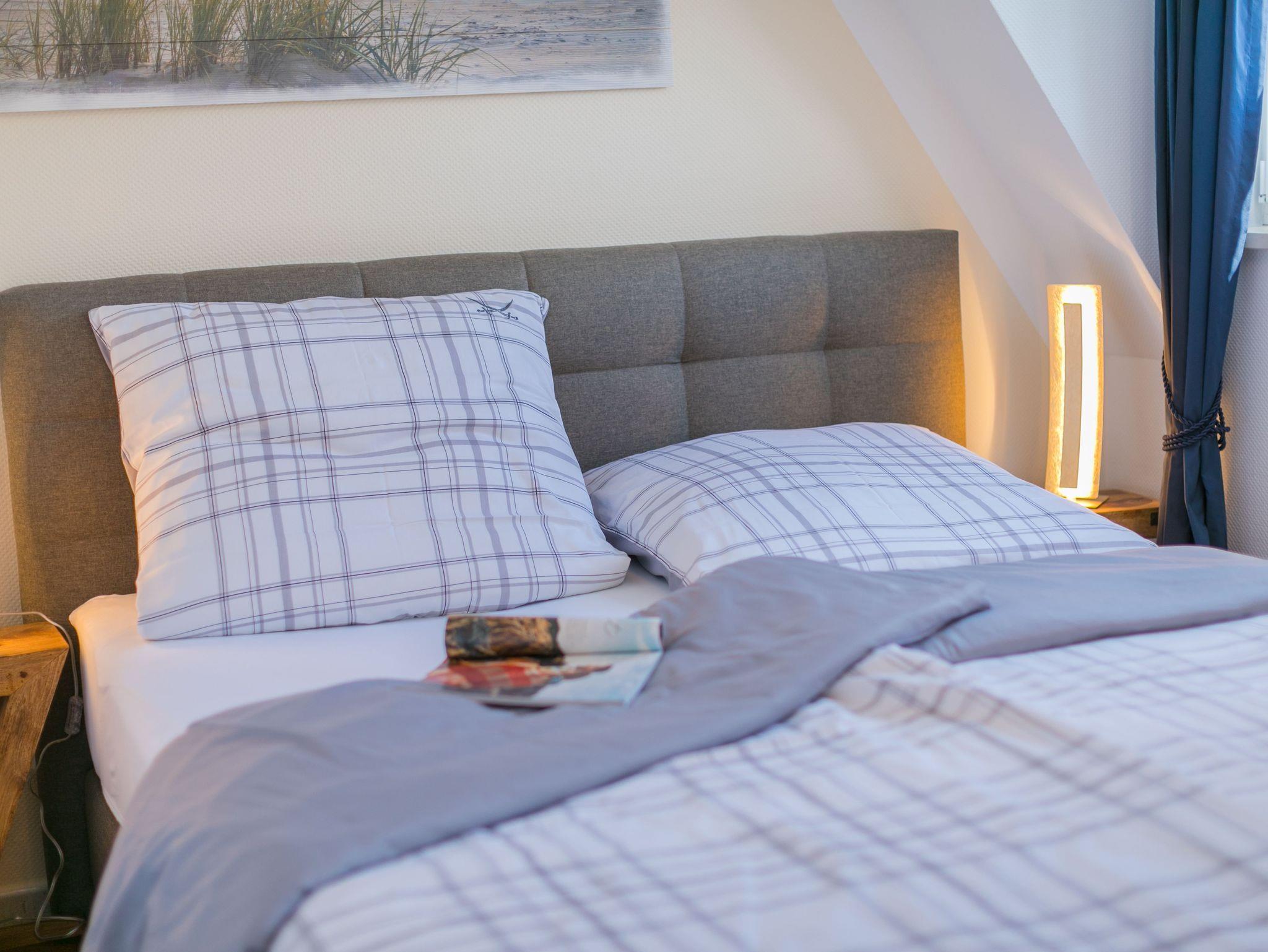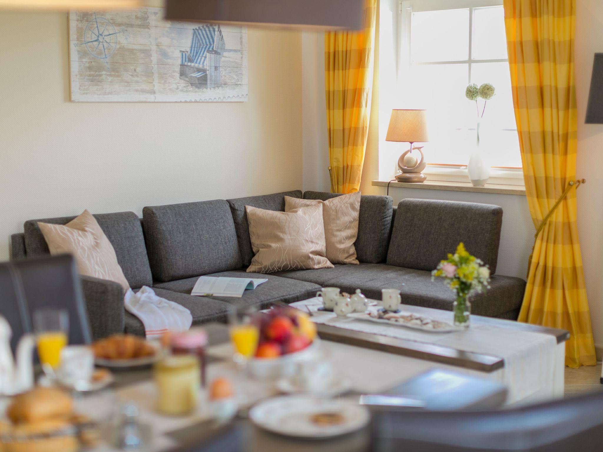 Die gemütlich eingerichtete Ferienwohnung ist lichtdurchflutet und verfügt über ein Wohnzimmer mit Schlafcouch und Essplatz, Flachbildfernseher, Kabel-TV, kostenloses WLAN und ein separates Schlafzimmer mit Boxspringbett und Flachbildfernseher. Ein Safe befindet sich im Schrank auf dem Flur.
