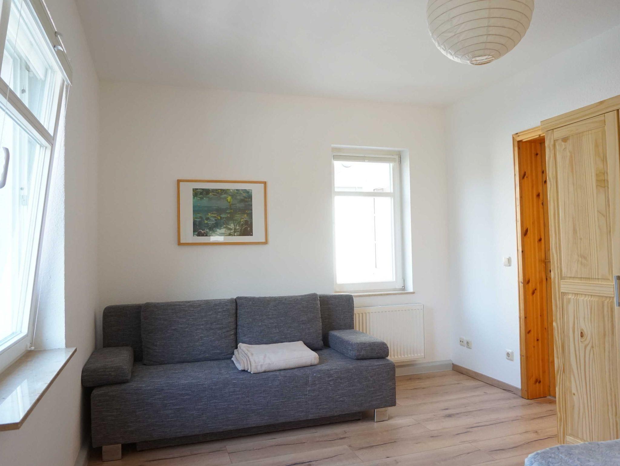 Die Wohnung1 ist eine 2-Raumferienwohnung im Dachgeschoß(2.Etage) und verfügt über ca. 47 m² Wohnfläche und ist ideal für 2 Erw. mit Kindern geeignet. Die Wohnung hat folgende Aufteilung: Schlafzimmer (20m²)-ausgestattet mit Doppelbett 1,60 m x 2,0 m, Ausziehcouch für 2 Pers. 1,60 m x 2,0 m , TV-Anschluß.
