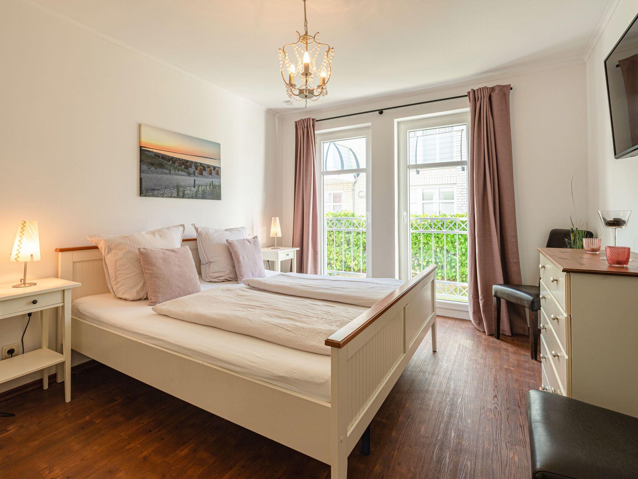 Für den erholsamen Schlaf nach einem erlebnisreichen Urlaubstag verfügt Ihre Ferienwohnung über zwei separate Schlafzimmer mit großen Fensterfronten und entsprechender Verdunklungsmöglichkeit. Das erste Schlafzimmer ist mit einem Doppelbett (180x200cm) und einem Kleiderschrank ausgestattet, das zweite Schlafzimmer hat ebenfalls ein Doppelbett (180x200cm), einen Kleiderschrank und einen zusätzlichen Fernseher. Aufbettungen zur fünften und sechsten Person sind auf der ausklappbaren Couch im Wohnzimmer (ca. 140cm breit) möglich.