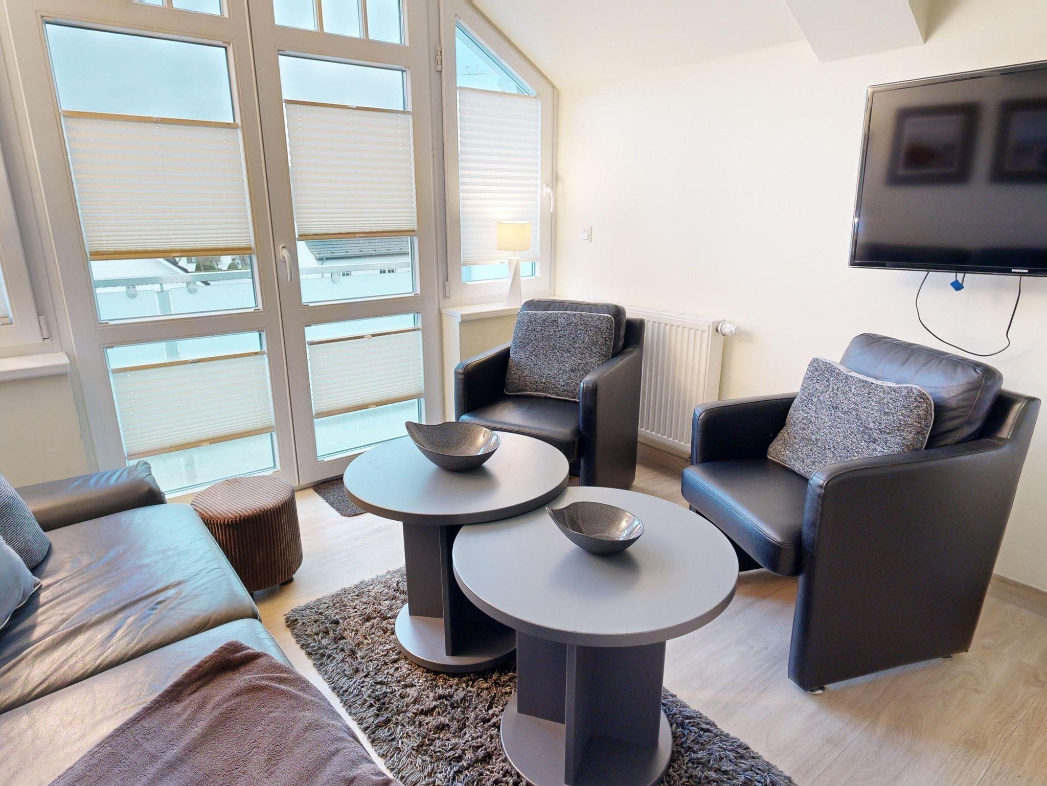 Schöne Komfort-Ferienwohnung im 2. Obergeschoss der Villa Meernixe (3 Zimmer / 60 m²) mit zwei Schlafzimmern, WLAN-Internetanschluss, Südbalkon und strandnah