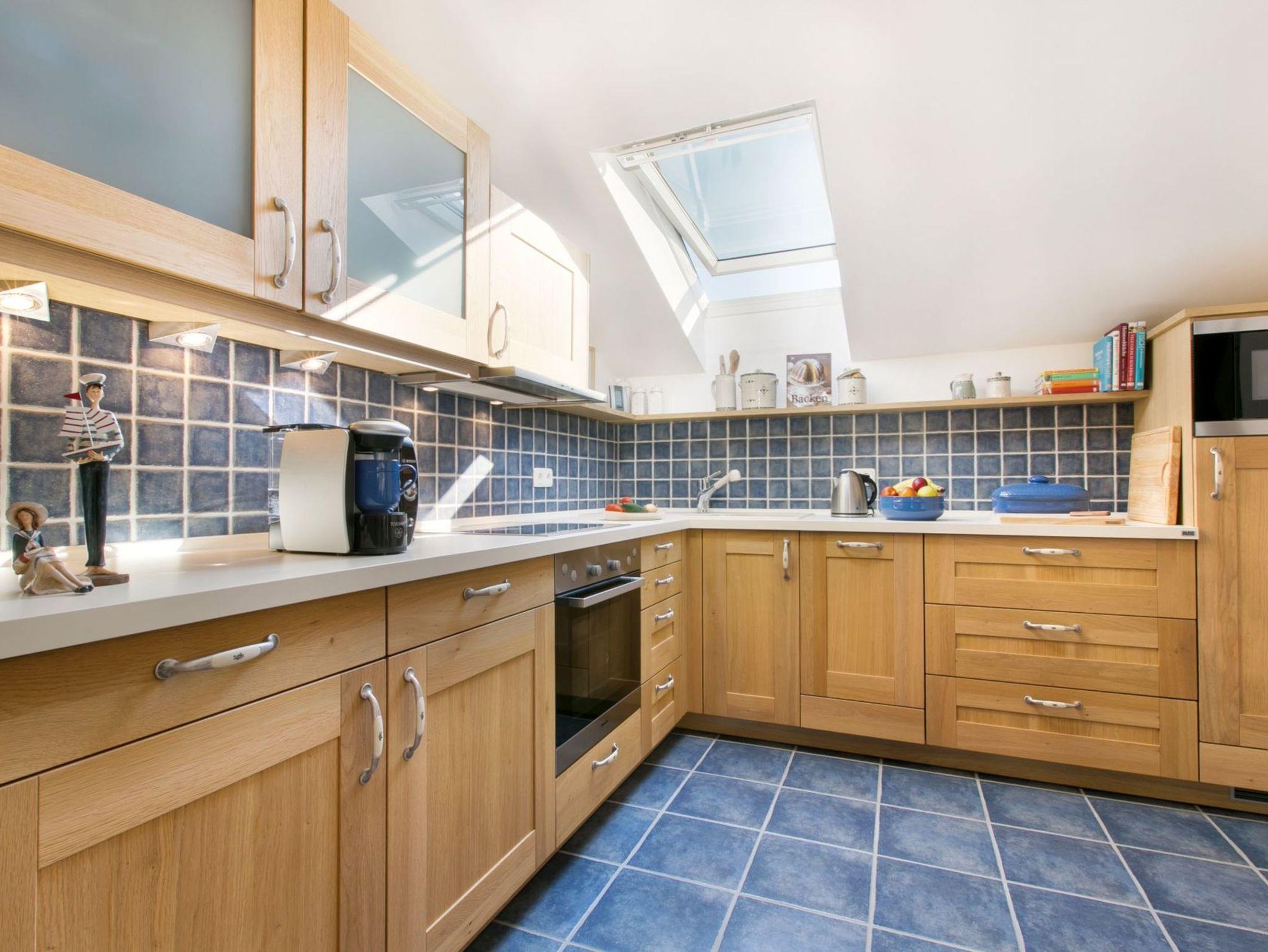 Küche mit Cerankochfeld, Mikrowelle und Geschirrspüler,