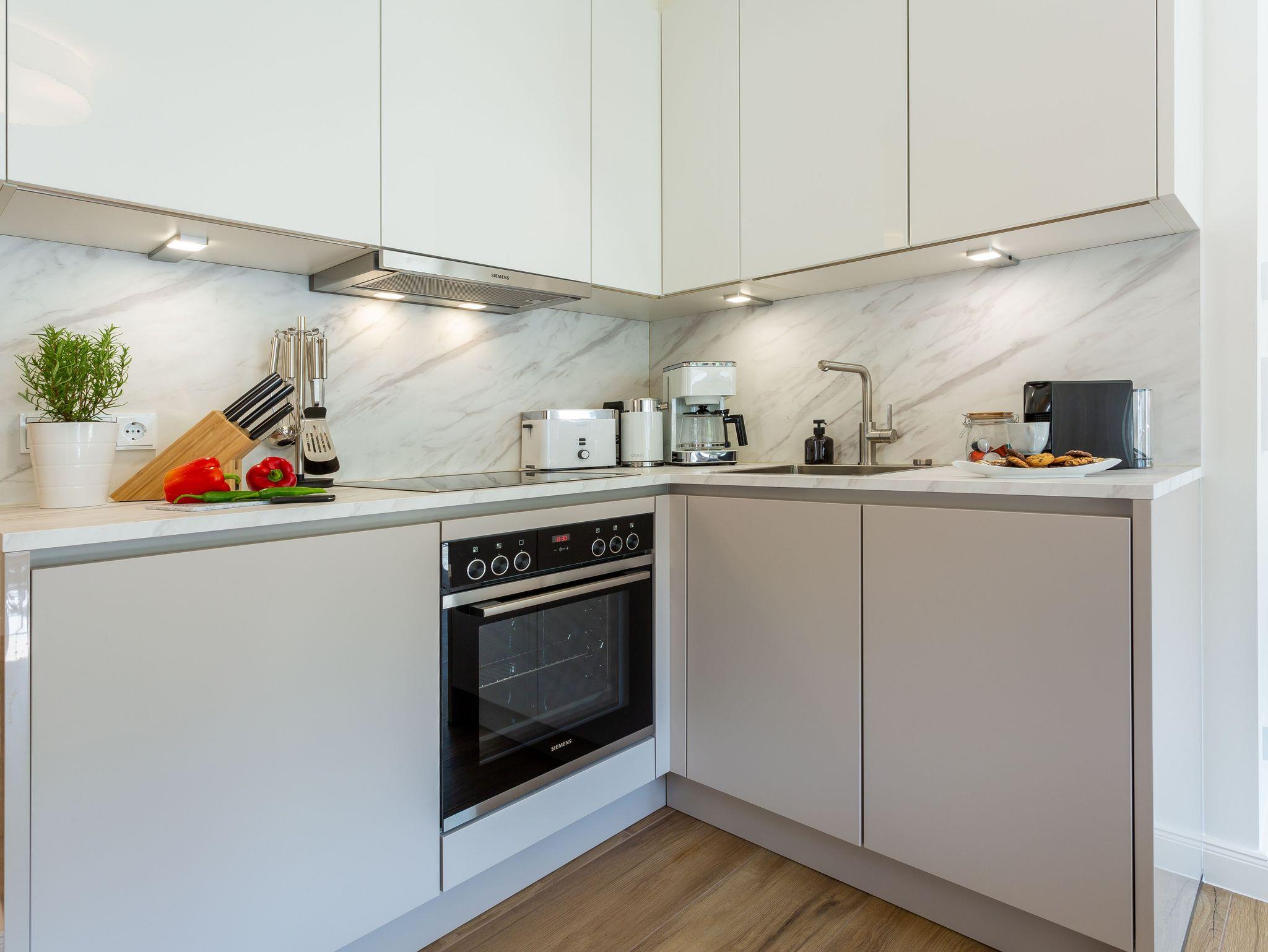 Die Küche ist mit Siemens Markengeräten versehen und voll ausgestattet - hier wird die Selbstverpflegung zum Kinderspiel.
