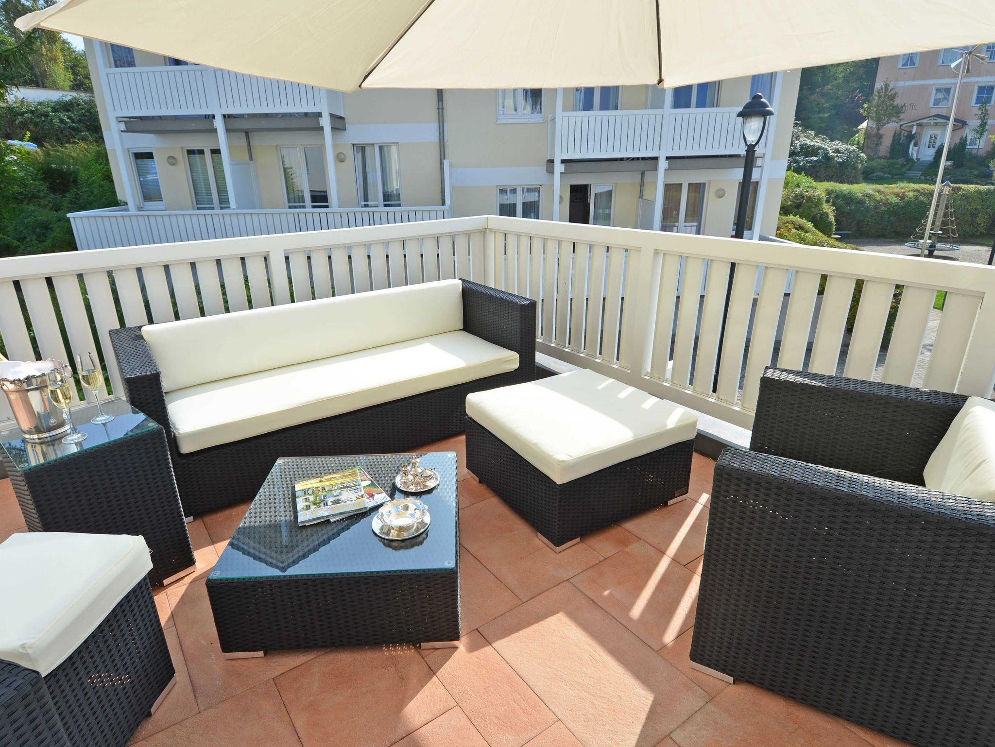 Gemütliches Zwei-Raum-Appartement mit großer Südterrasse in Binz, ideal für entspannte Urlaubstage.
