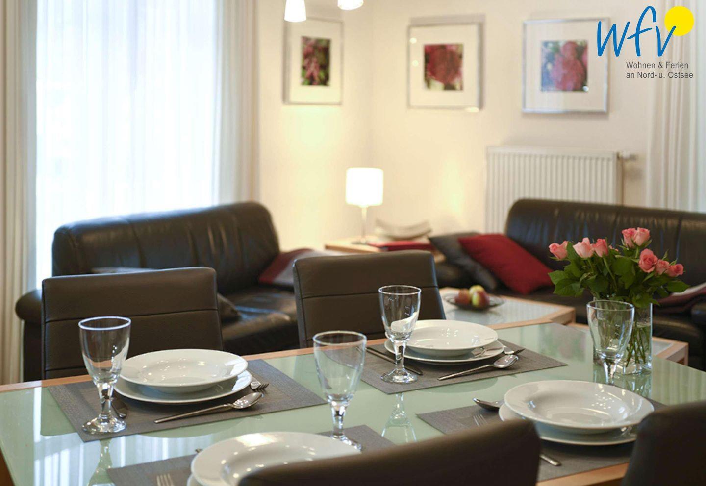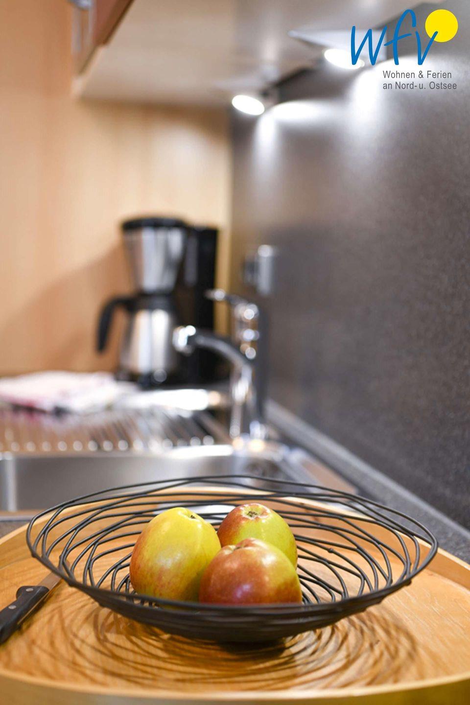 Für eine bequeme Selbstverpflegung ist in den Wohnbereich eine gut ausgestattete Küche - u.a. mit Herd, Mikrowelle und Spülmaschine - integriert. Auf Rügen können Sie sich aber auch wunderbar kulinarisch verwöhnen lassen! Im Ostseebad Binz und auch in den umliegenden Dörfern finden Sie viele Restaurants, die Ihnen herrliche Köstlichkeiten der Ostseeküche servieren!