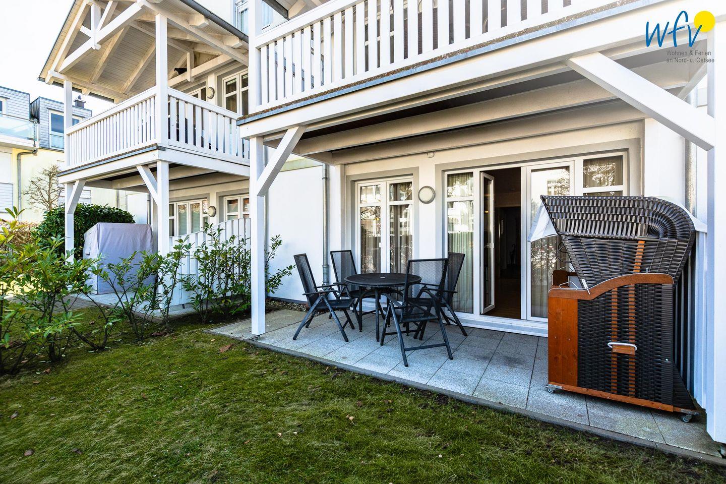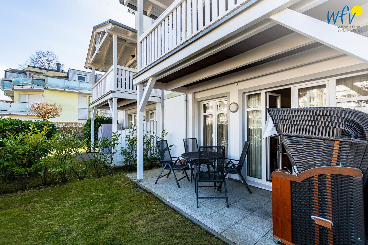 Stilvolle Ferienwohnung mit Sauna, Terrasse und Strandkorb direkt an der Promenade in Binz auf Rügen.