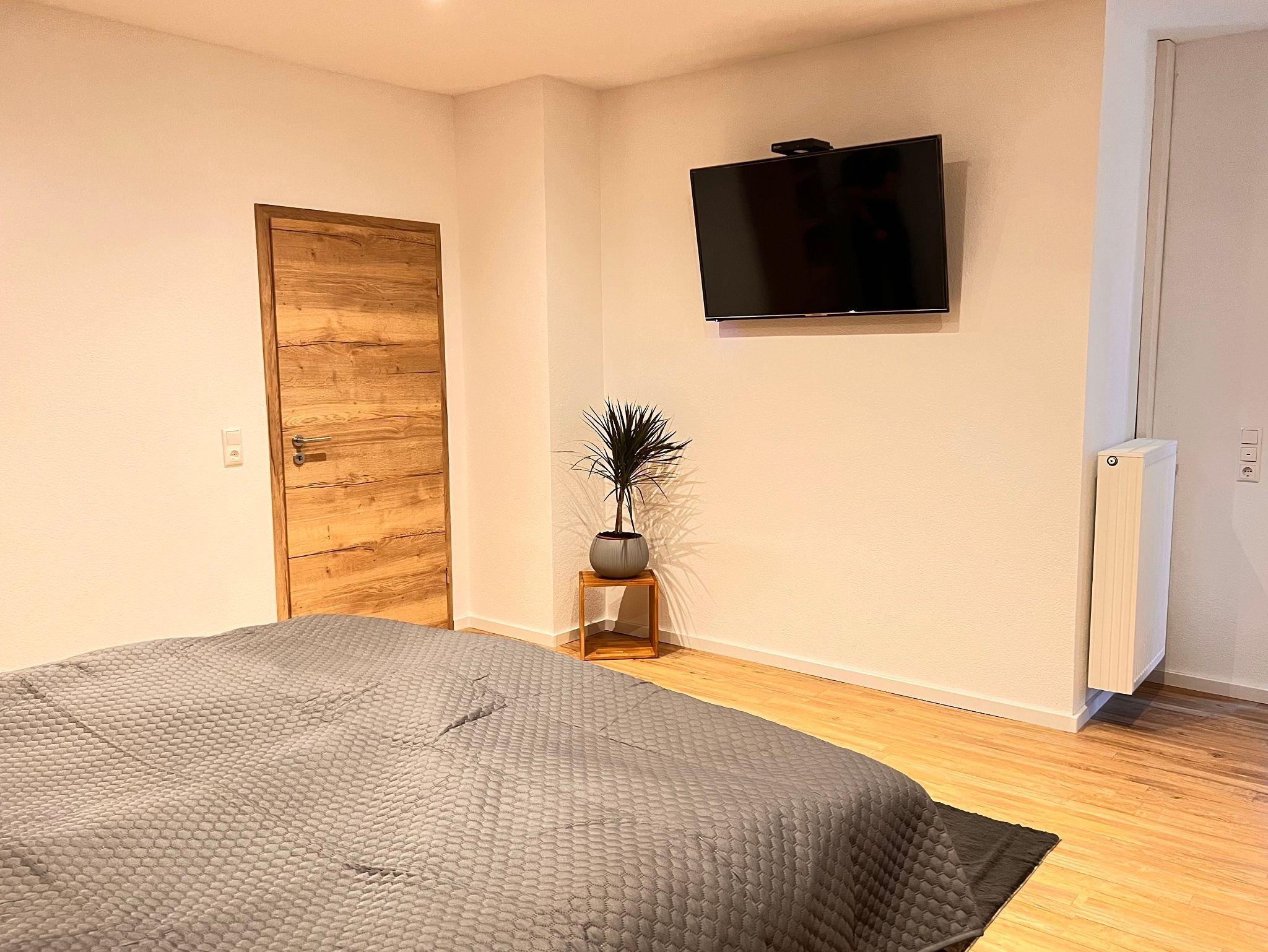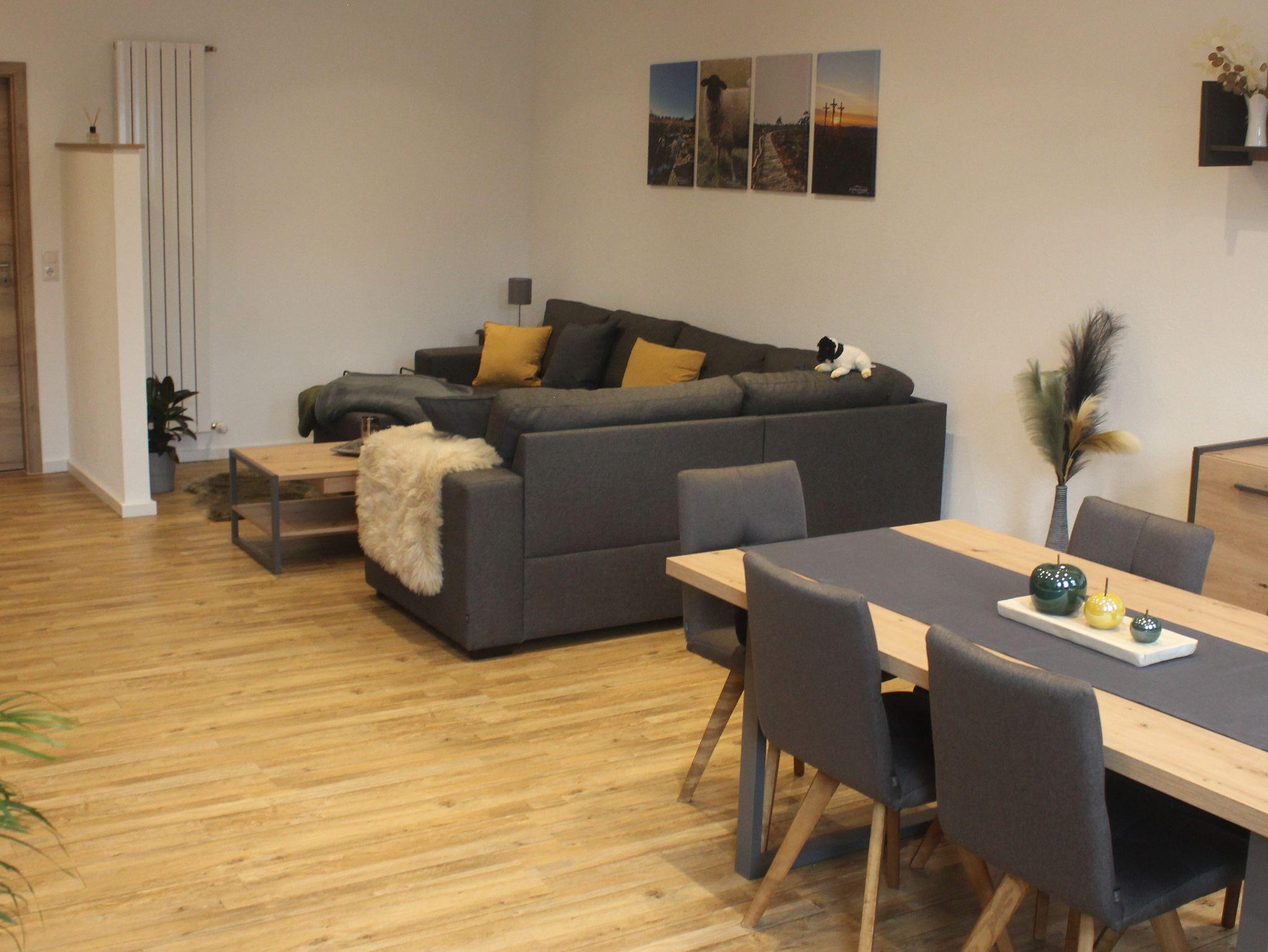 Die Ferienwohnung verfügt über eine komplett eingerichtete Küche, die kaum einen Wunsch übrig lässt. Außerdem können Sie im gemütlichen, großen Wohn-Essbereich die Seele baumeln lassen. Um die Wohnung mit 4 Personen zu nutzen, verfügt das Wohnzimmer über eine bequeme Schlafcouch. Für einen erholsamen Schlaf sorgt ein großes Boxspringbett, in dem Sie die schönsten Träume haben werden. Platz für ein Kinderbett ist im Schlafzimmer genügend vorhanden.